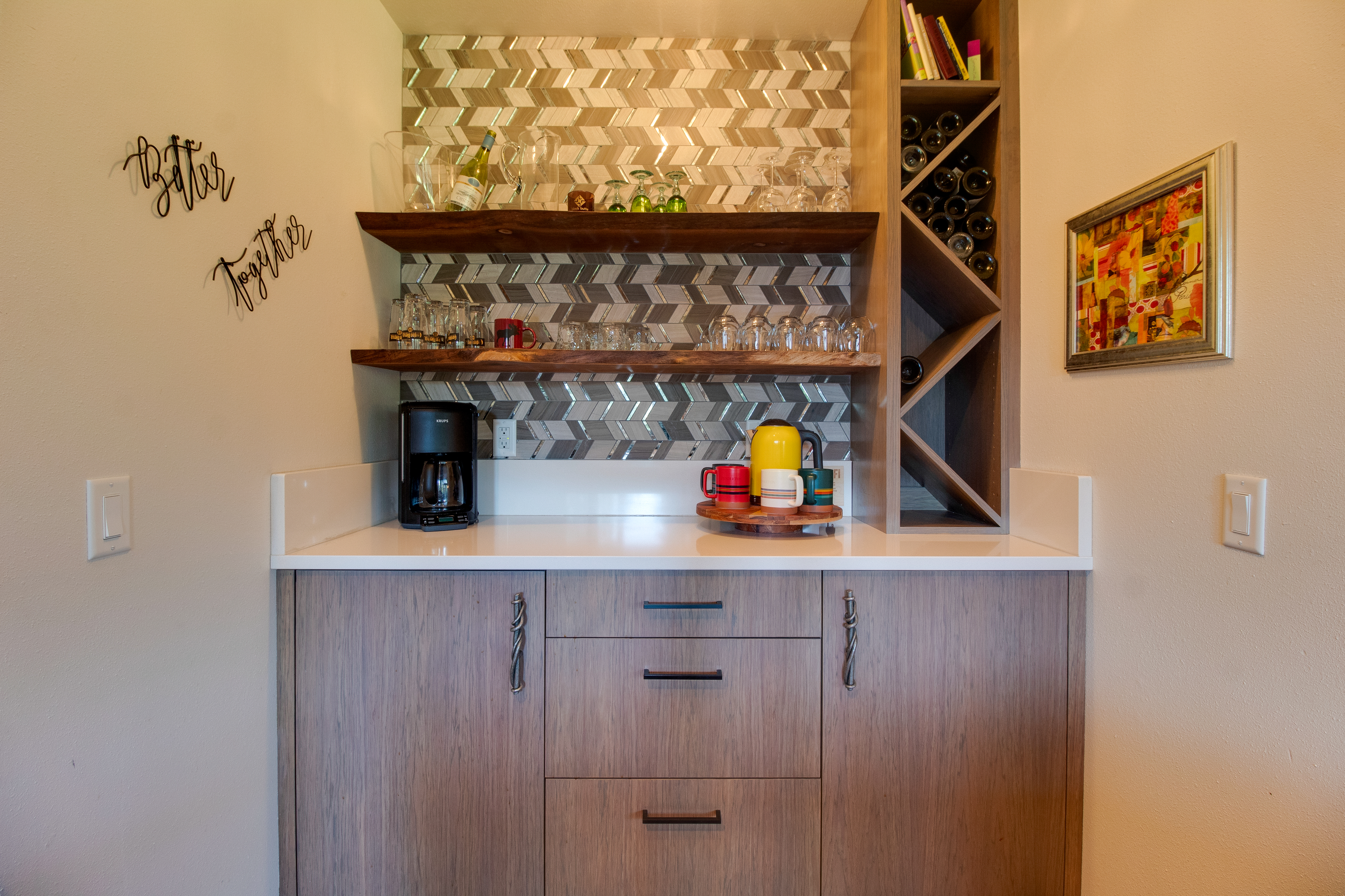 The great room offers plenty of comfortable seating, large TV (with cable), games, dining table for 8-10, and kitchen, all overlooking the fairway. Island has counter seating for 3, and the brand-new coffee and tea bar is perfect to brew your morning cup. Chef's kitchen has all the tools and appliances you could need.