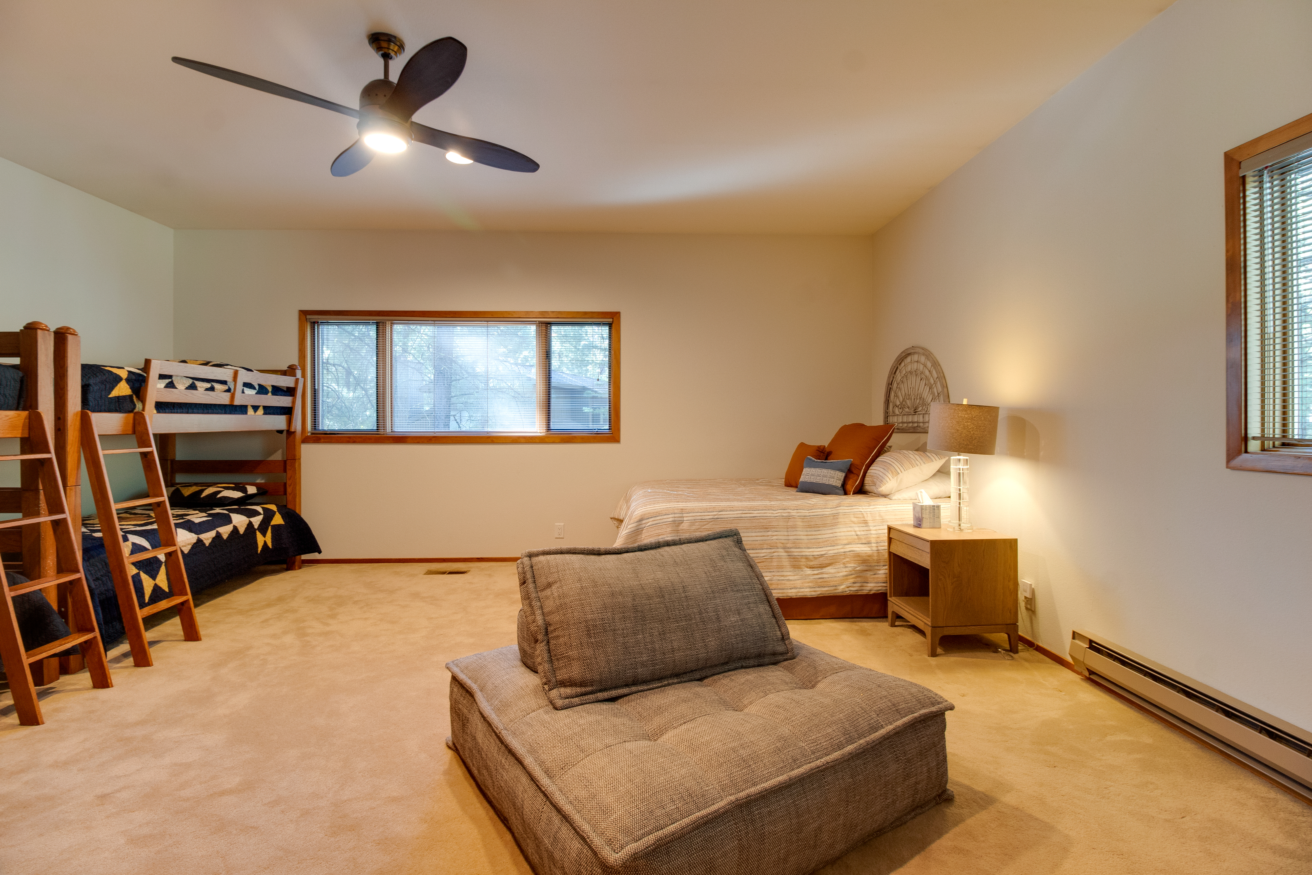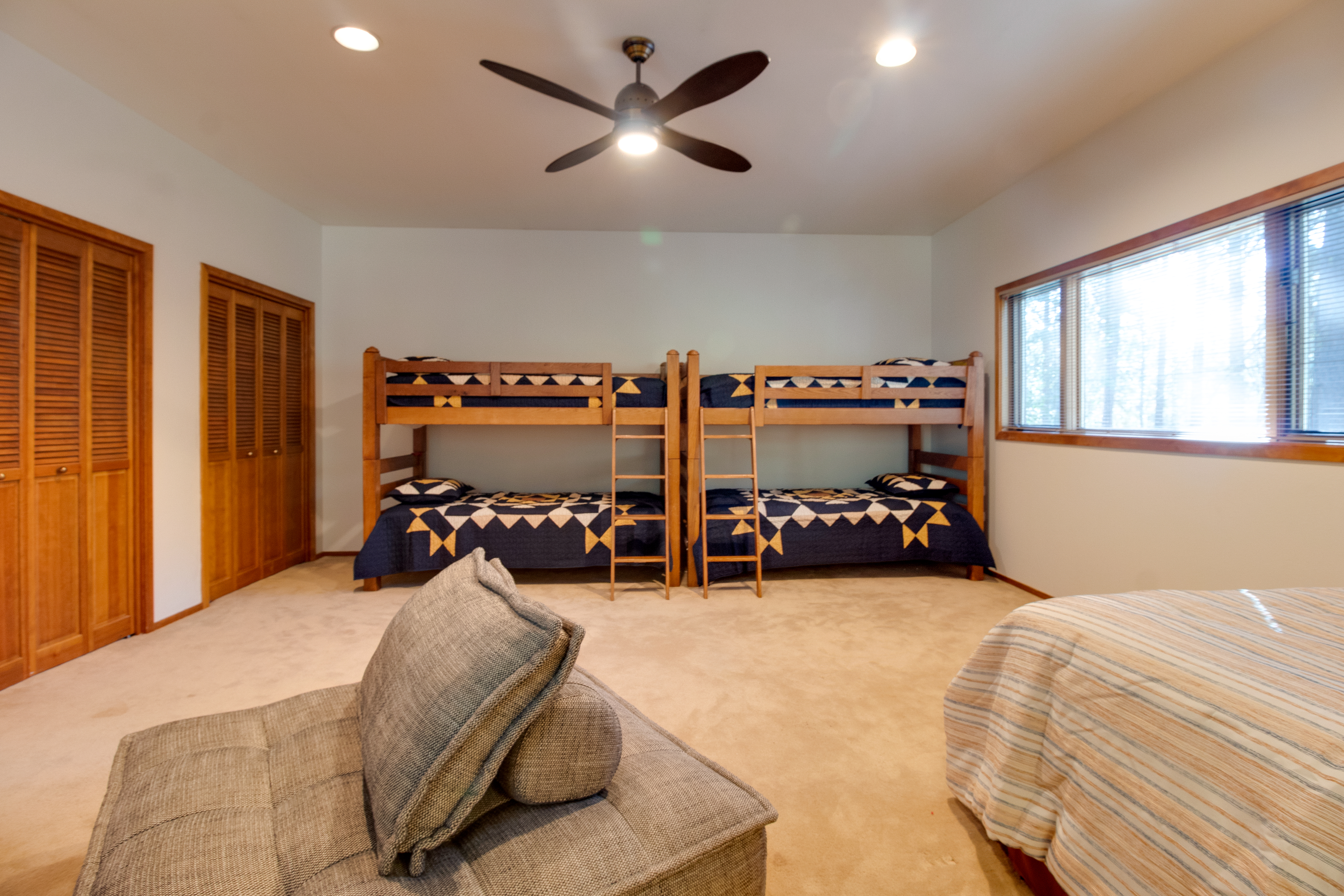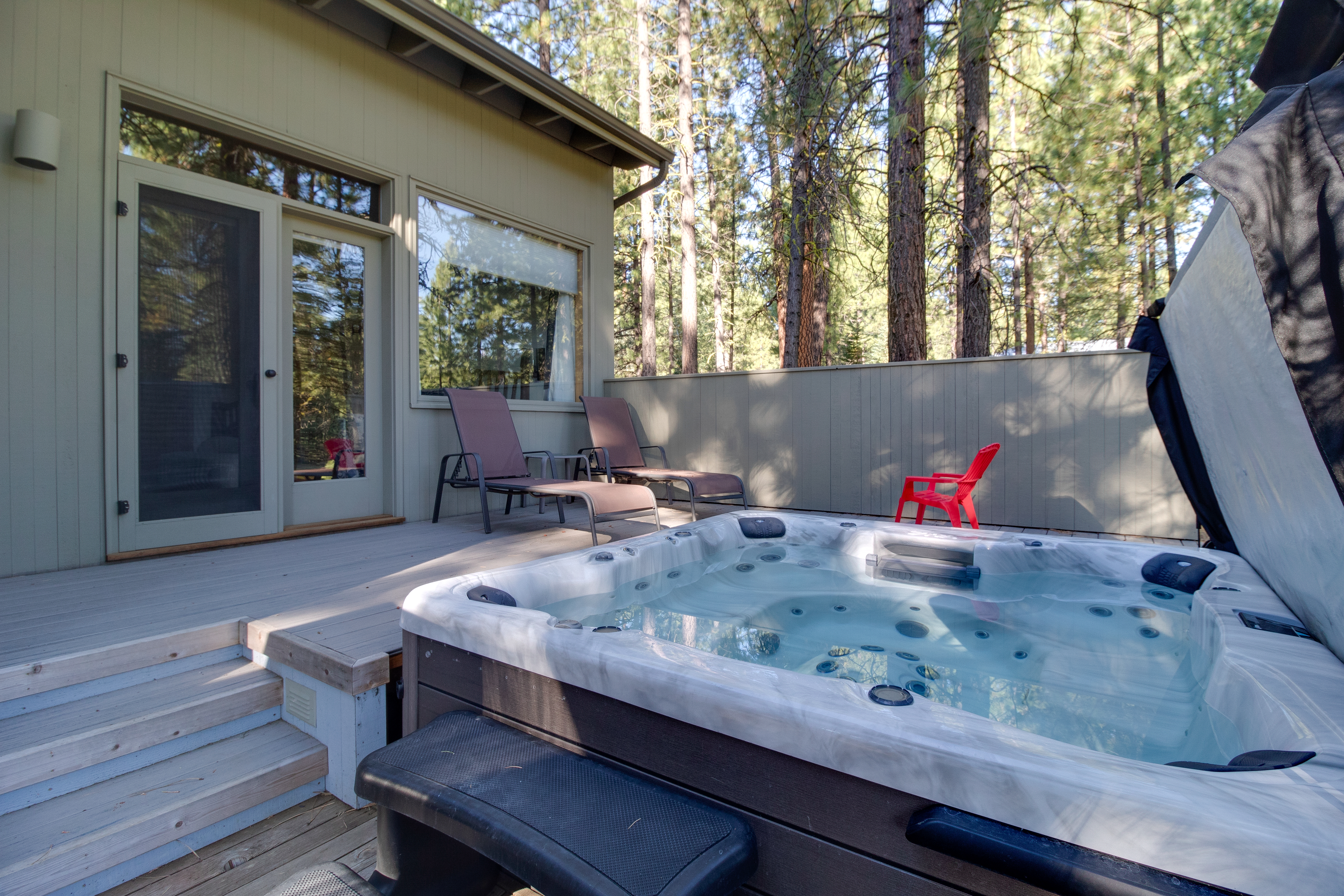 This property comfortably sleeps up to 10 with 3 bedrooms, including two primary bedroom suites on the main floor and a bunk room upstairs for the kids. Laundry closet in the garage makes it easy to keep the swimsuits, towels, and ski clothes fresh. Plenty of room to park your car in the garage and still have room in the driveway. The back deck is the perfect place to relax under the pines and watch the golfers go by while you grill dinner. Brand new hot tub is the perfect spot to relax at the end of the day.