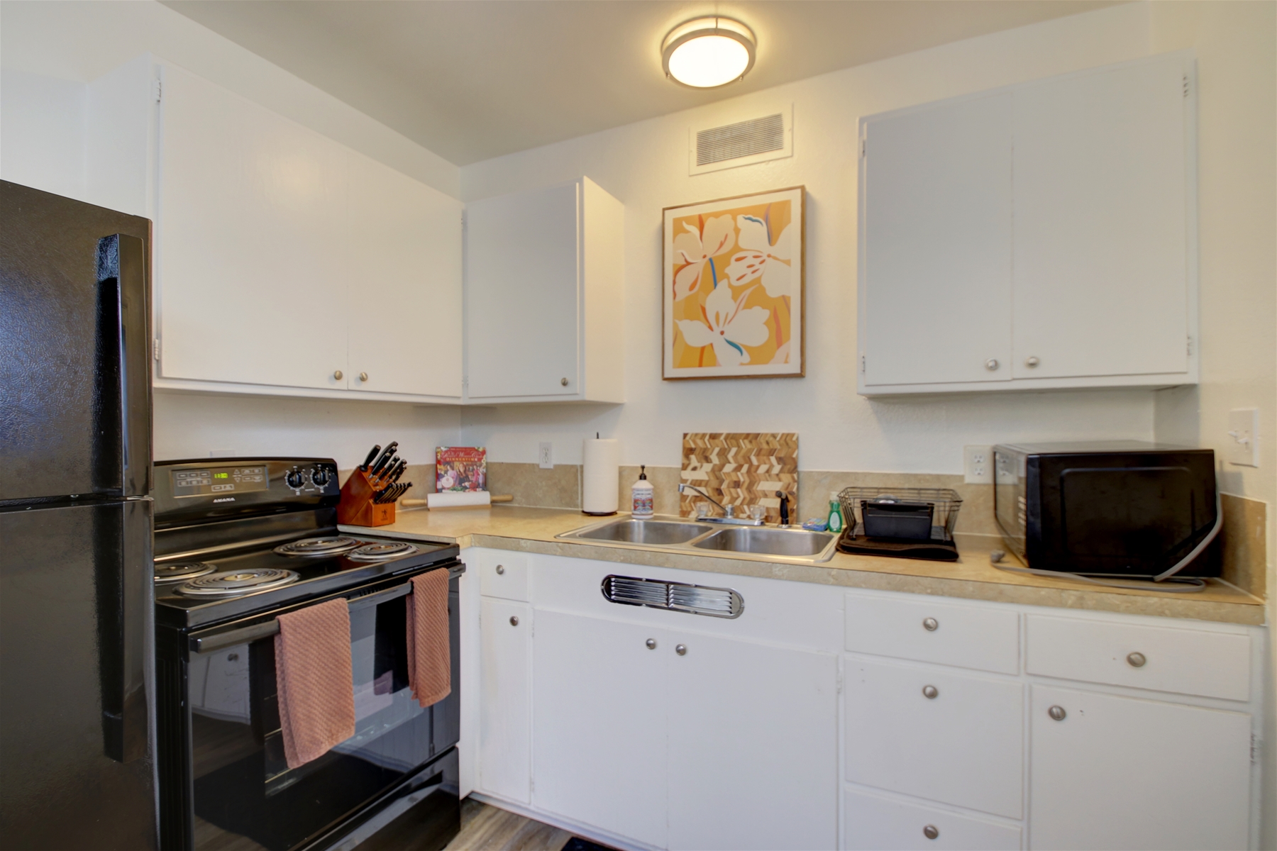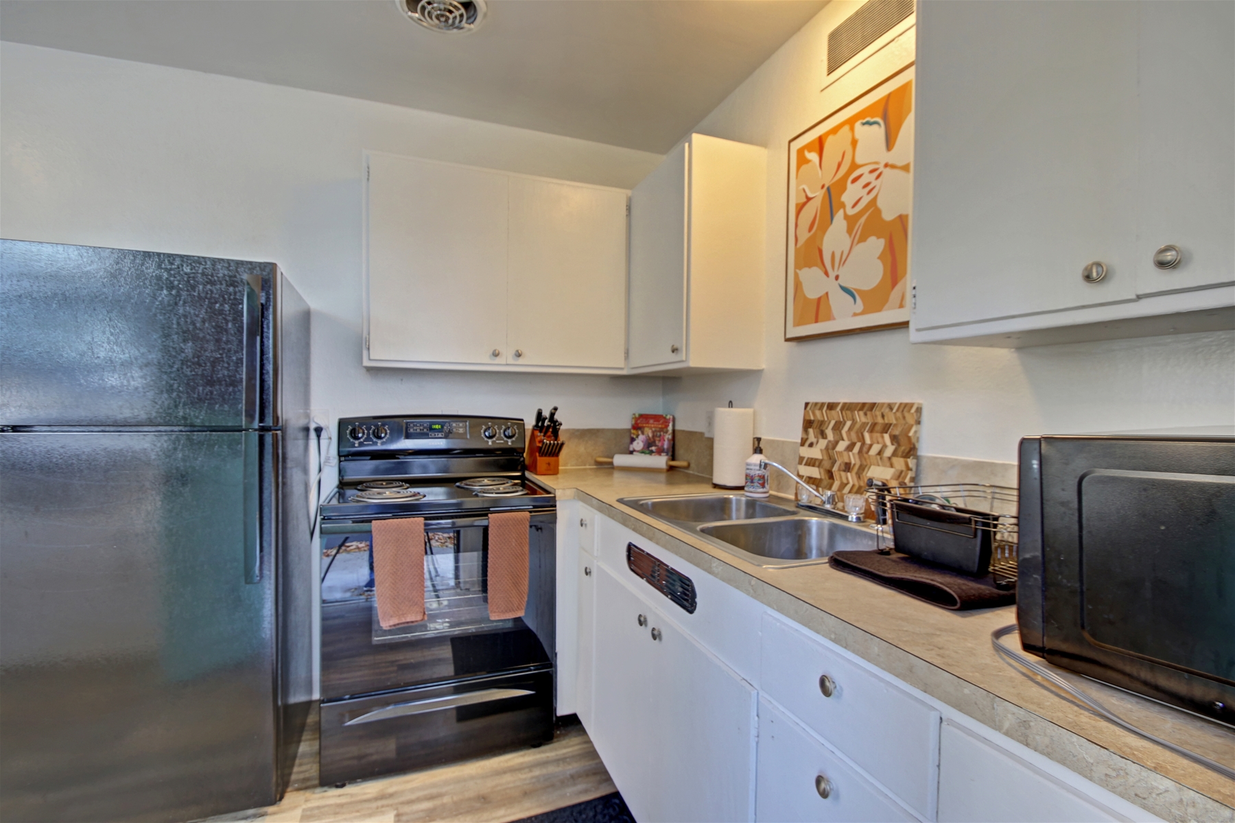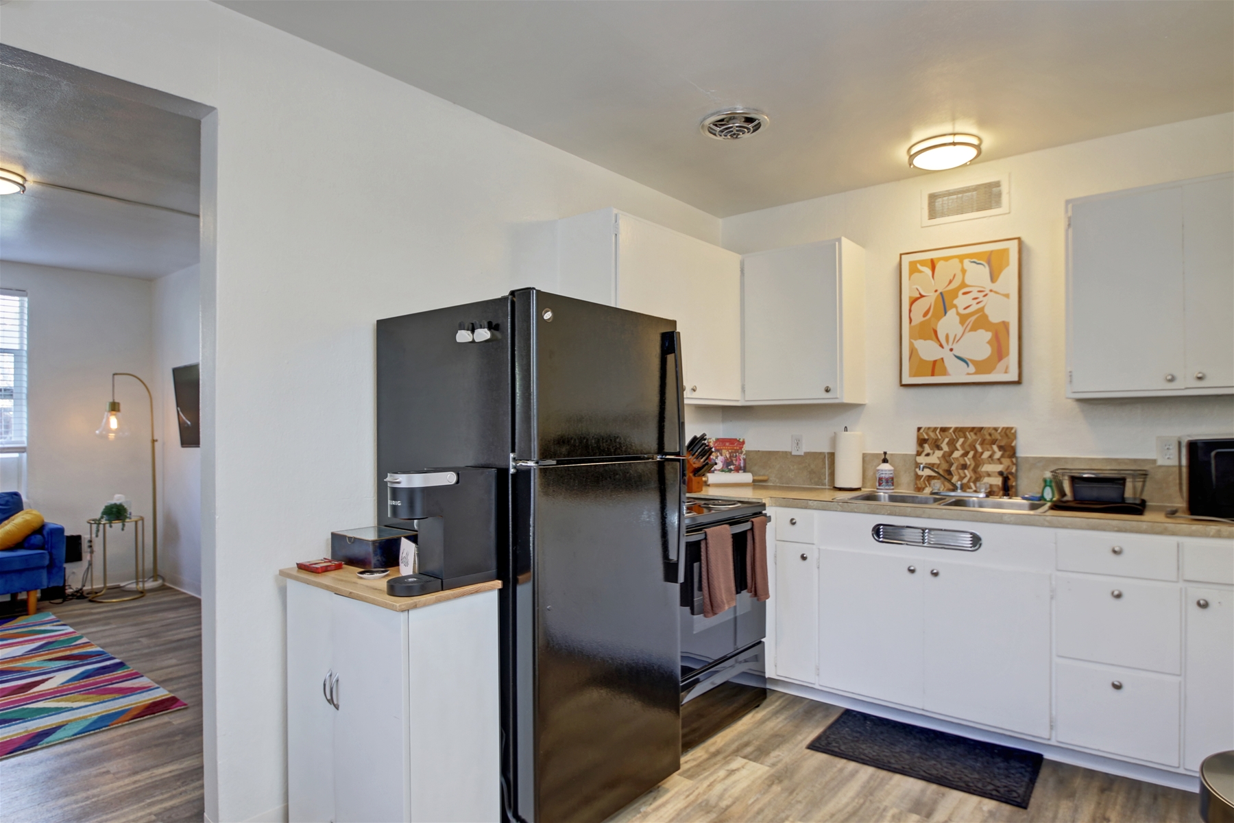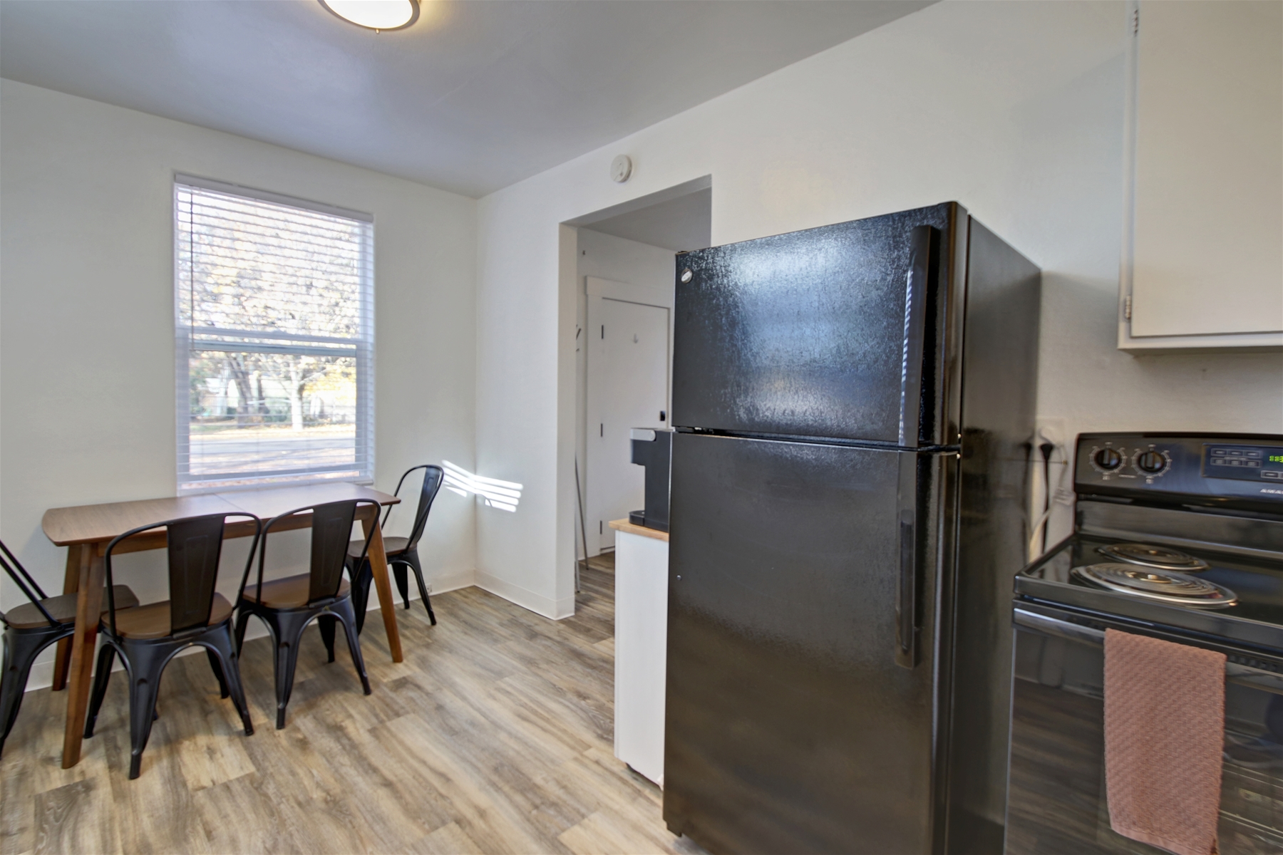 This cozy little one bed one bath home is located in the desired Northend of Boise! With housing for up to four guests and their fury friends, a kitchen, and dining area, it is the perfect place to call home for your stay in the Boise area. There’s even a communal fire pit that is shared between five of these cozy apartments, for you to enjoy. Though there may not be an onsite laundry area, this location is just a couple minutes from some good options such as 16th Street Laundry or Raves Laundry. This property is just a few minutes from several amazing places such as Hyde Park, outdoor trails, and local breweries, allowing you to experience some amazing outdoor features while settling right in the heart of Boise’s Historical District. You are more than welcome to head over to Hyde’s Park which is right down the road, where you can indulge in the eateries, pubs, and shopping. You may also enjoy Camel’s back park where you can go on a hike, leisurely walk, or just enjoy the open grassy space. It’s an ideal location for those who may enjoy biking around and see some unique homes and trees that are central in the Northend, as well as beneficial for any who wish to walk around downtown and visit the capitol building and Zoo before checking out a variety of bars, restaurants, and museums. Not far from this property are several different grocery stores. Regardless of if you’re looking for a Whole Foods and Trader Joes, or you’re more of an Albertsons and WinCo shopper, there’s a store within biking distance for your convenience. Not only is this property ready for your grocery store run, the kitchen is full of the necessities needed to let you enjoy a home cooked meal in your temporary home.