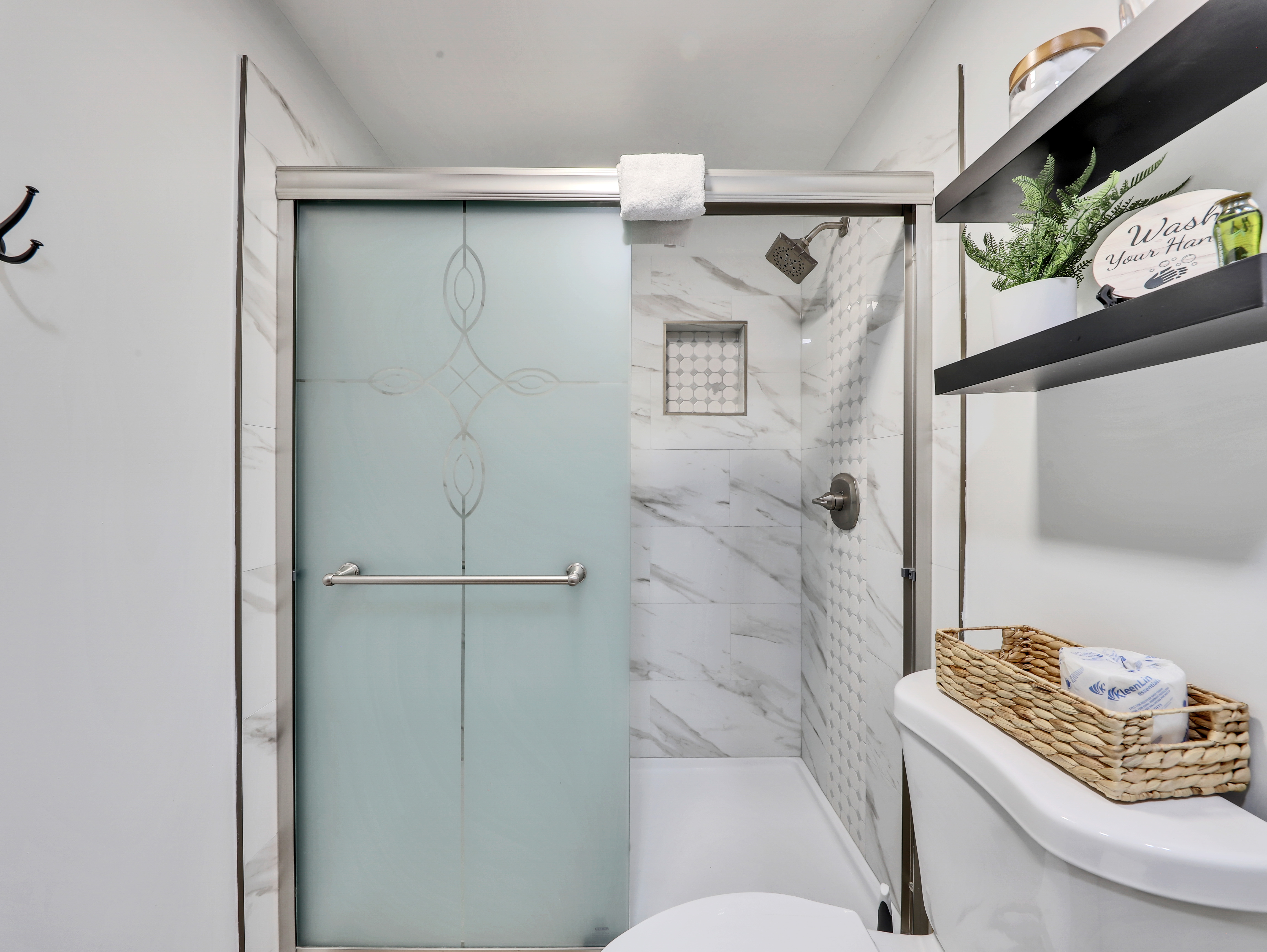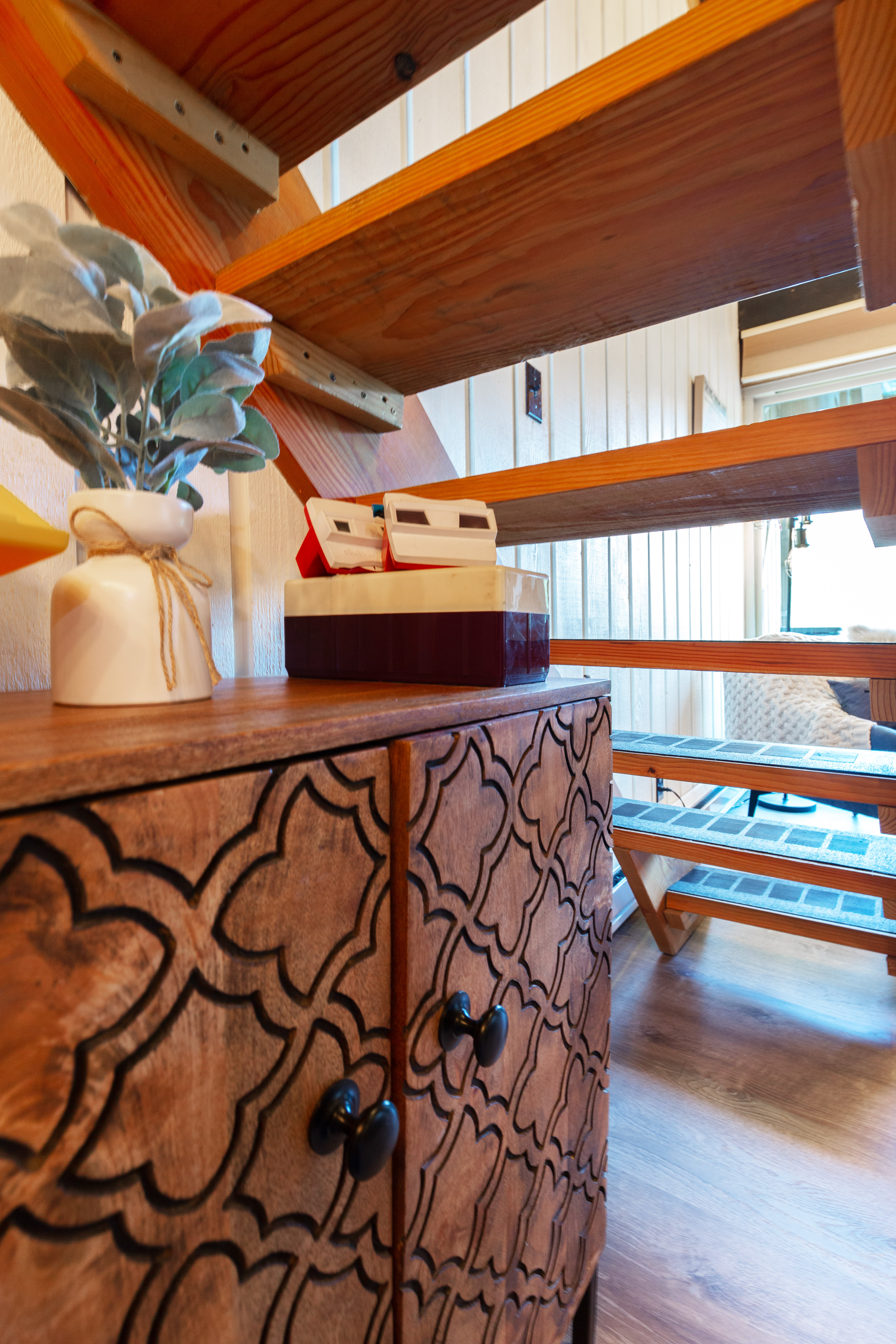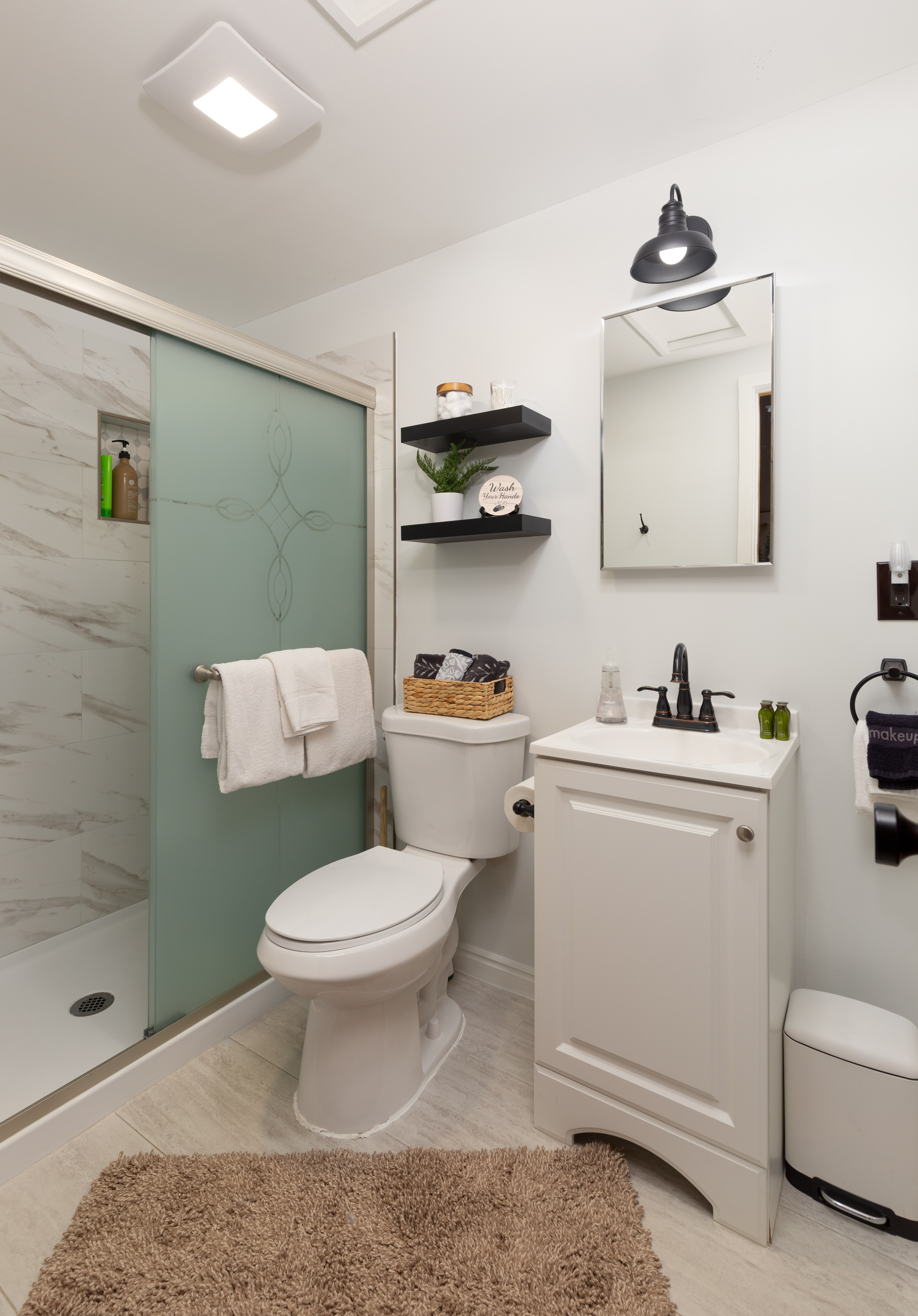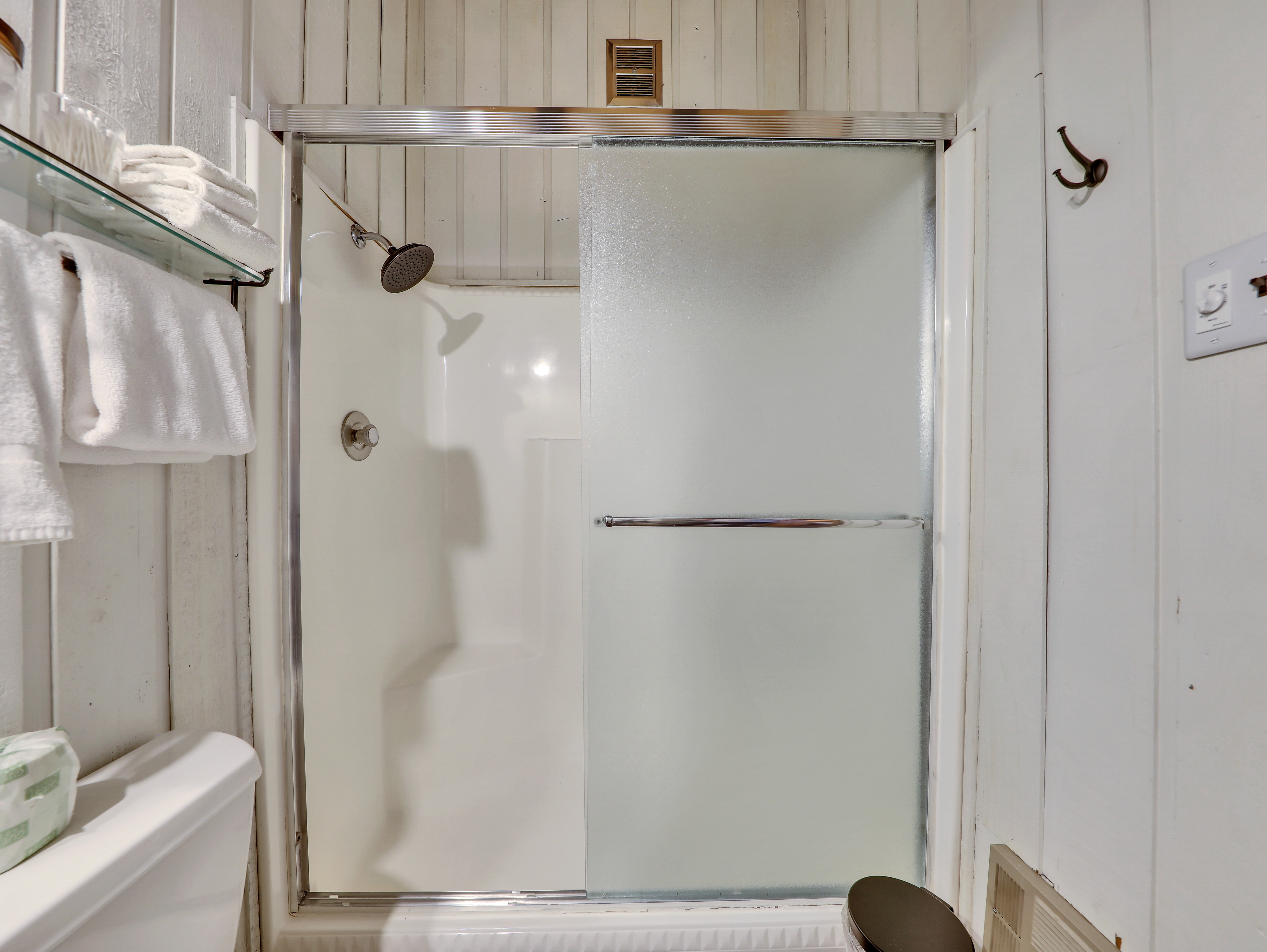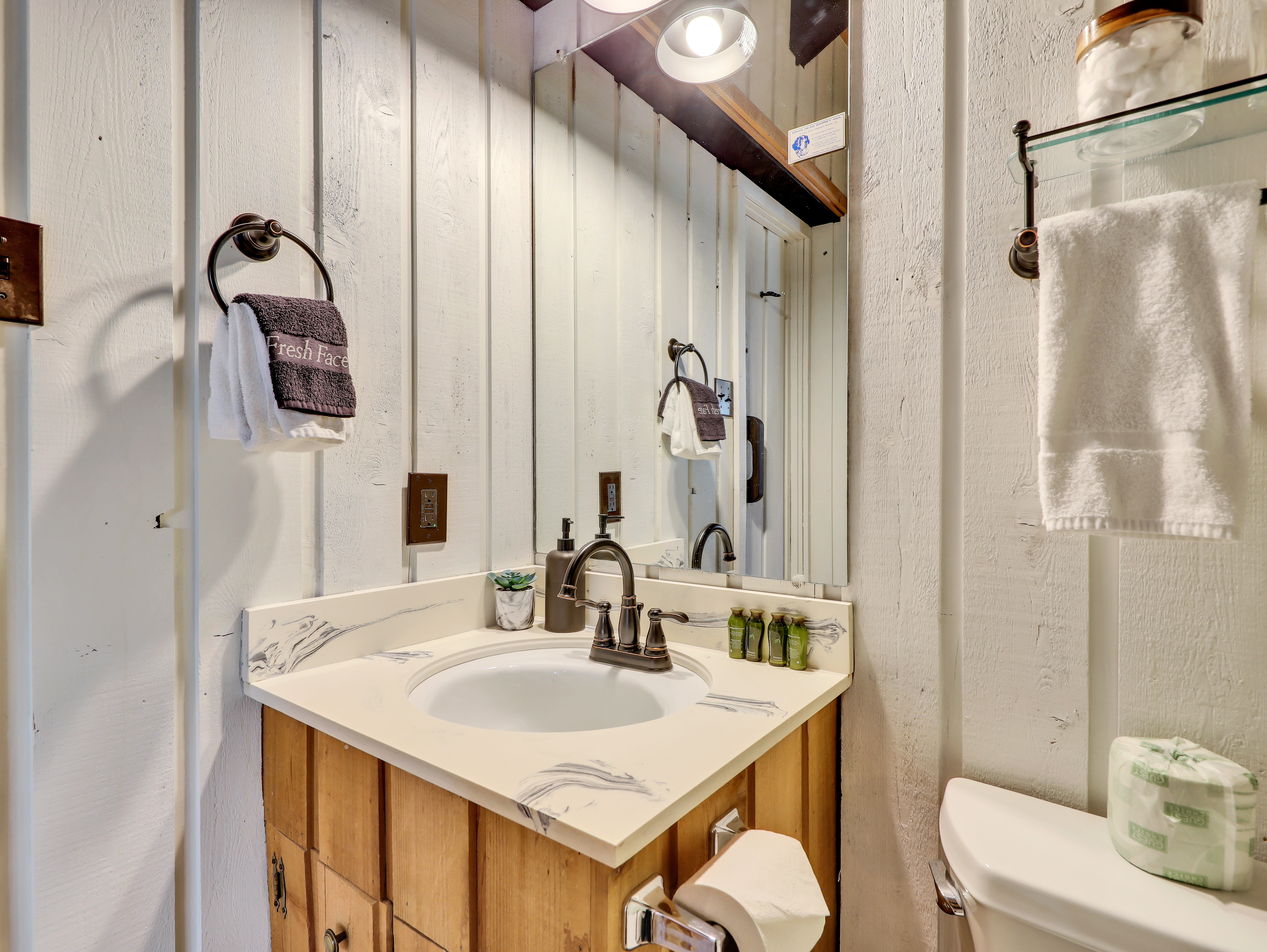 The bedroom on the main floor provides a peaceful haven, complete with a luxurious King size bed and soft, high-quality linens. The bathroom offers modern fixtures and a relaxing shower, ensuring you'll feel refreshed and ready to take on new adventures each day.