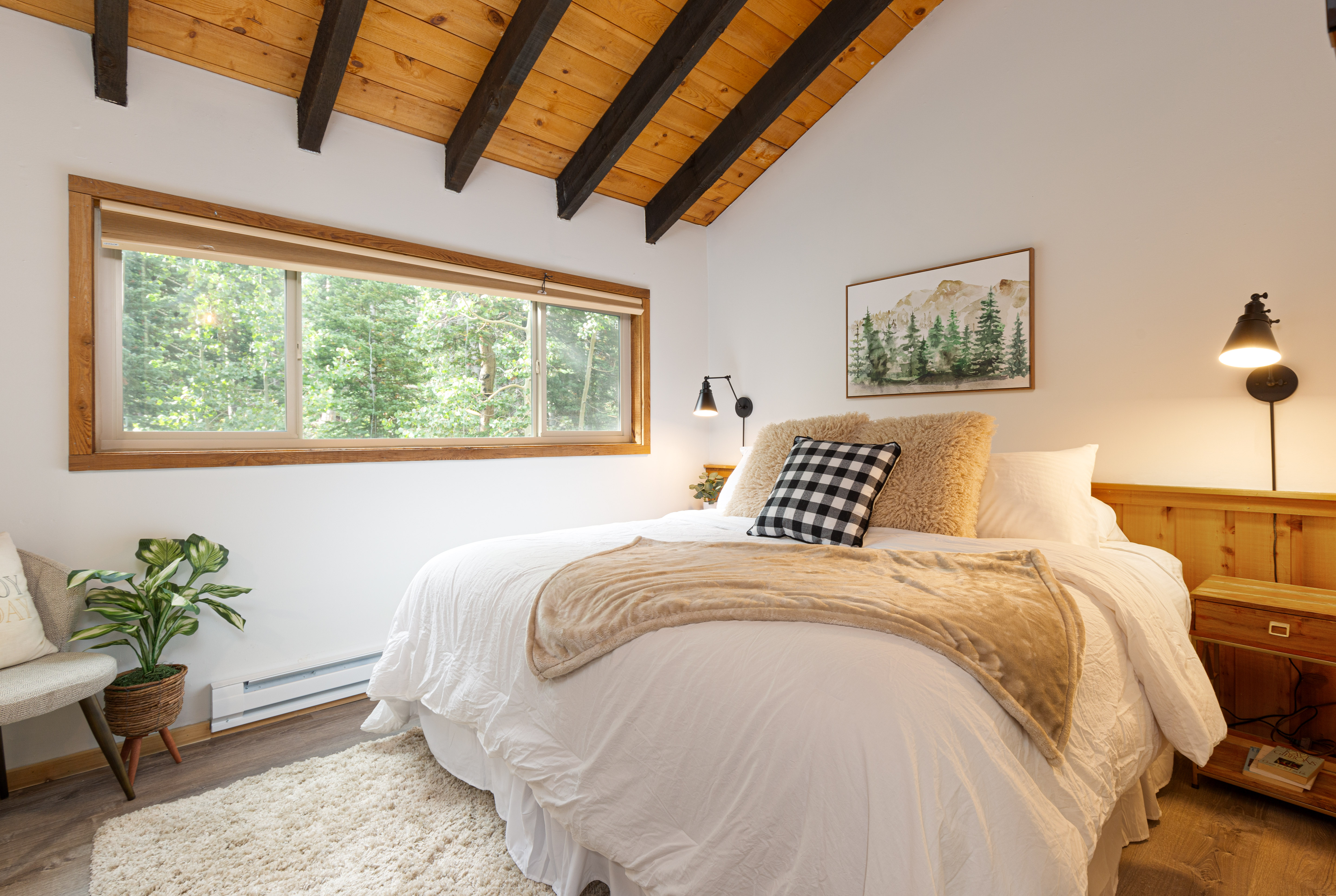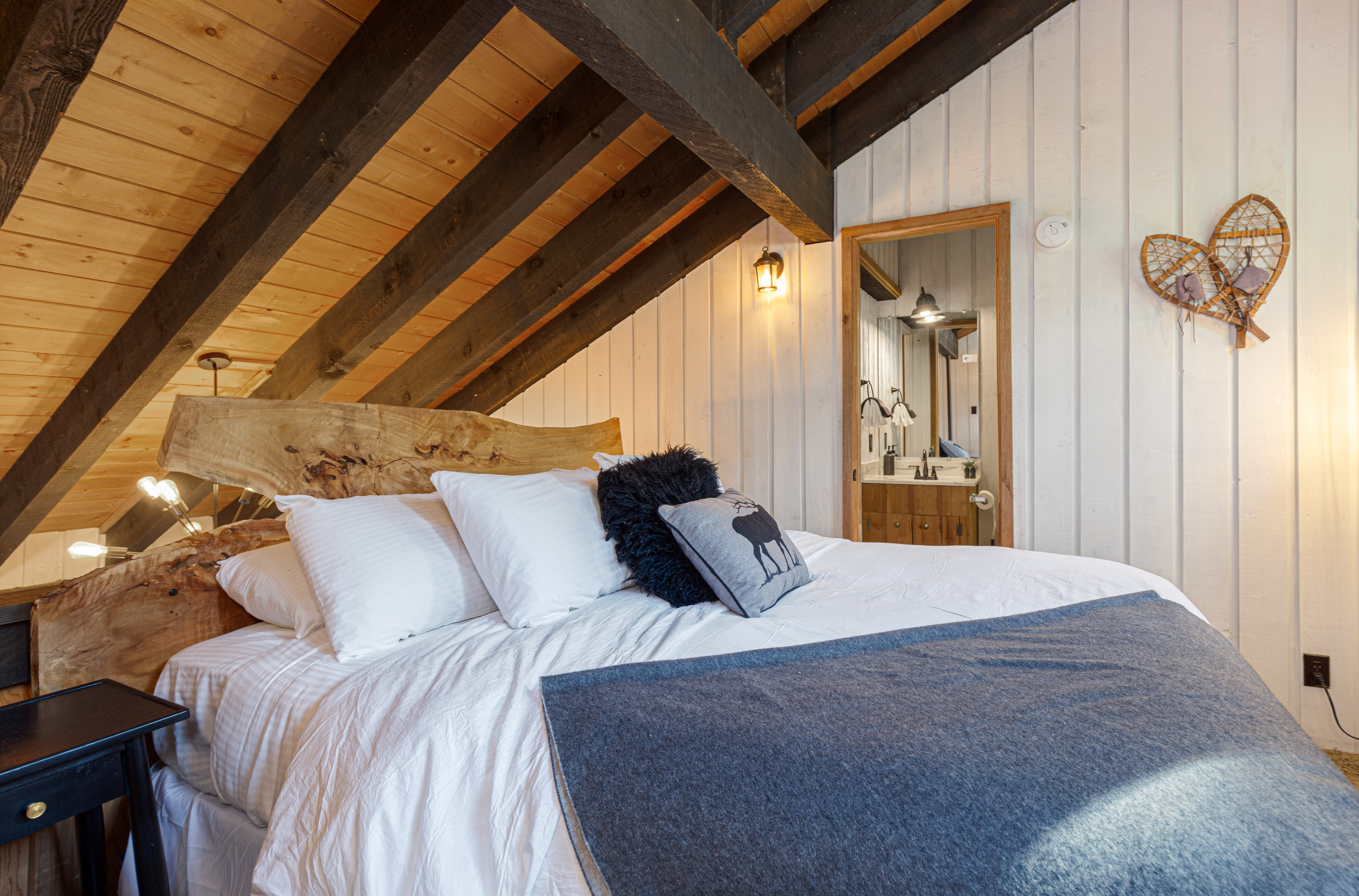 Upstairs, a private loft with bathroom awaits, offering an additional sleeping area or a tranquil space for reflection. The loft's open design allows you to gaze out at the picturesque mountain views from the comfort of your own space.