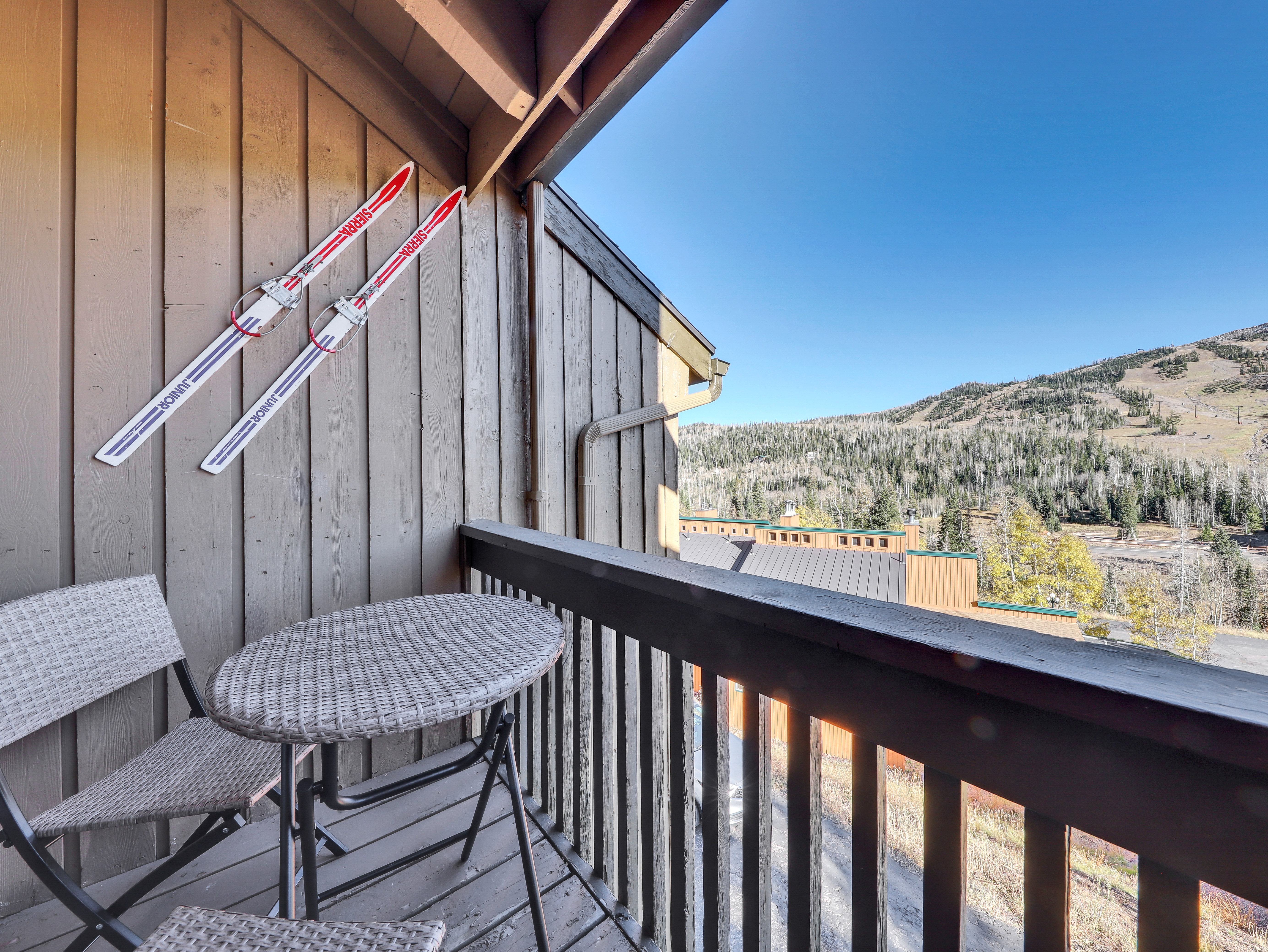 Step outside onto your private balcony and breathe in the crisp mountain air while taking in stunning vistas of the surrounding landscape. Whether you're sipping your morning coffee or stargazing at night, this outdoor space provides a serene escape.
