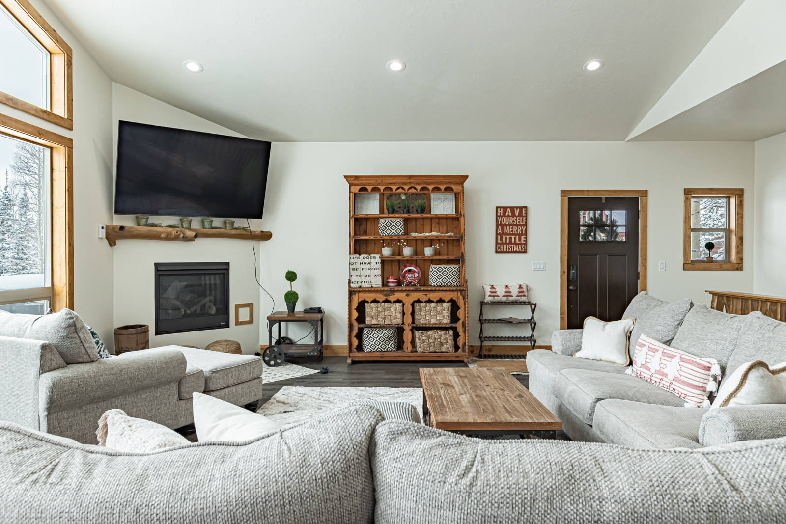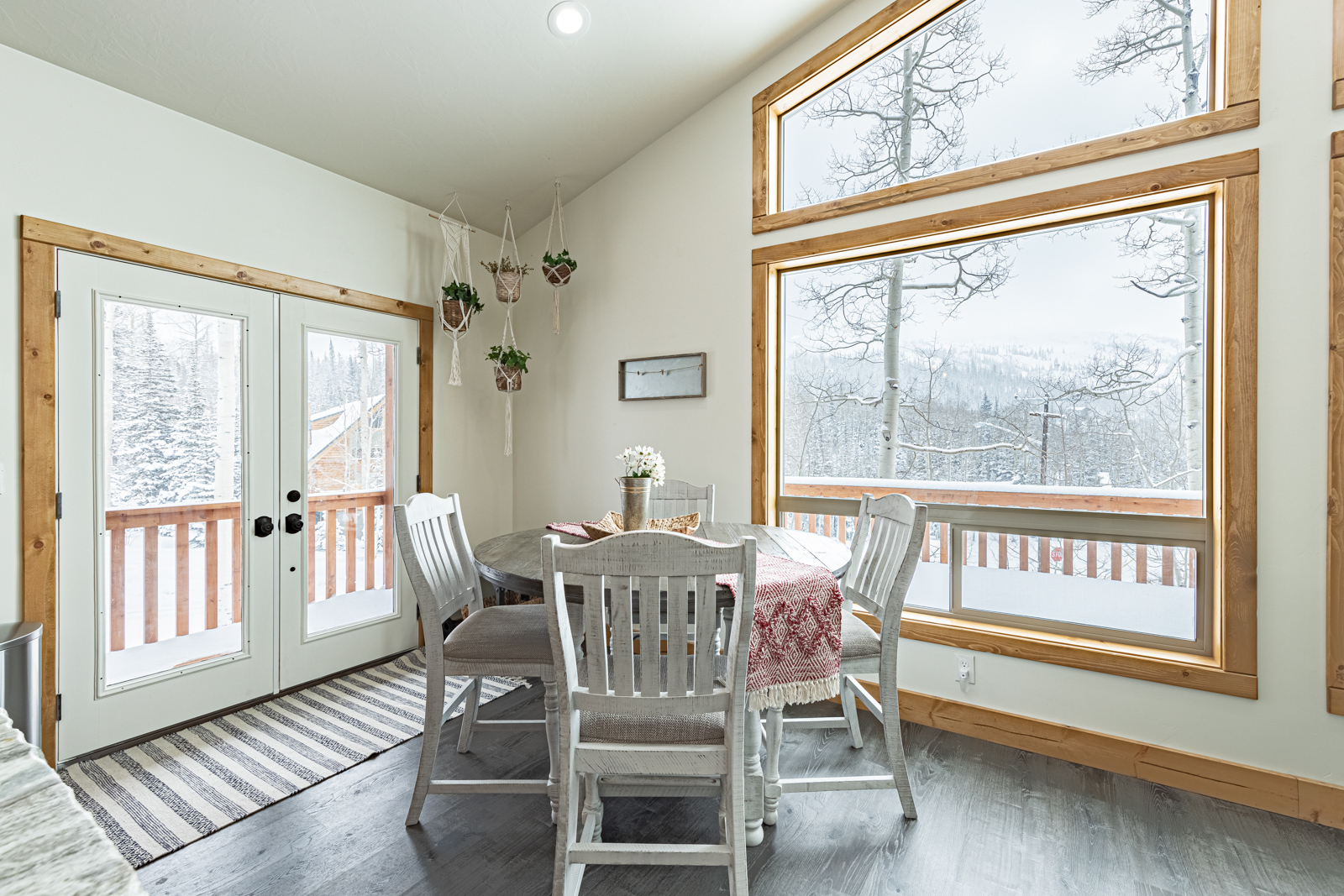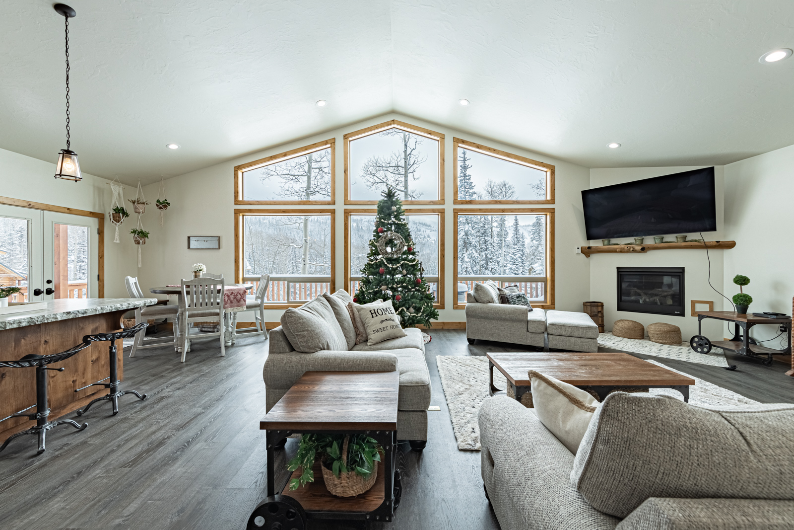 Step inside to a bright, open living area with large picture windows, comfortable furnishings, and a cozy fireplace — the perfect place to relax after a day on the slopes or trails. The fully equipped kitchen and family-sized dining area make it easy to enjoy meals together and create lasting memories.