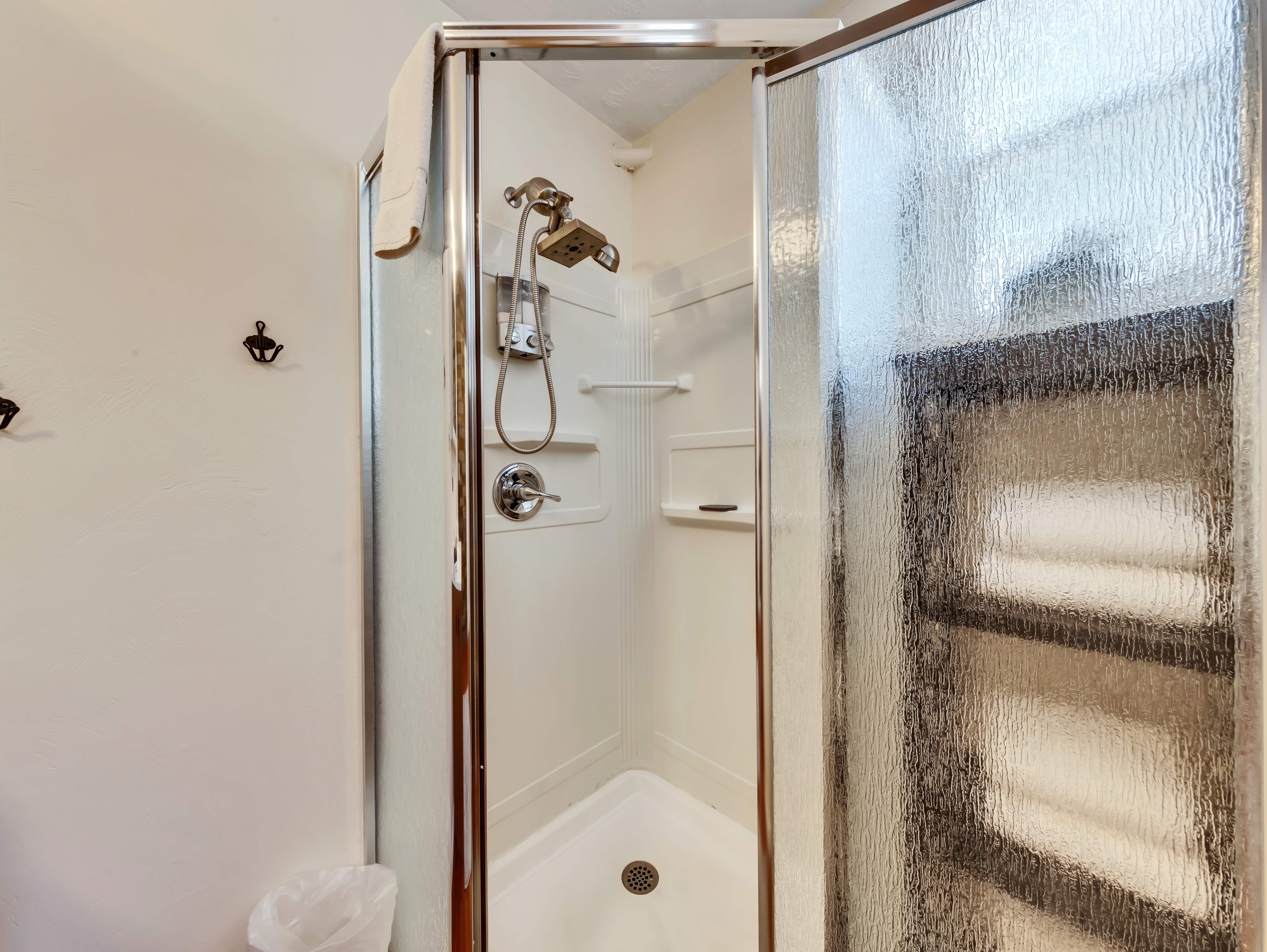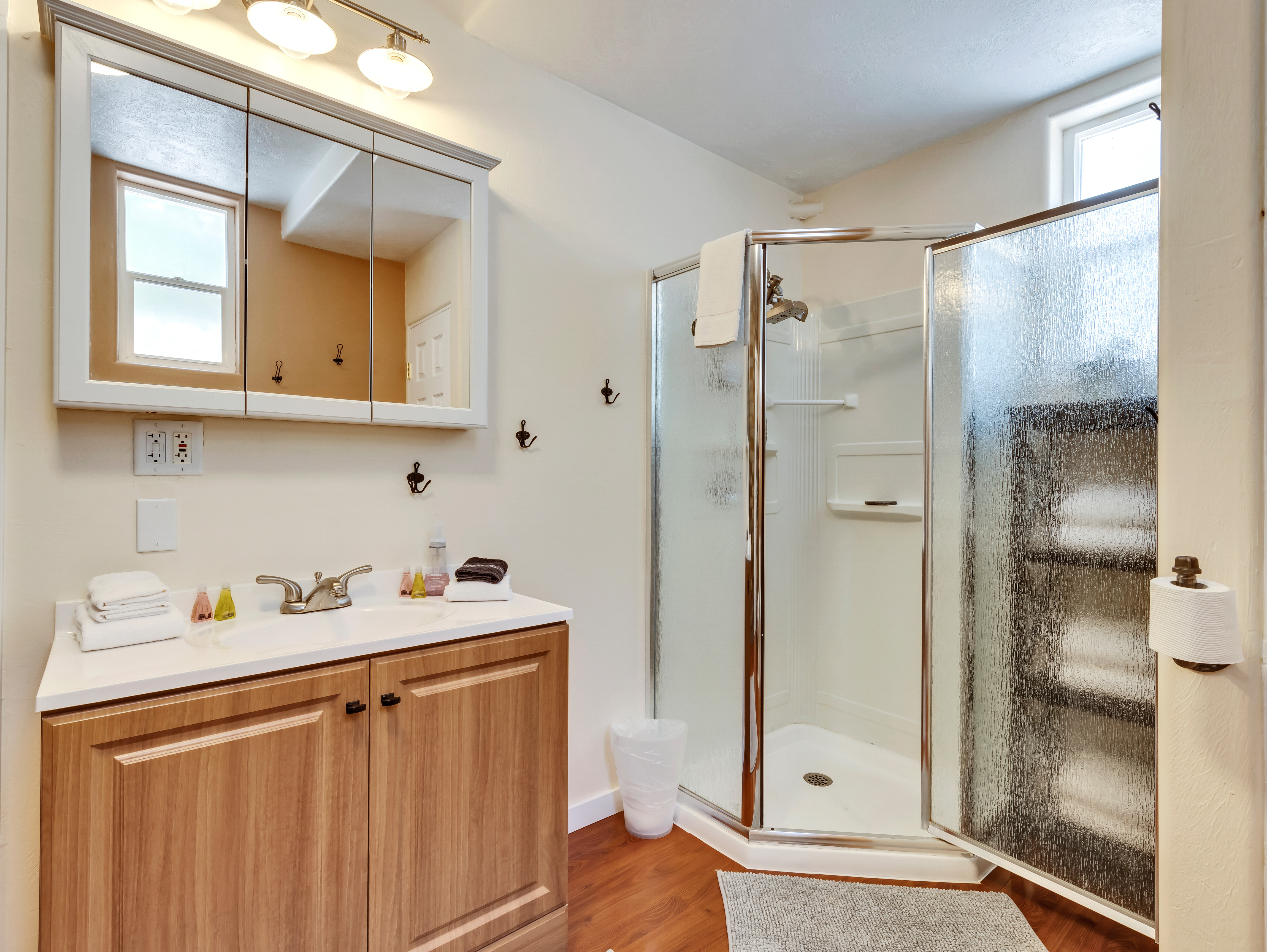 Primary bath with spacious shower and all essentials