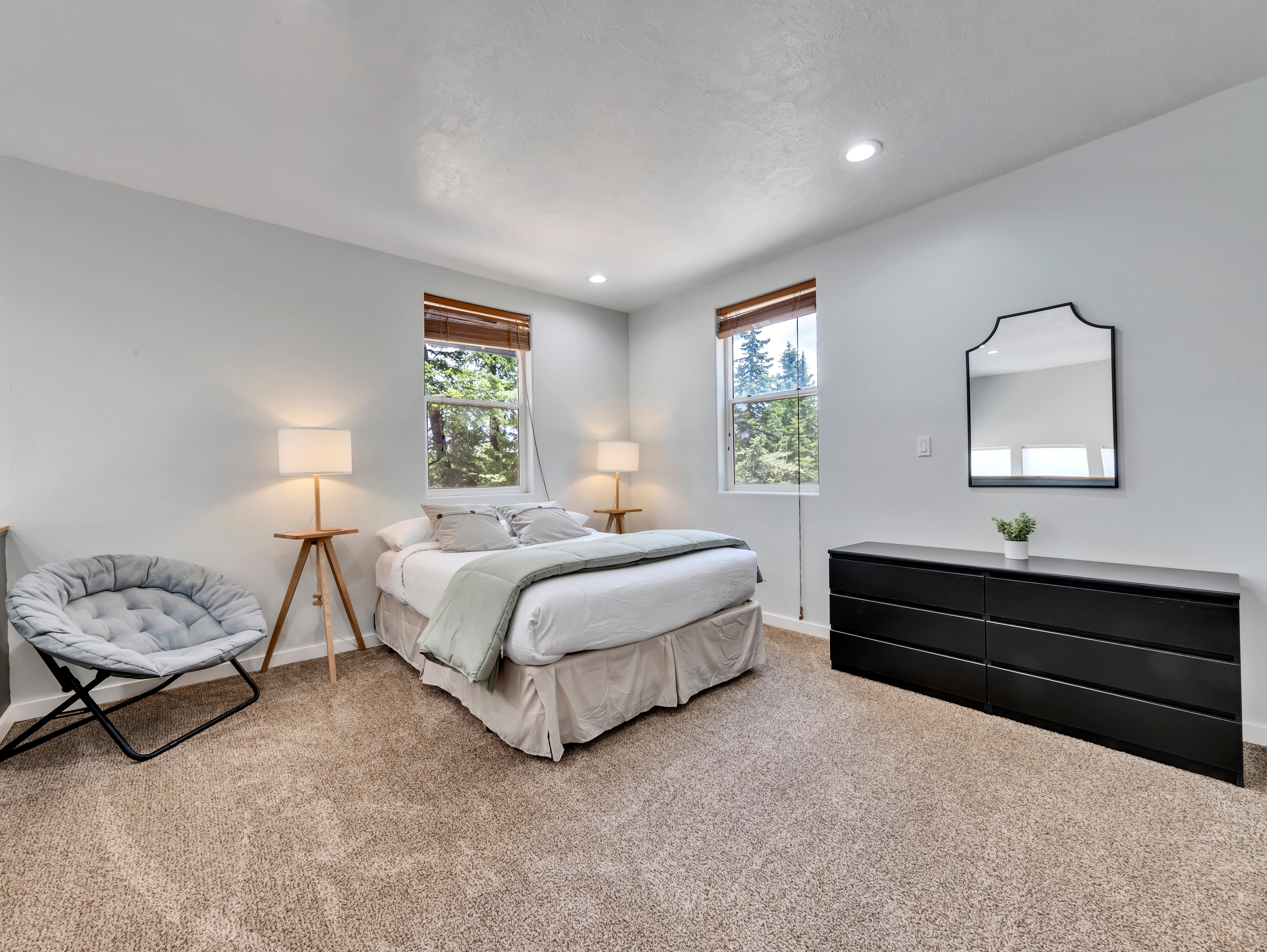 Bedroom: King bed with luxurious linens