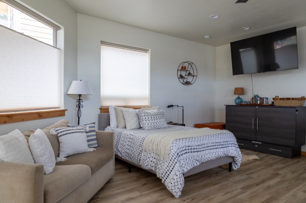 Welcome to Branch A – Aspen Suite, a thoughtfully designed studio just a couple of blocks from Sisters Coffee and an easy walk to downtown shops, dining, and local events. This inviting space comfortably sleeps up to four guests with a queen bed and Murphy bed, making it ideal for couples, small families, or friends traveling together.