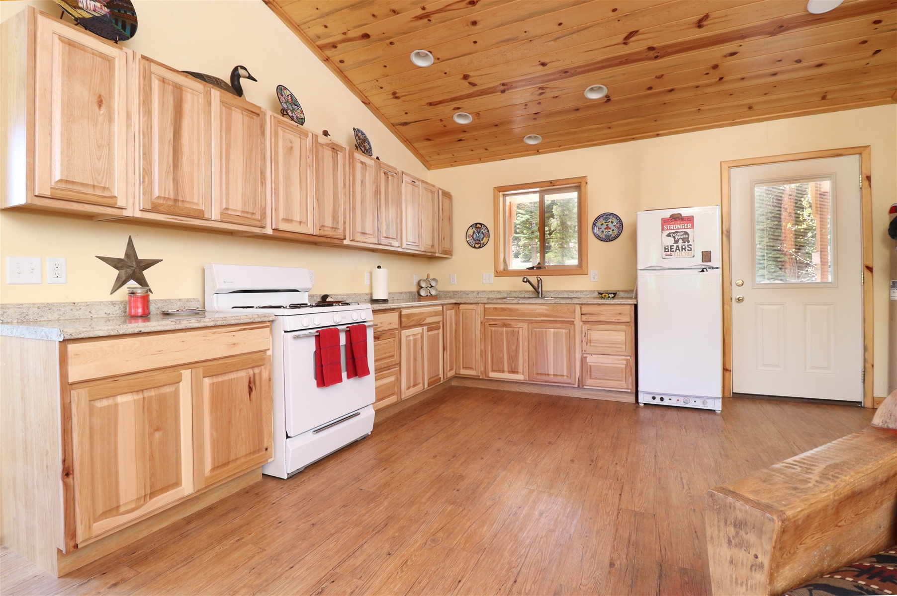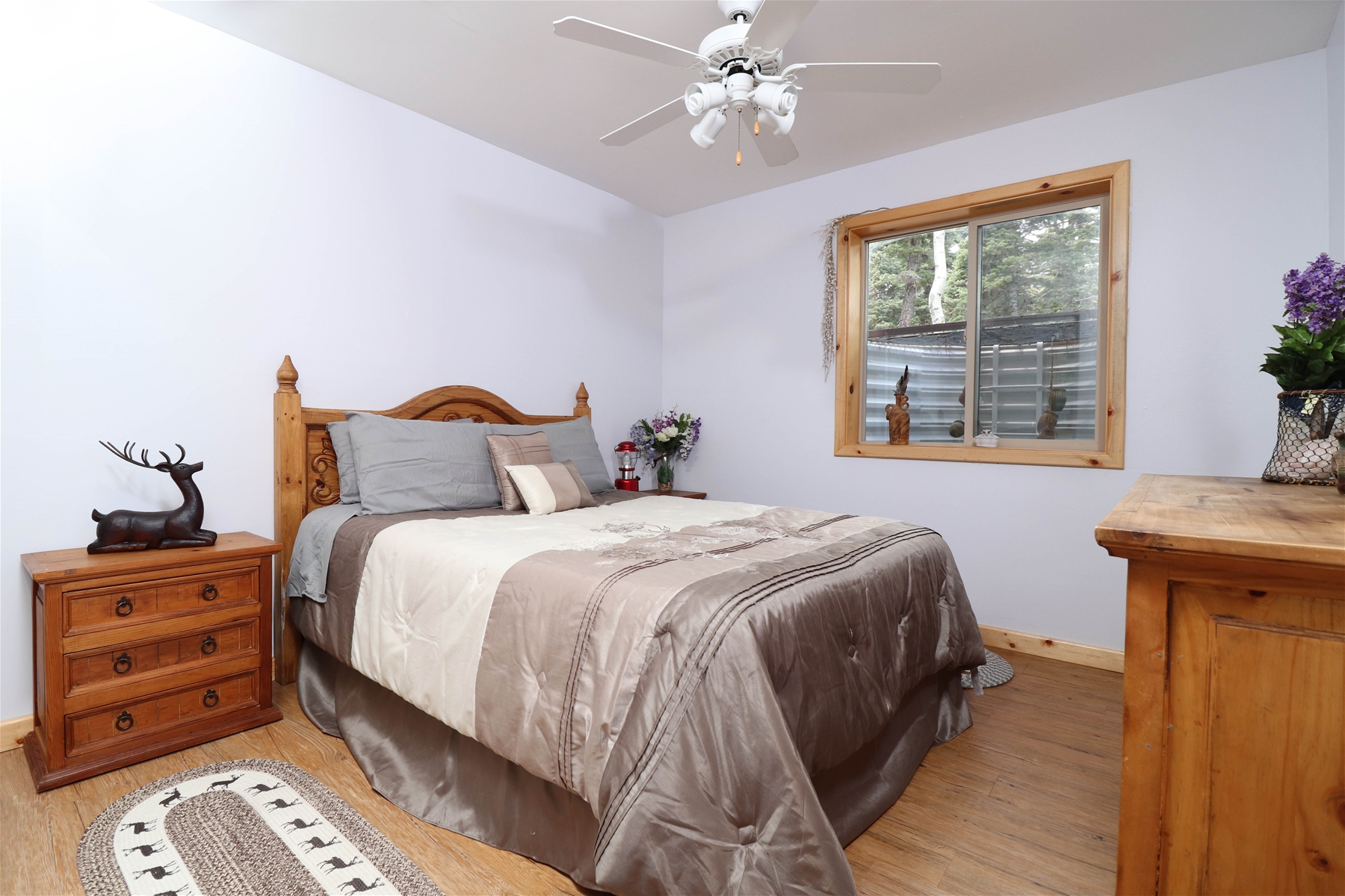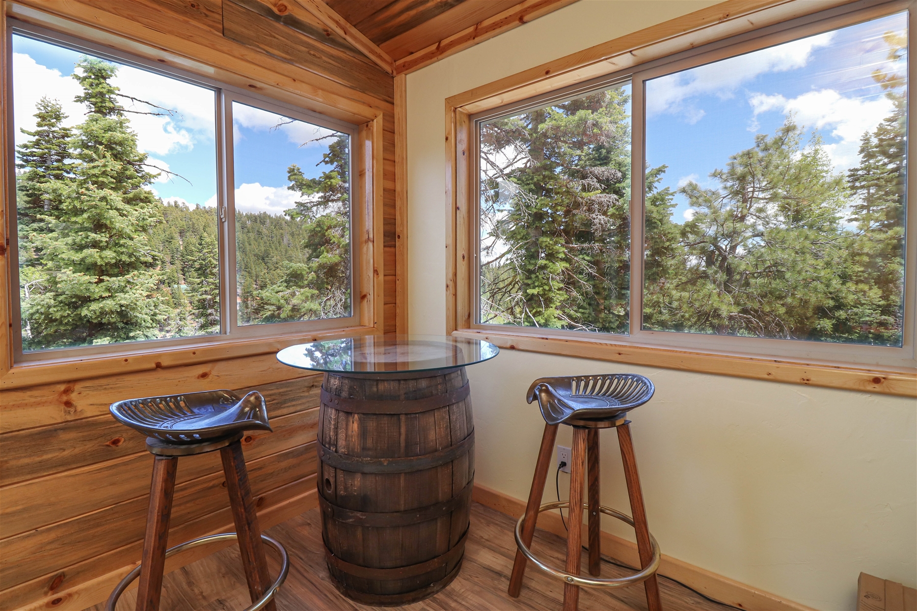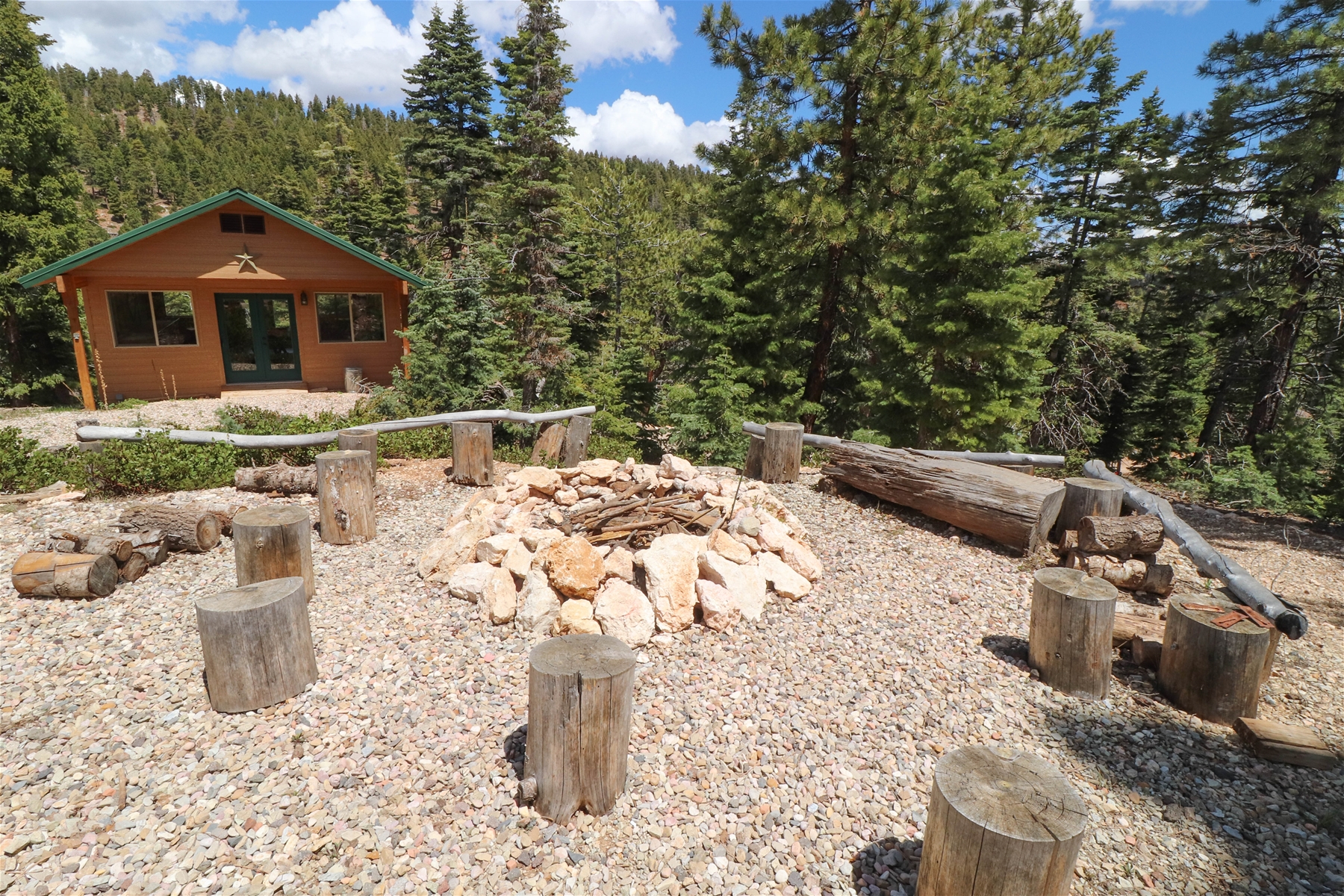Embrace sustainable living with our solar-powered home, complemented by efficient gas appliances for your convenience. Surrounded by a picturesque wooded lot, the cabin offers a serene atmosphere with a cozy firepit, ideal for starlit evenings and marshmallow roasts.