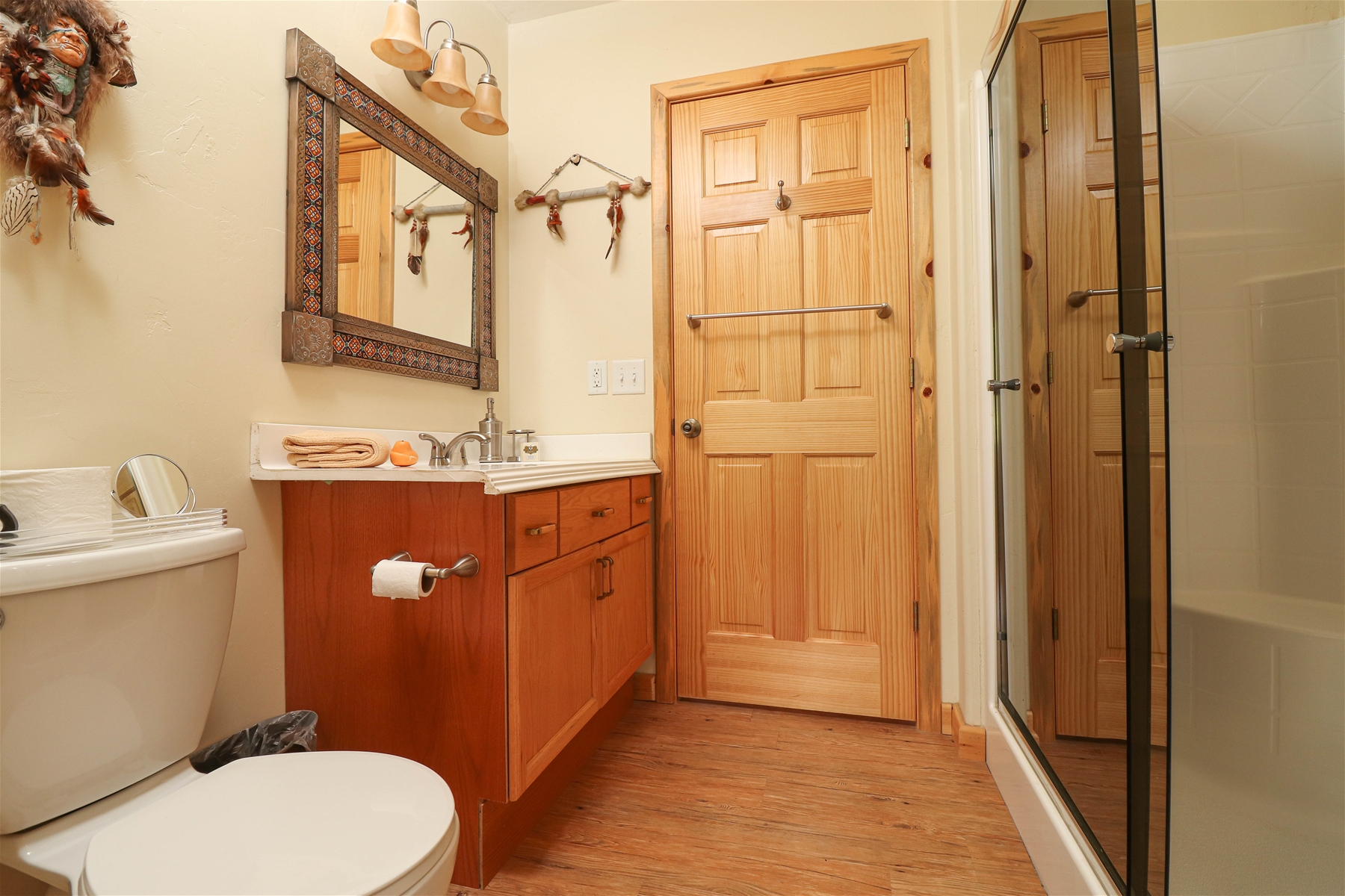 We welcome your furry companions to join in the adventure, as our cabin is pet-friendly. The master bedroom, conveniently located on the main level, features a luxurious walk-in shower, ensuring comfort and accessibility.