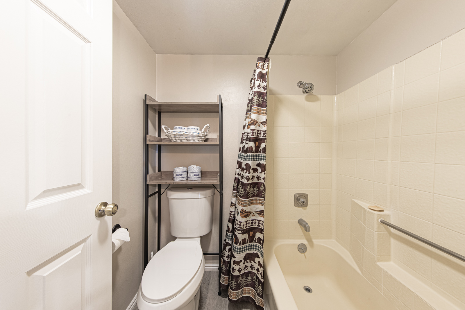 Bathrooms β There is one full bath with a tub/shower upstairs and one half-bath (toilet and sink) downstairs.