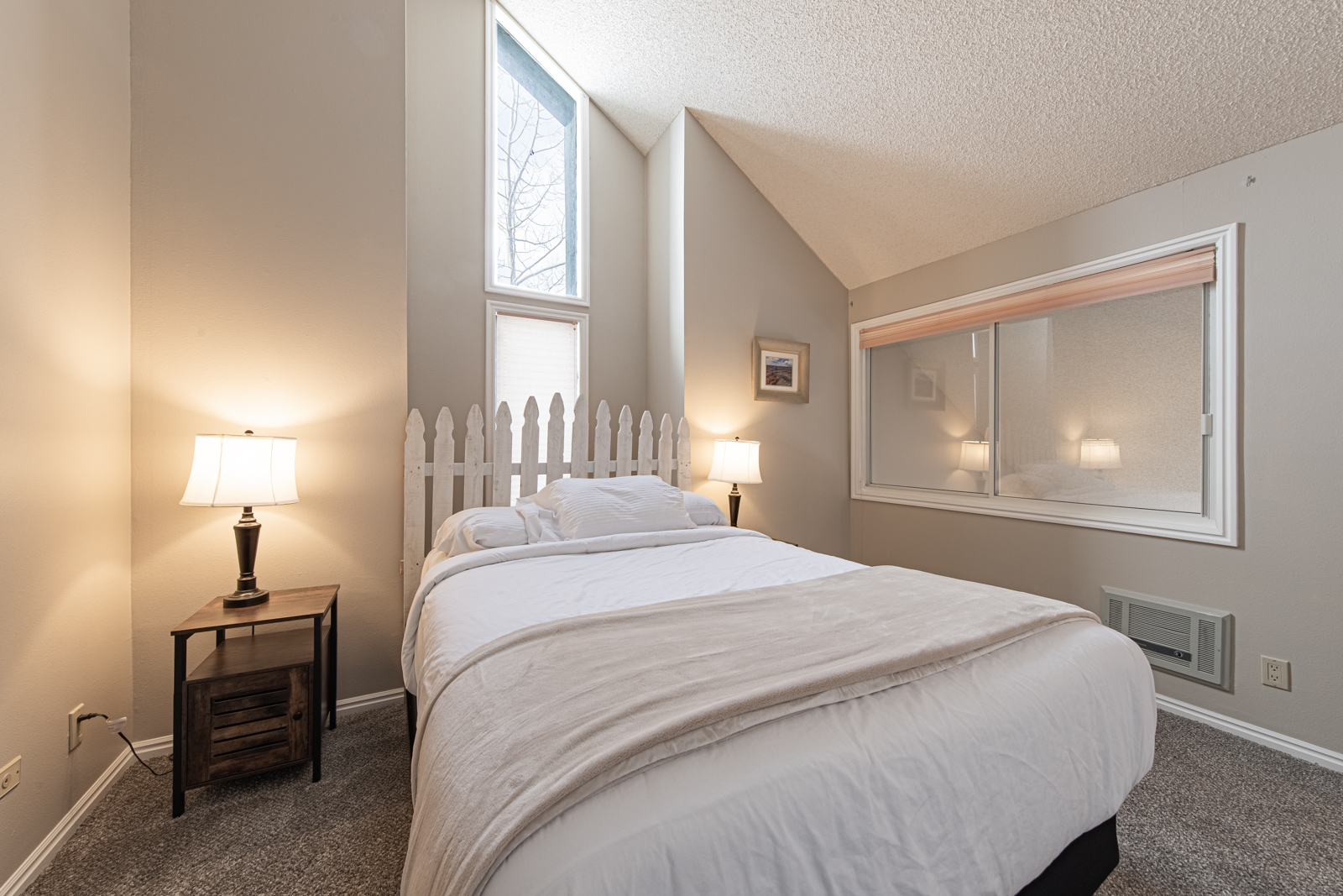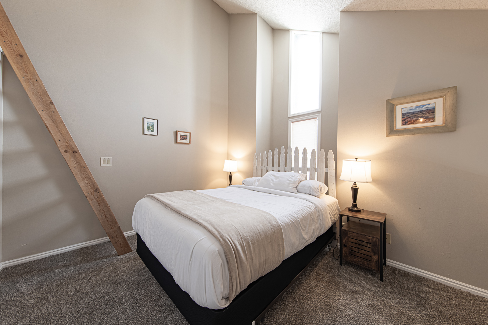 Bedrooms β There is one private bedroom with a Queen-size bed and a second bedroom with a Queen-size bed and a loft accessed by a ladder.