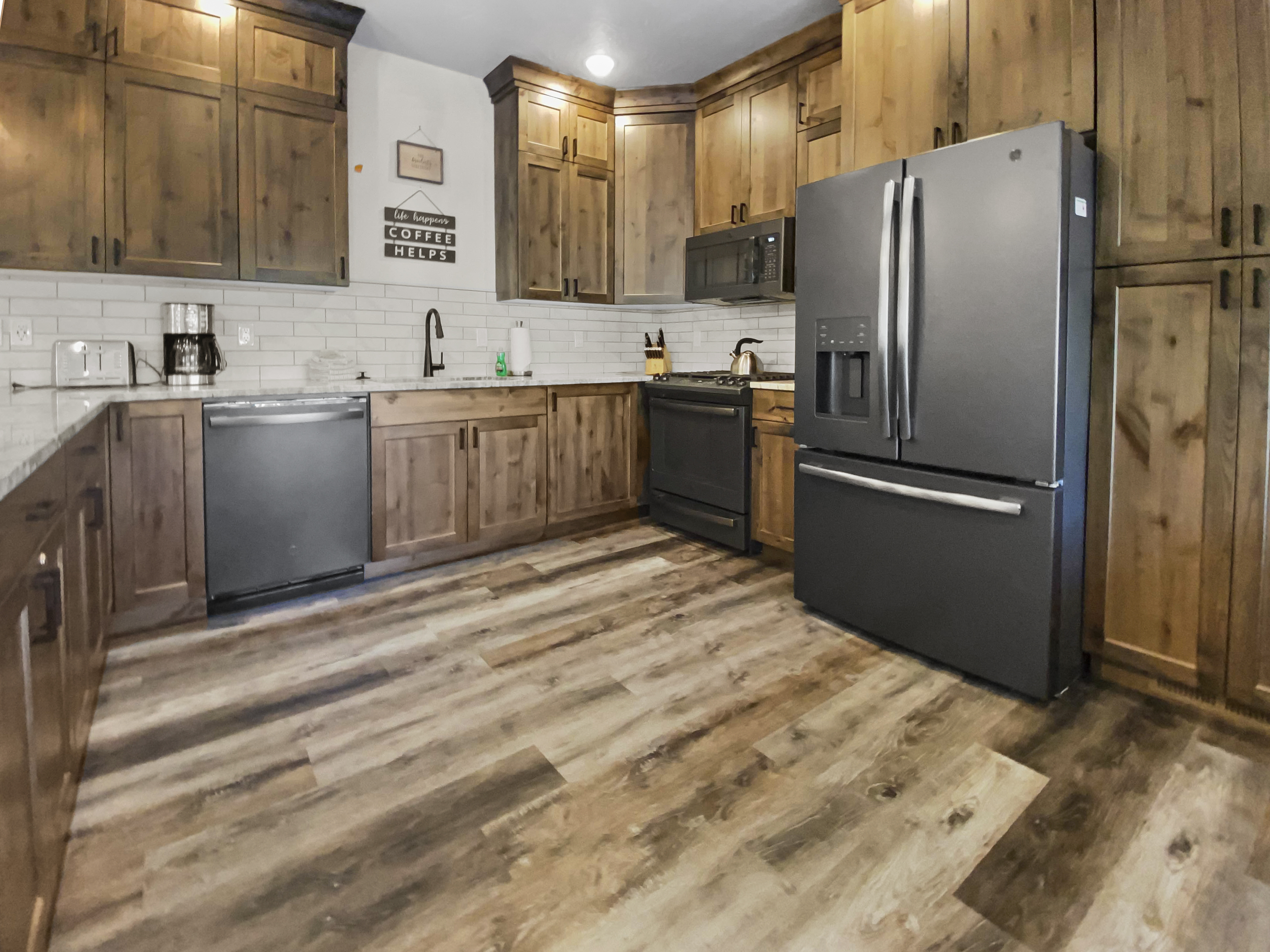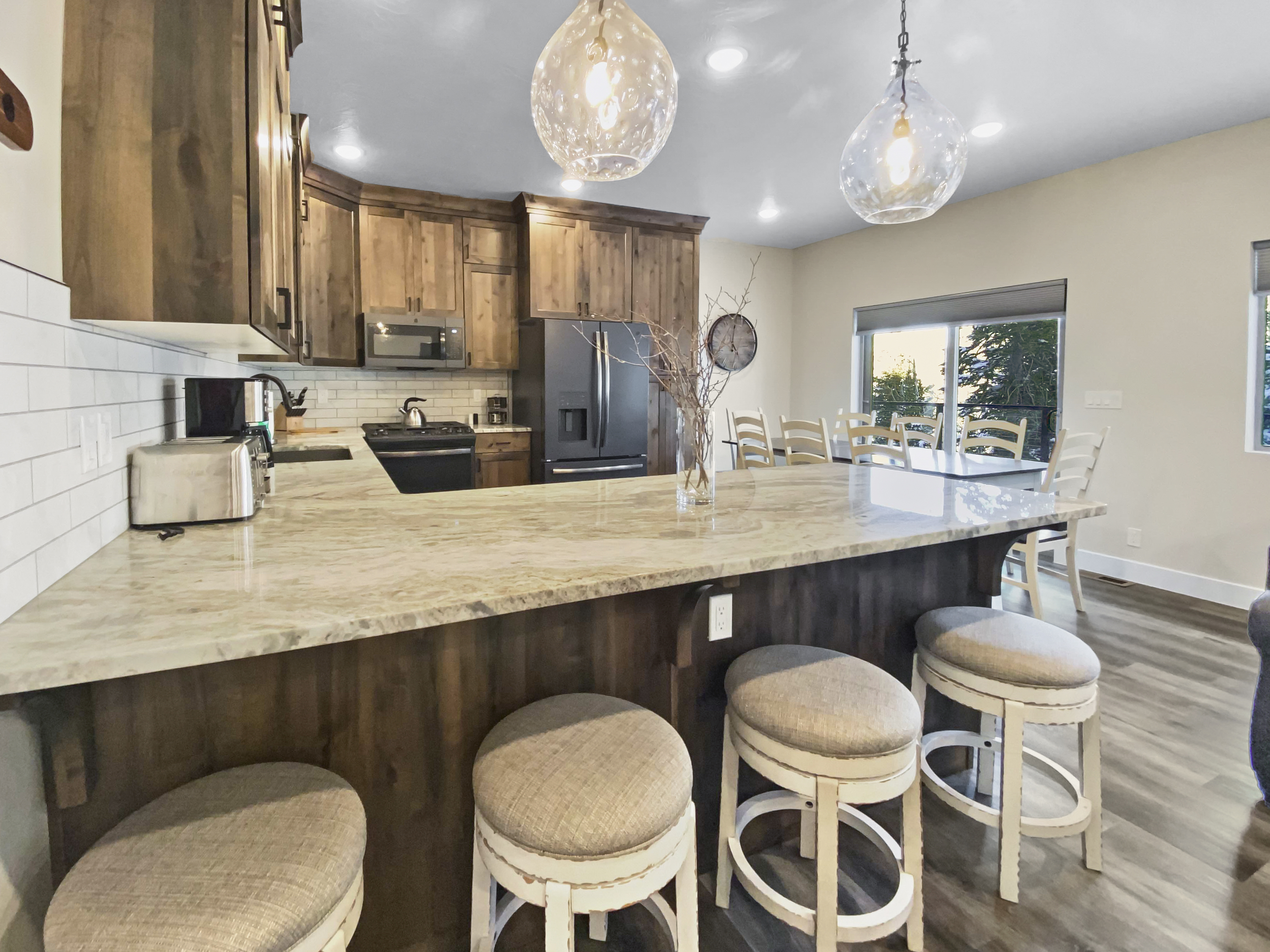 Fully equipped kitchen with granite counters (starter basics provided—bring extras for longer stays)