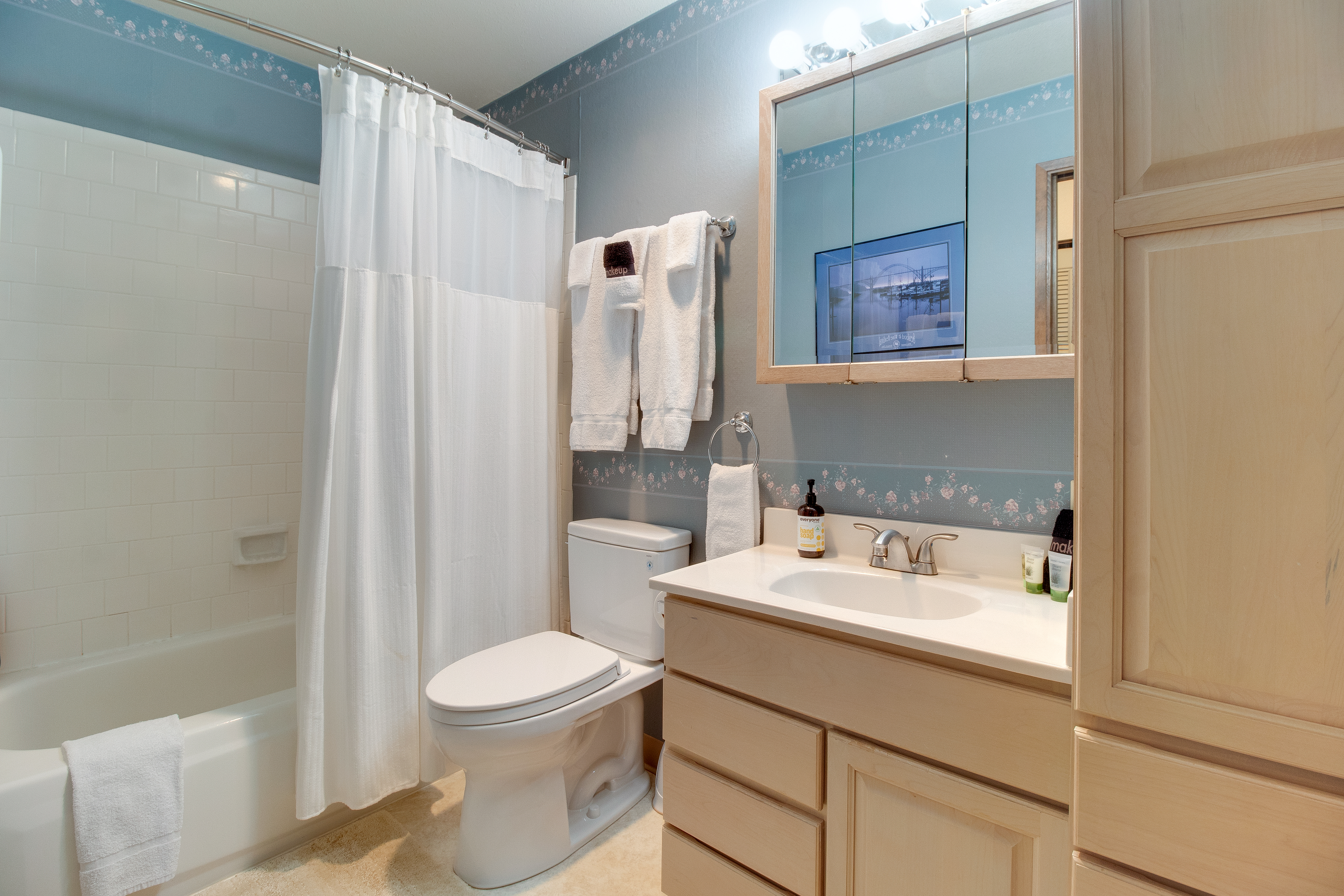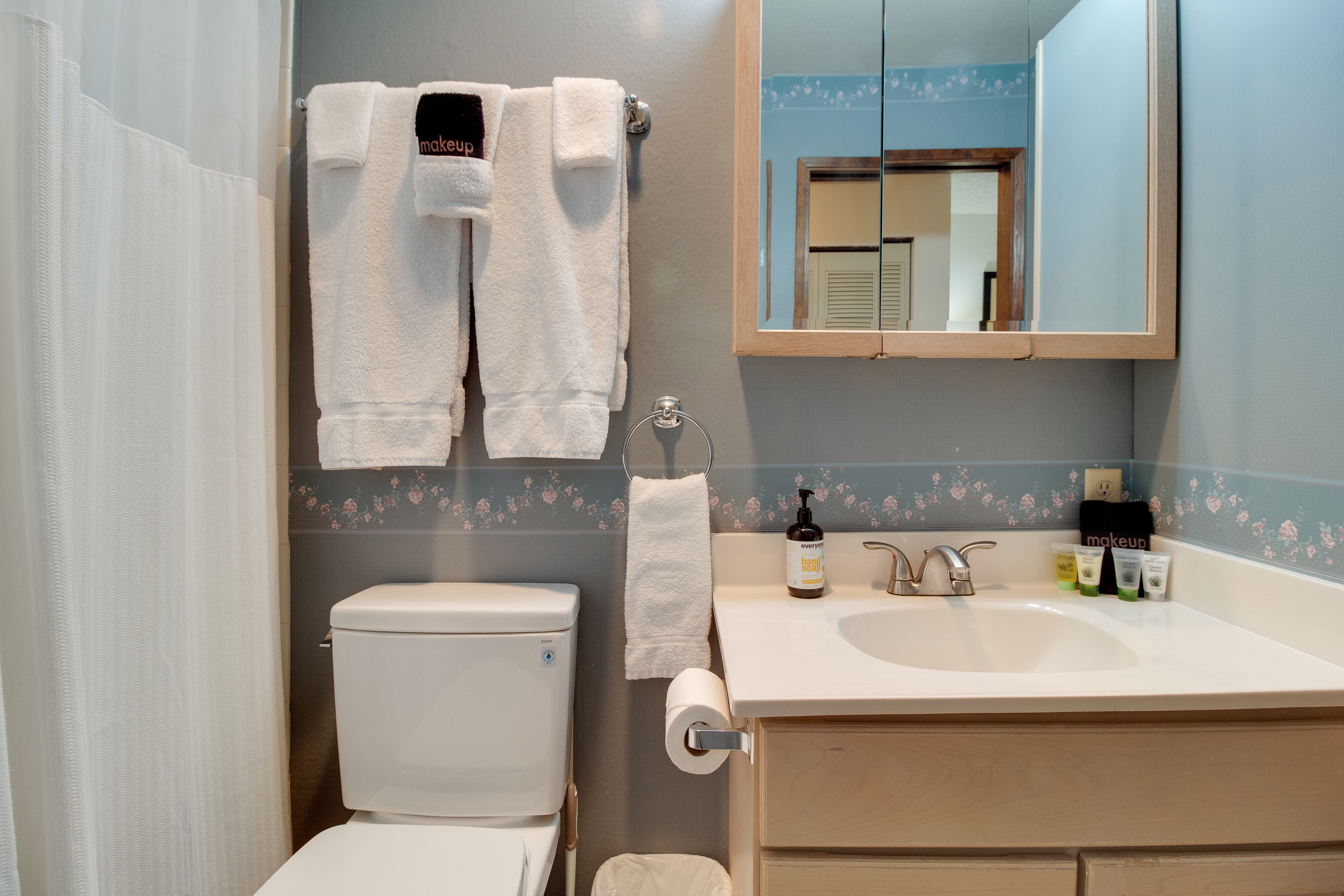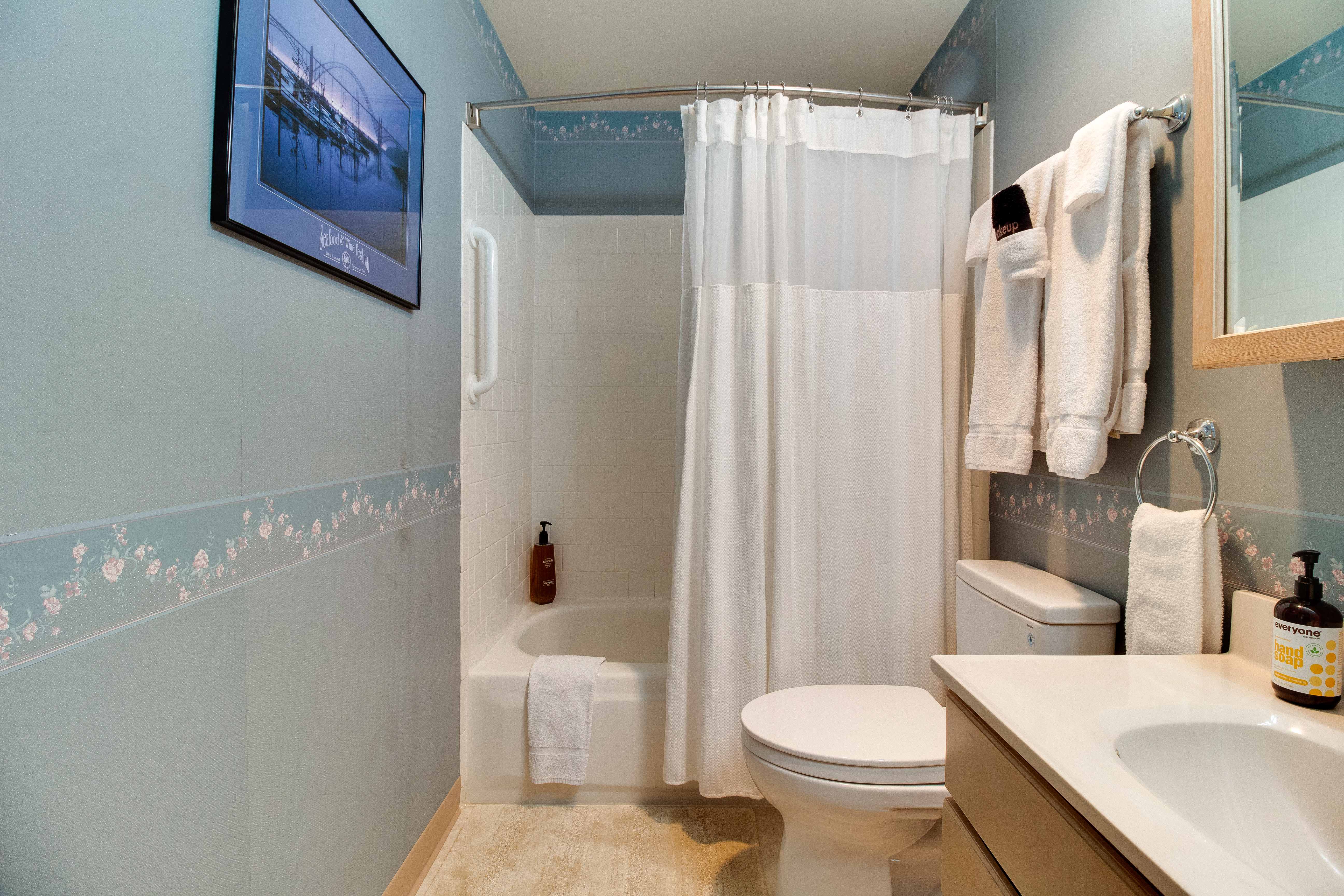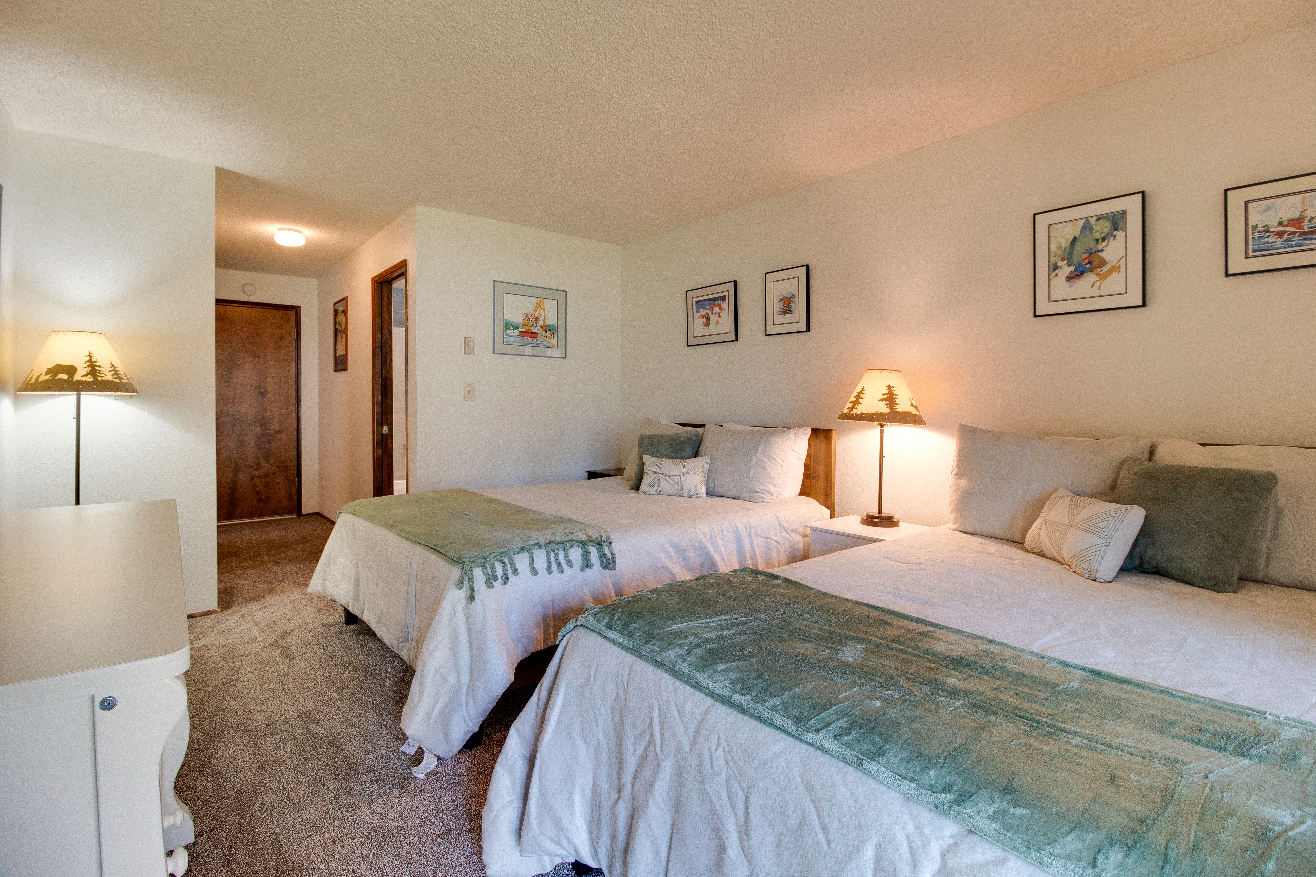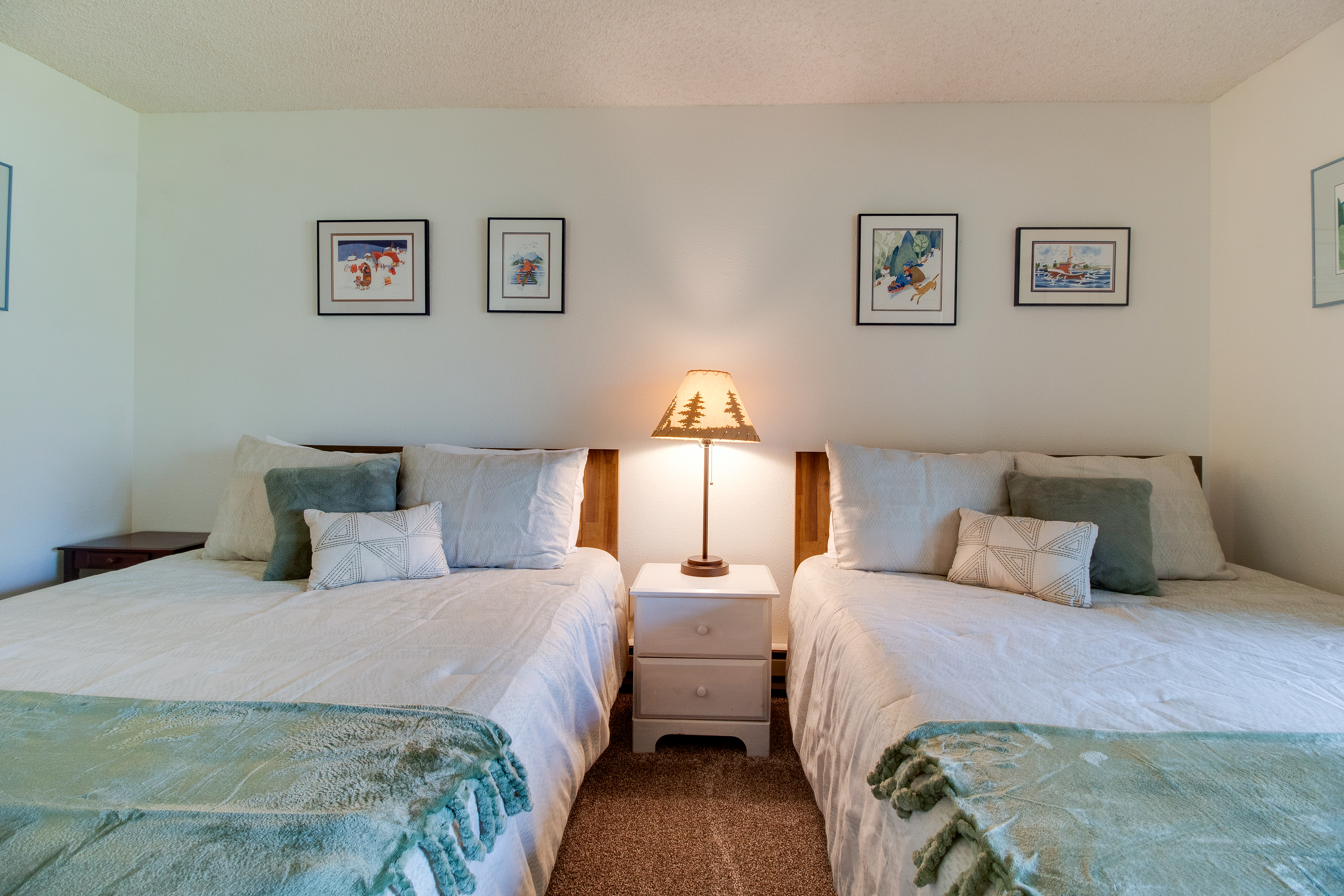 The condo features two beautifully appointed bedrooms, each with its own private bathroom. The master bedroom features a comfortable King-sized bed, while the second bedroom is furnished with two Queen beds, allowing the condo to sleep up to six guests comfortably.