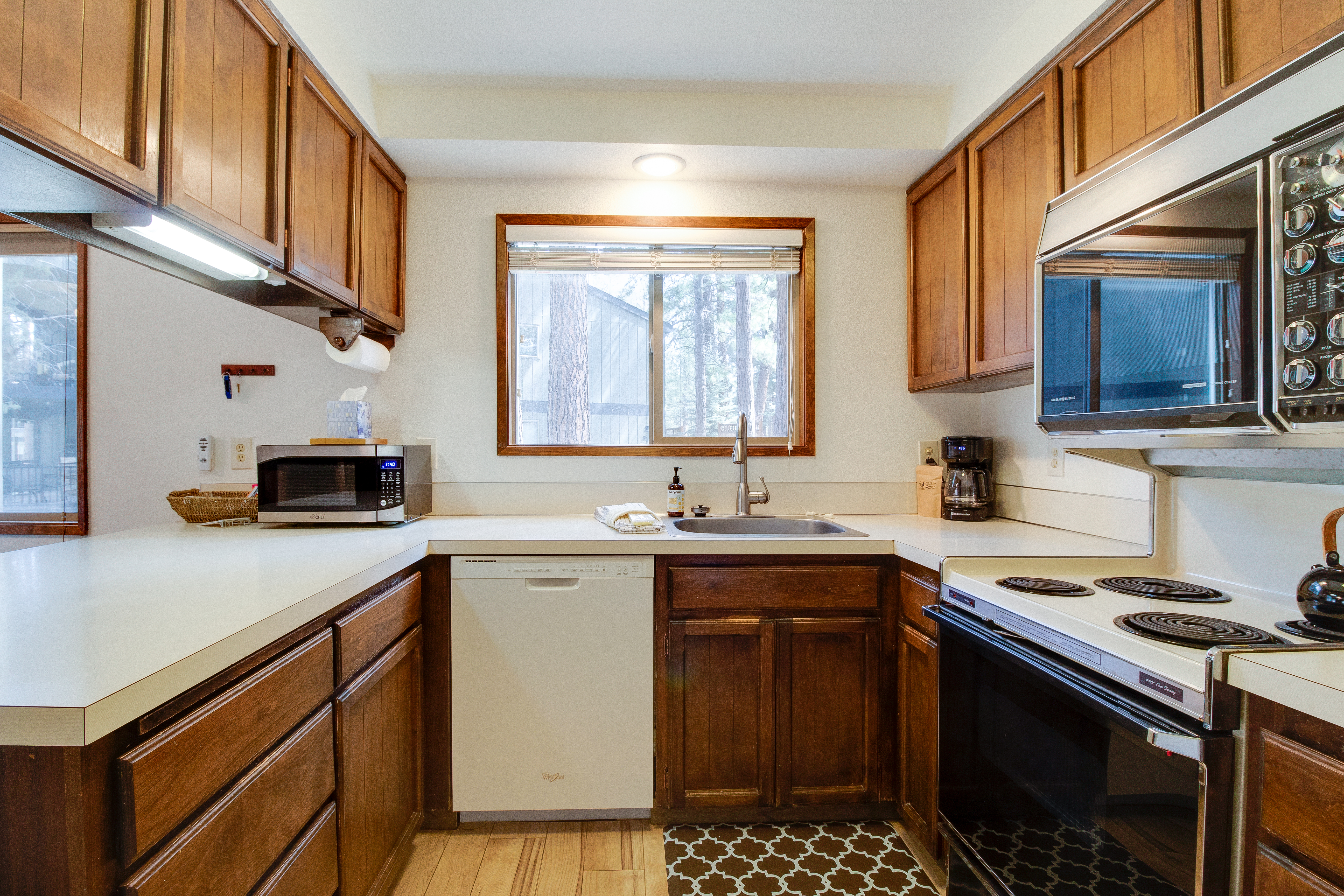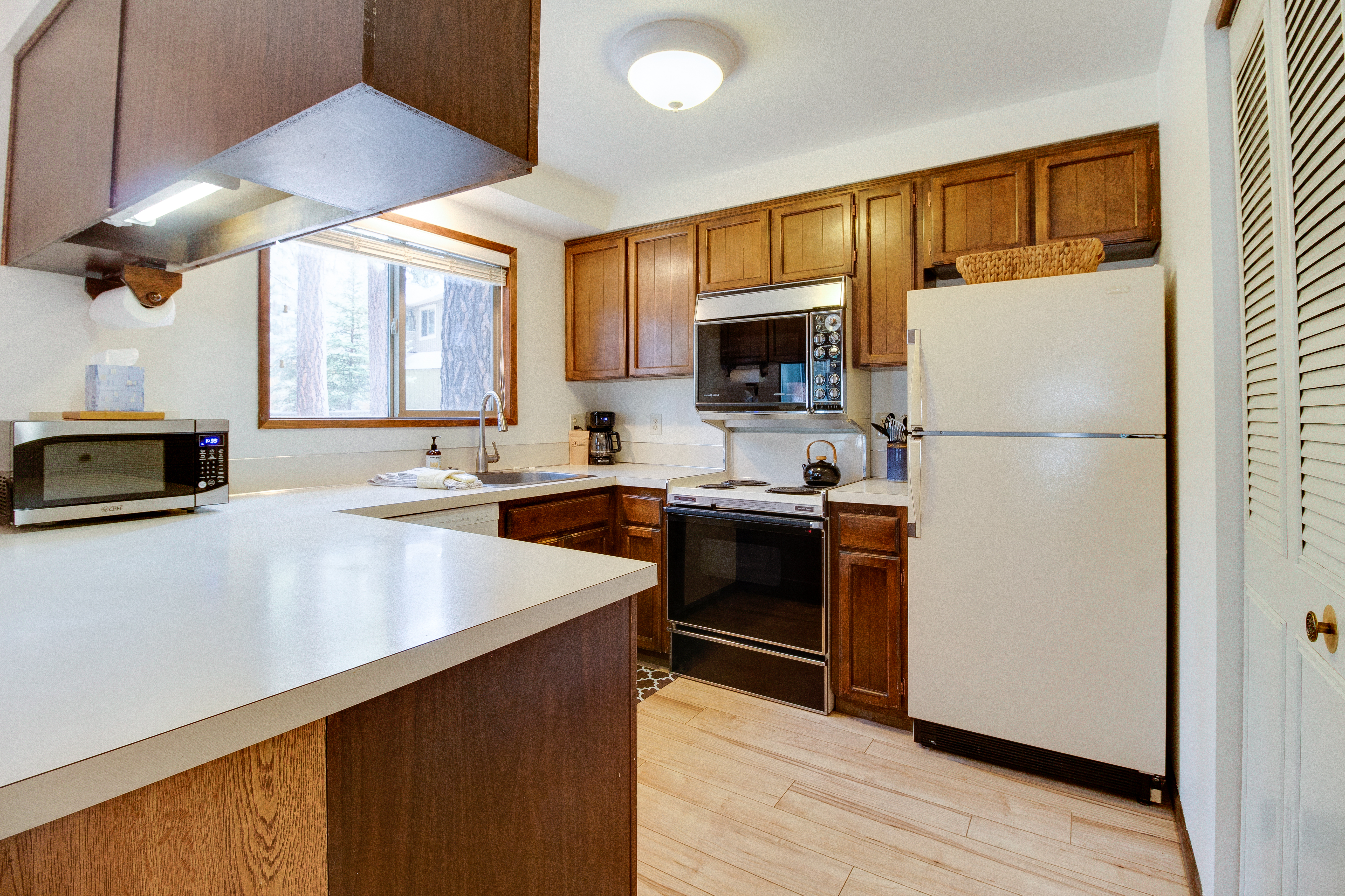 The fully equipped kitchen boasts all the modern conveniences you'll need to prepare your favorite meals, including a stove, oven, microwave, refrigerator, and dishwasher. The dining area is located just off the kitchen, and comfortably seats six guests.