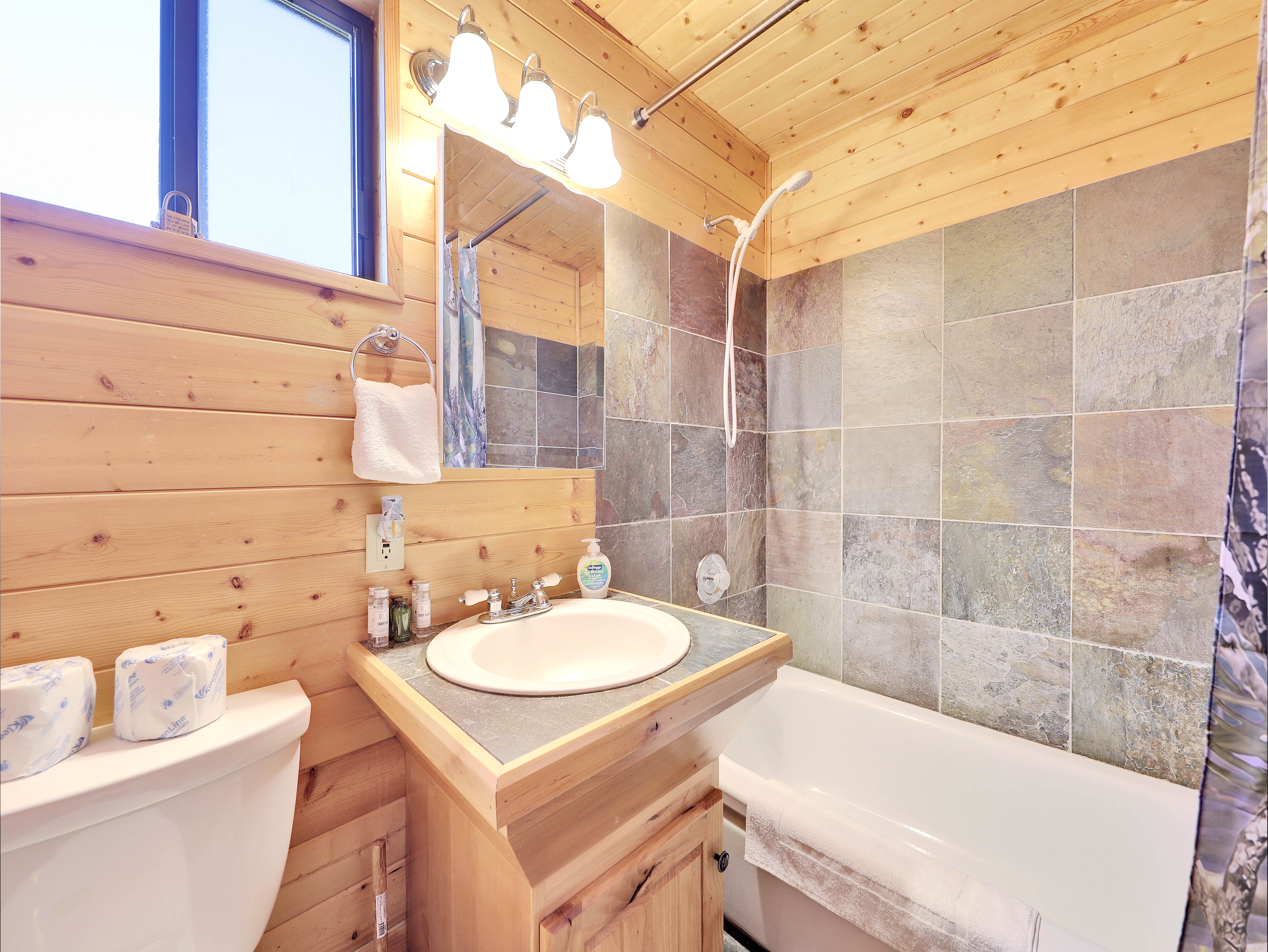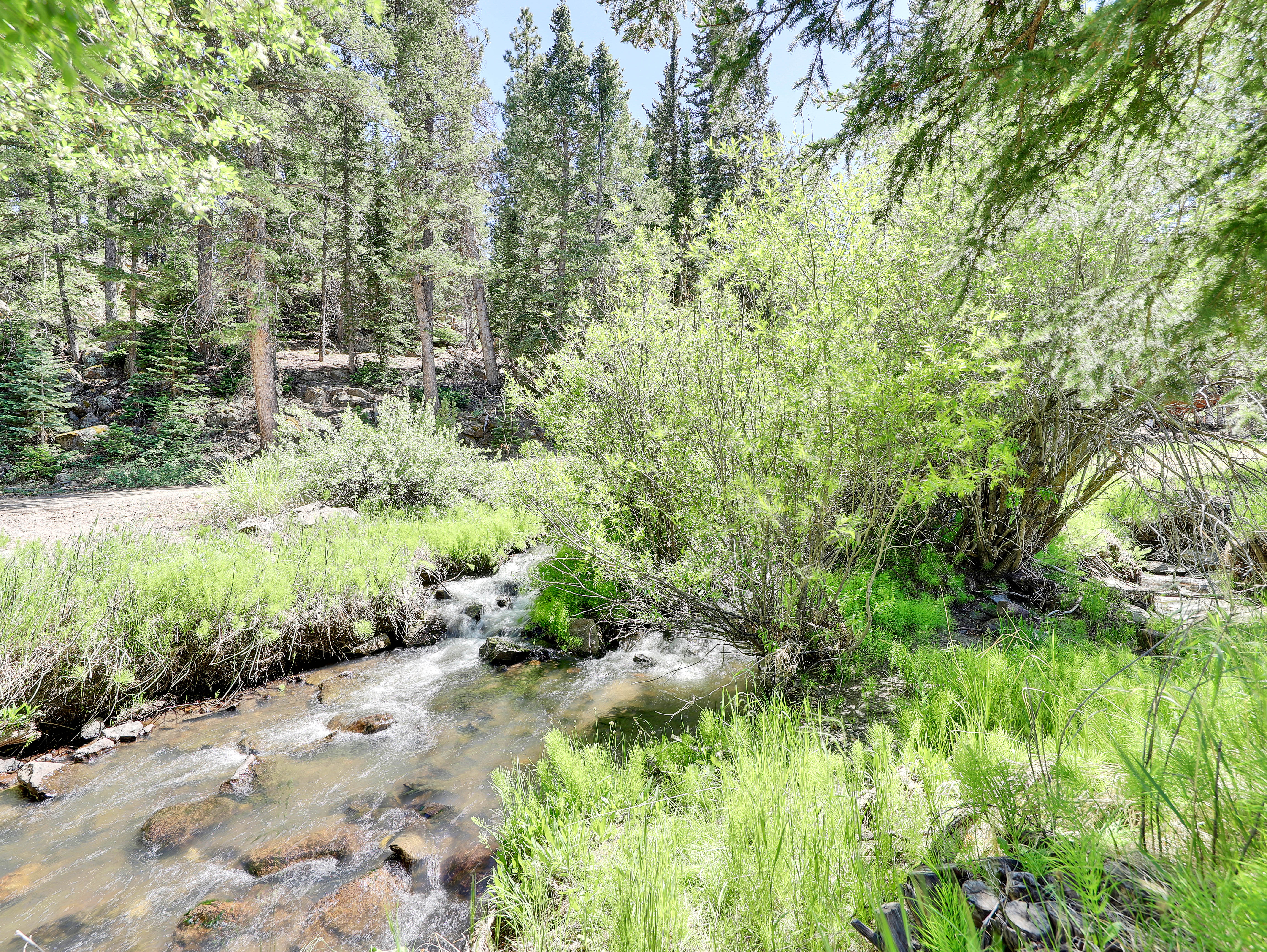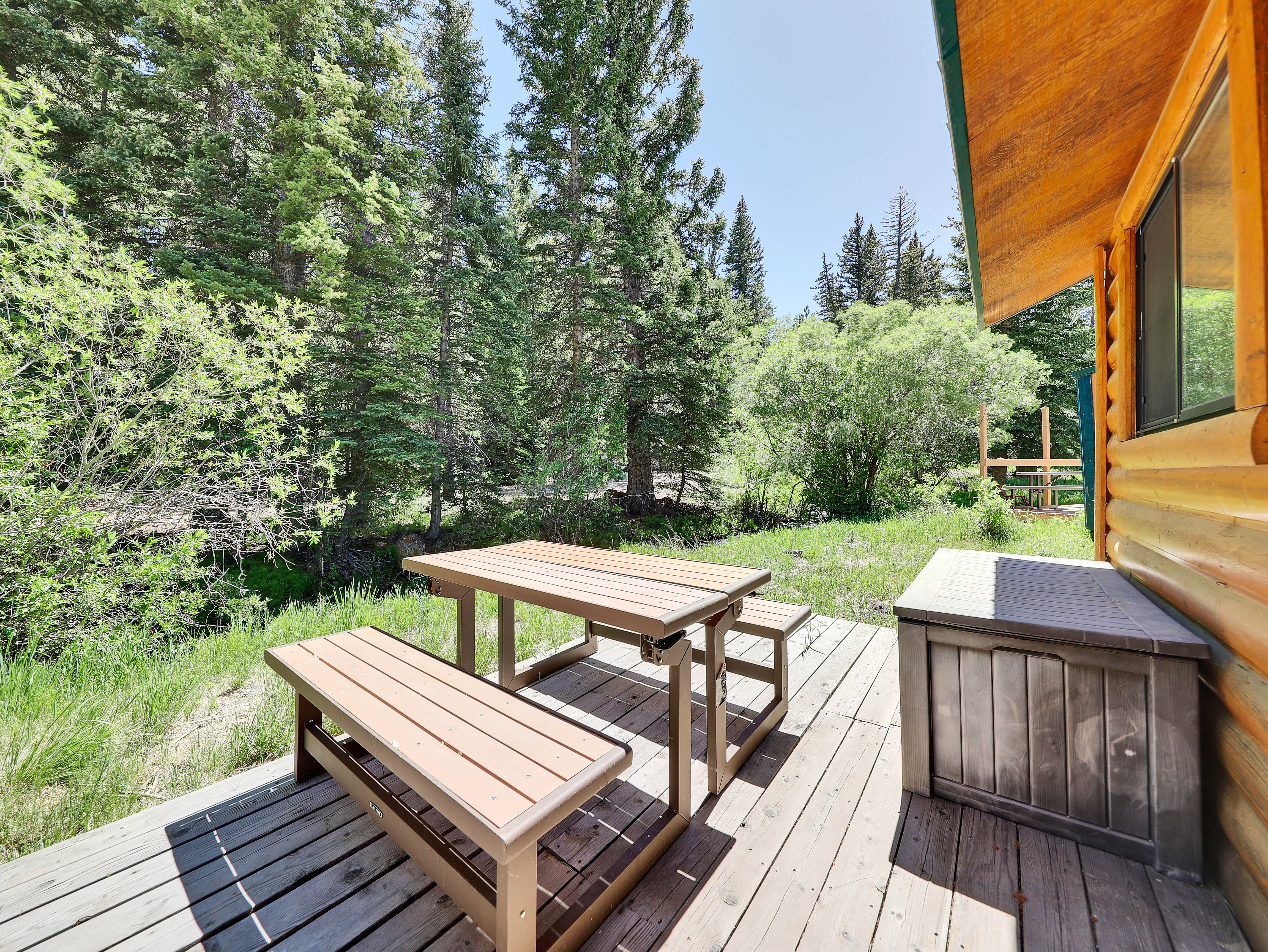 Step outside onto the spacious deck overlooking a babbling creek, where you can unwind with your morning coffee or stargaze in the evening. The backyard provides a peaceful oasis, ideal for relaxing after a day of adventure.