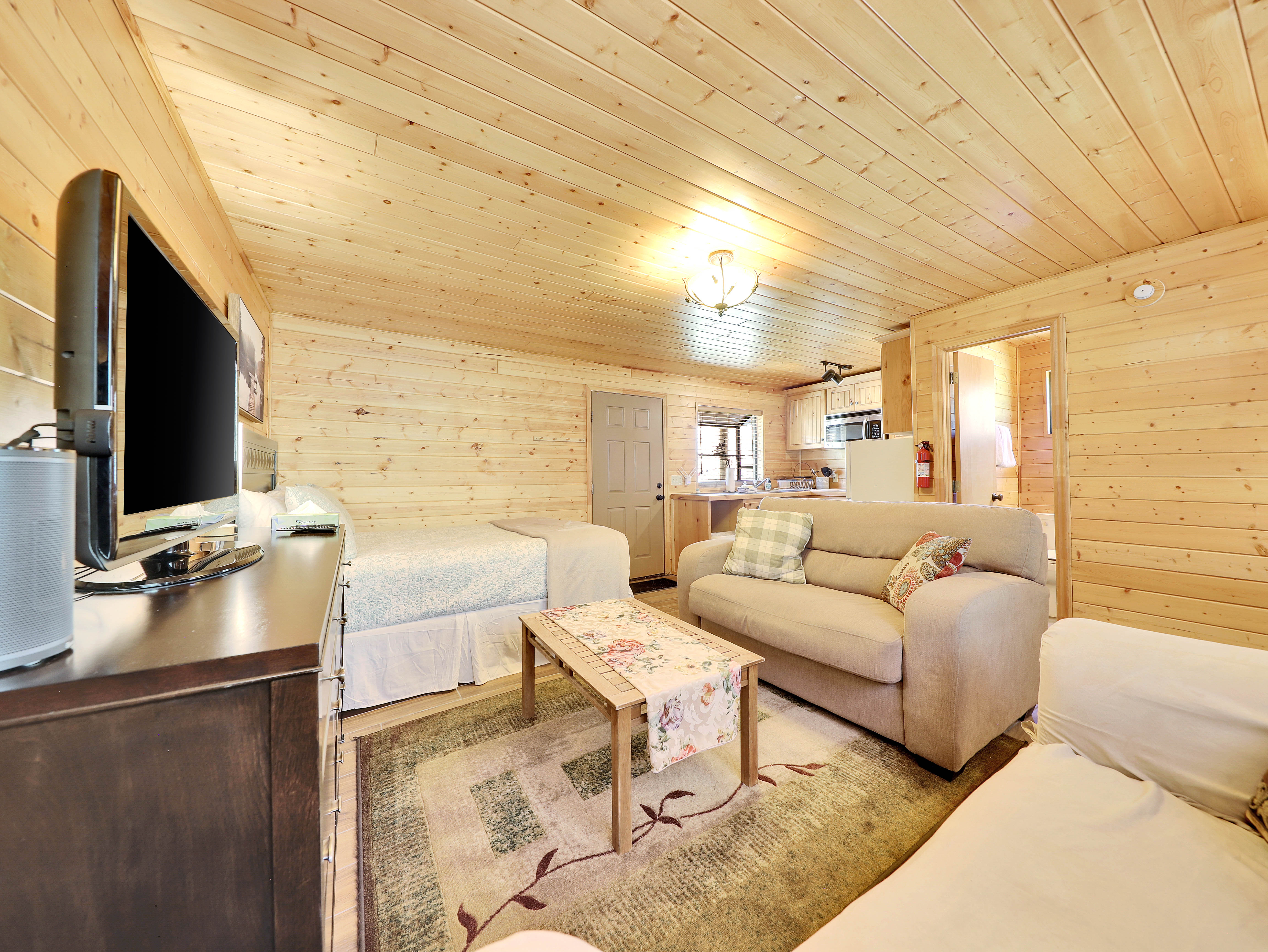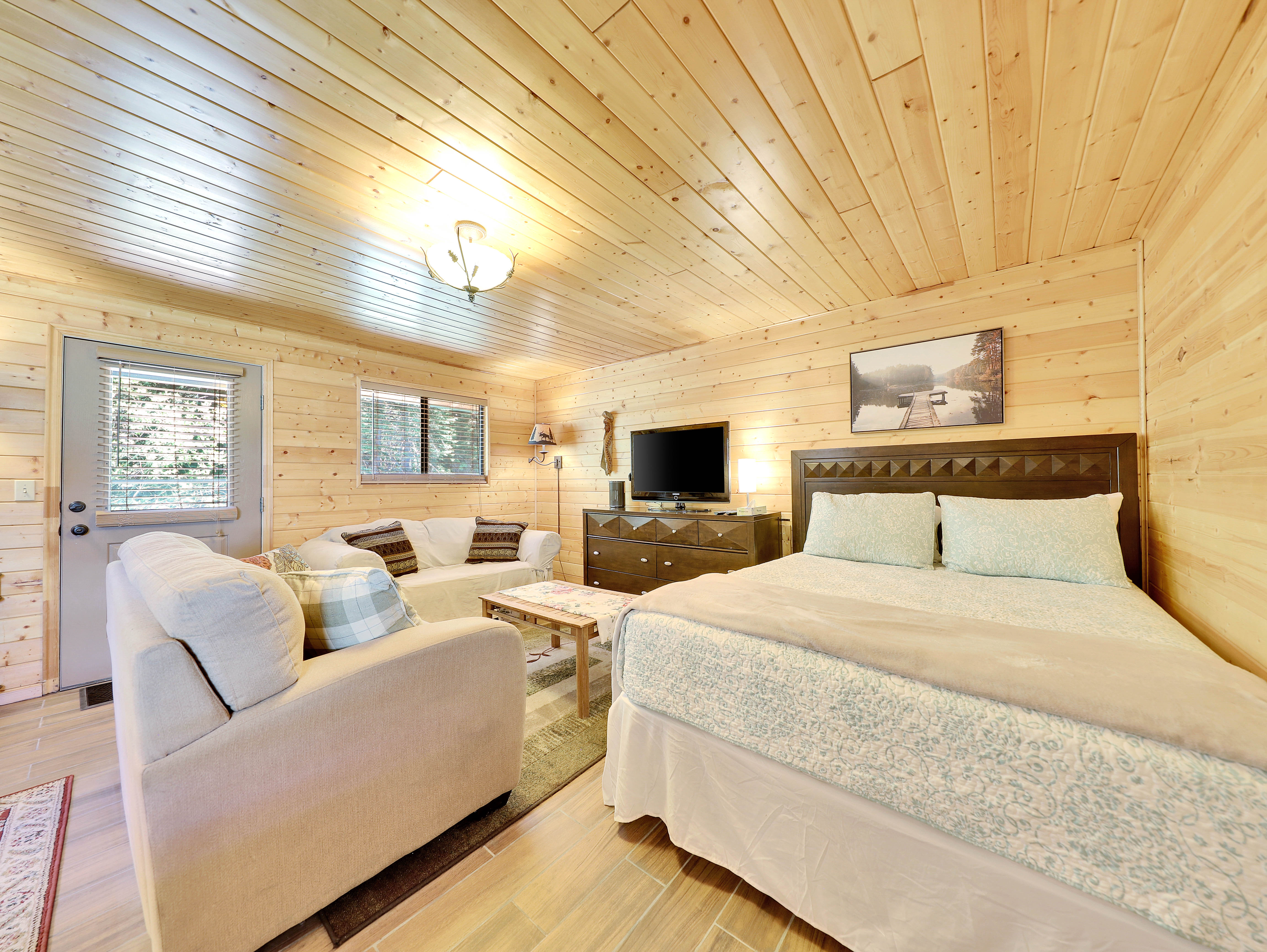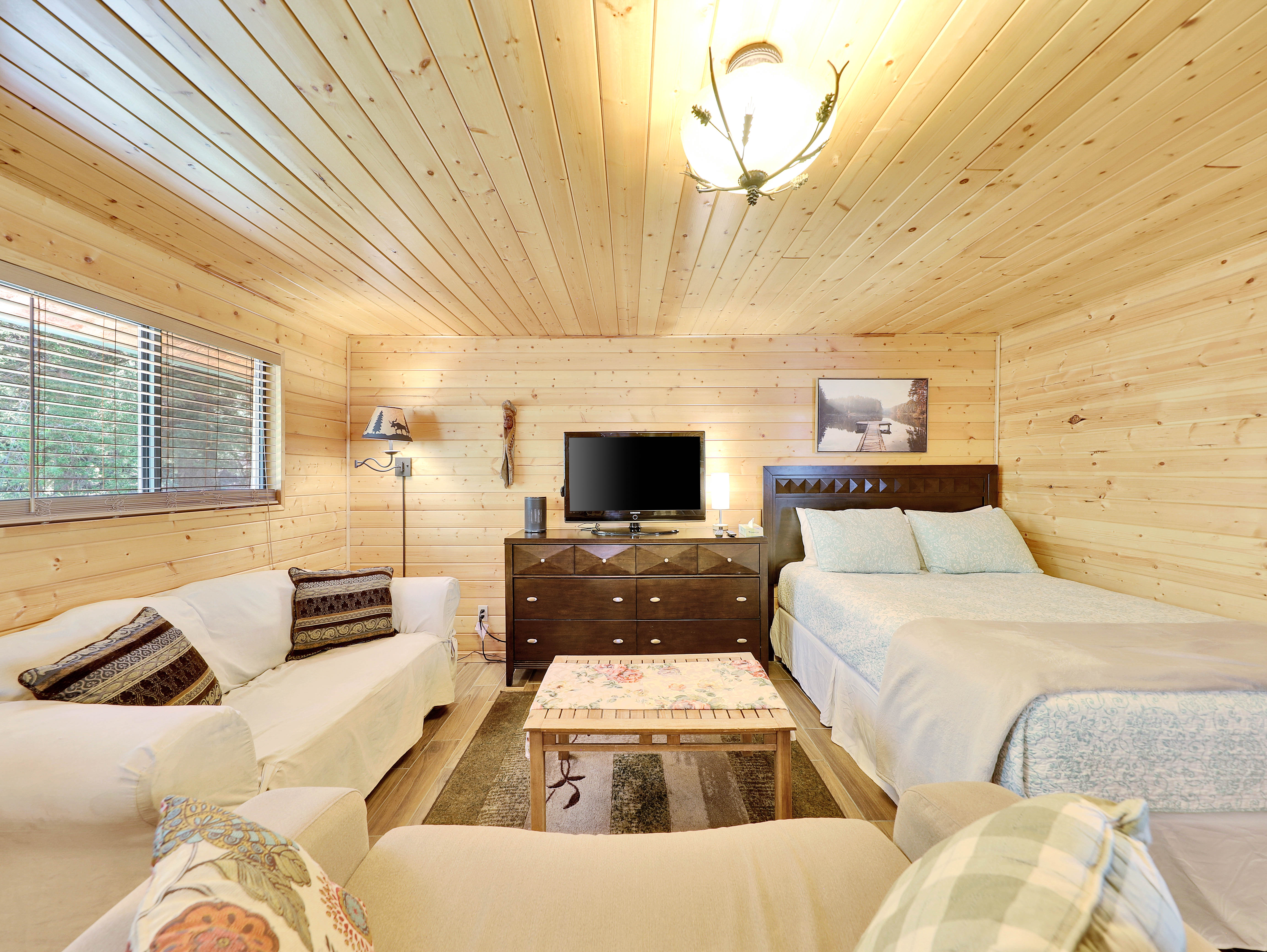 Welcome to your tranquil retreat nestled by the serene waters of Panguitch Lake. This charming studio cabin offers the perfect getaway for couples or small families, boasting a comfortable queen bed and a convenient pullout sofa, accommodating up to 4 guests.