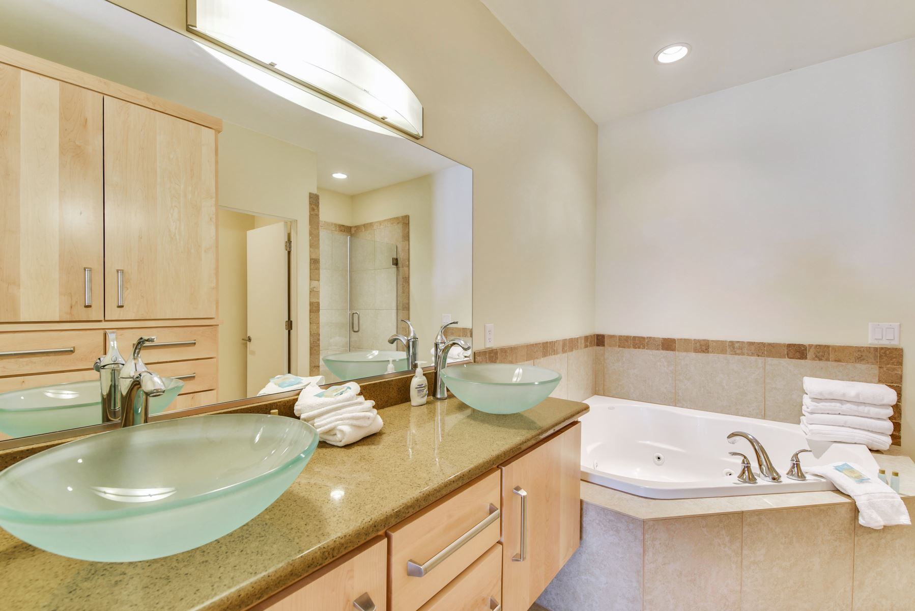 6. Amenities Galore: We've thought of everything to make your stay special. Enjoy complimentary Wi-Fi, cable TV, a washer and dryer, Jetted oversized tub in master, Gas fireplace, garage, Smart TV's and gorgeous views for your convenience.