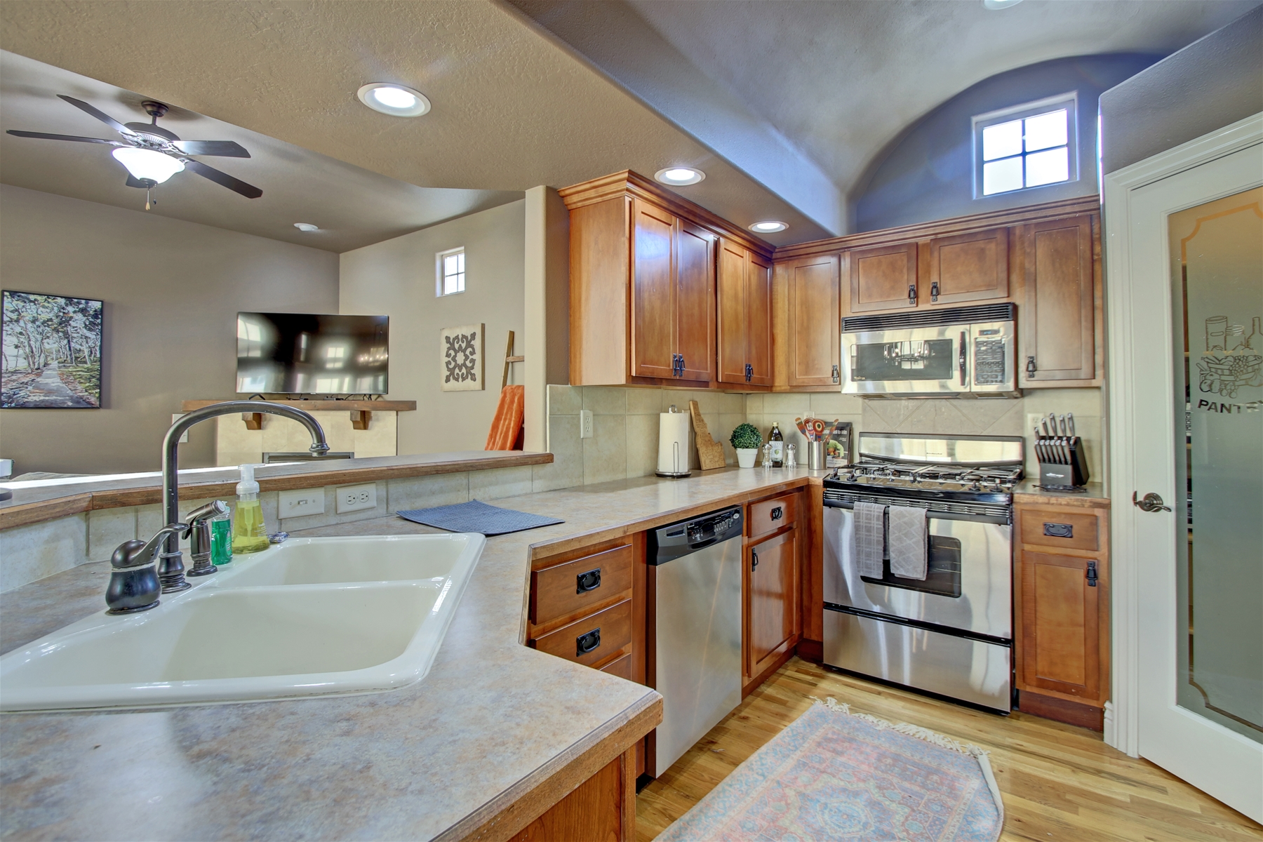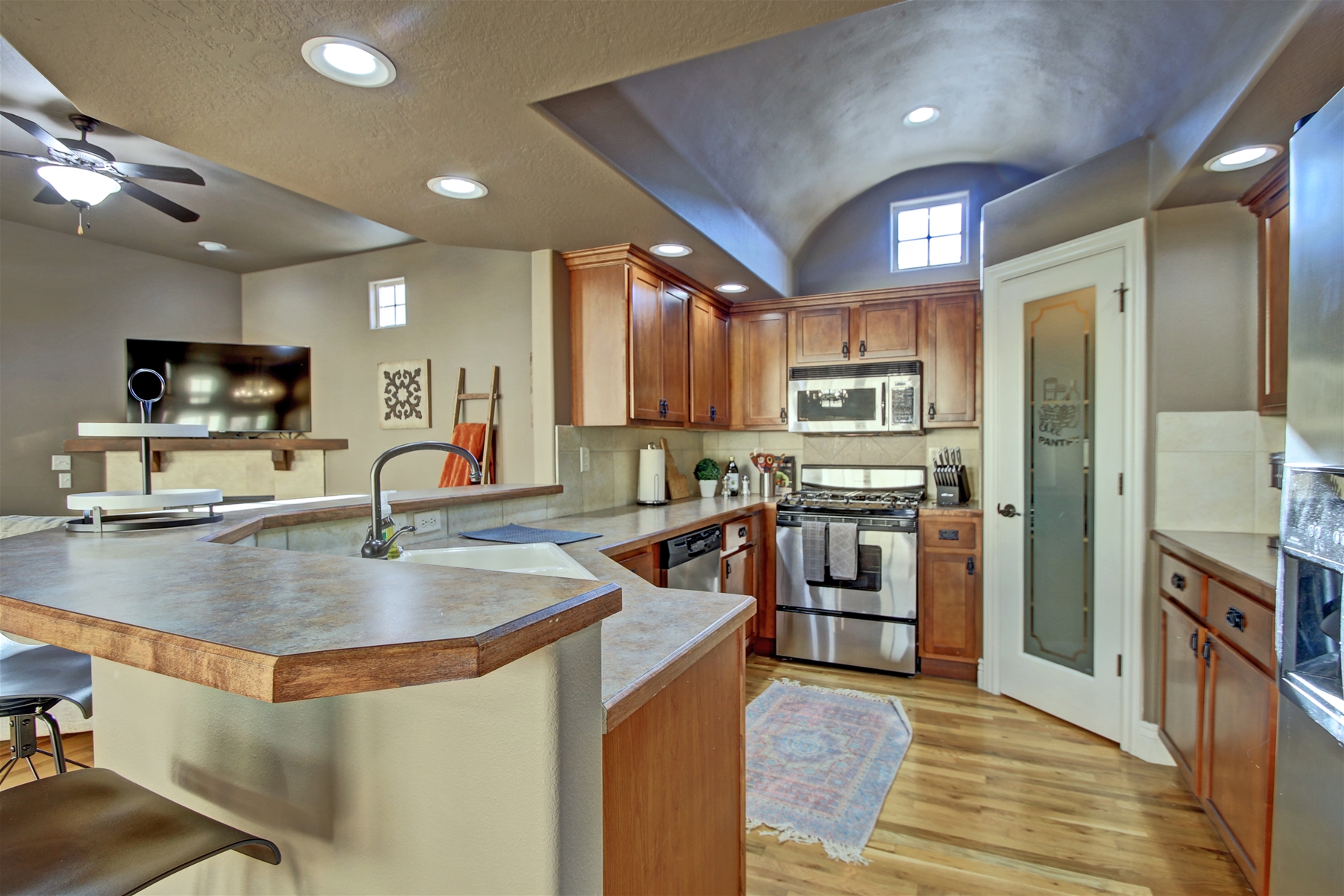 Gourmet Kitchen: Cook up a storm in the updated kitchen, equipped with stainless steel appliances and a large counter—perfect for meal prep or casual dining.