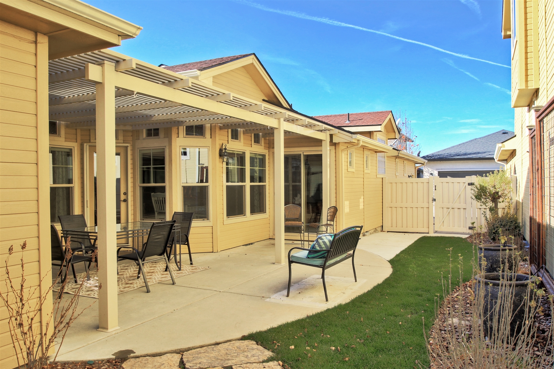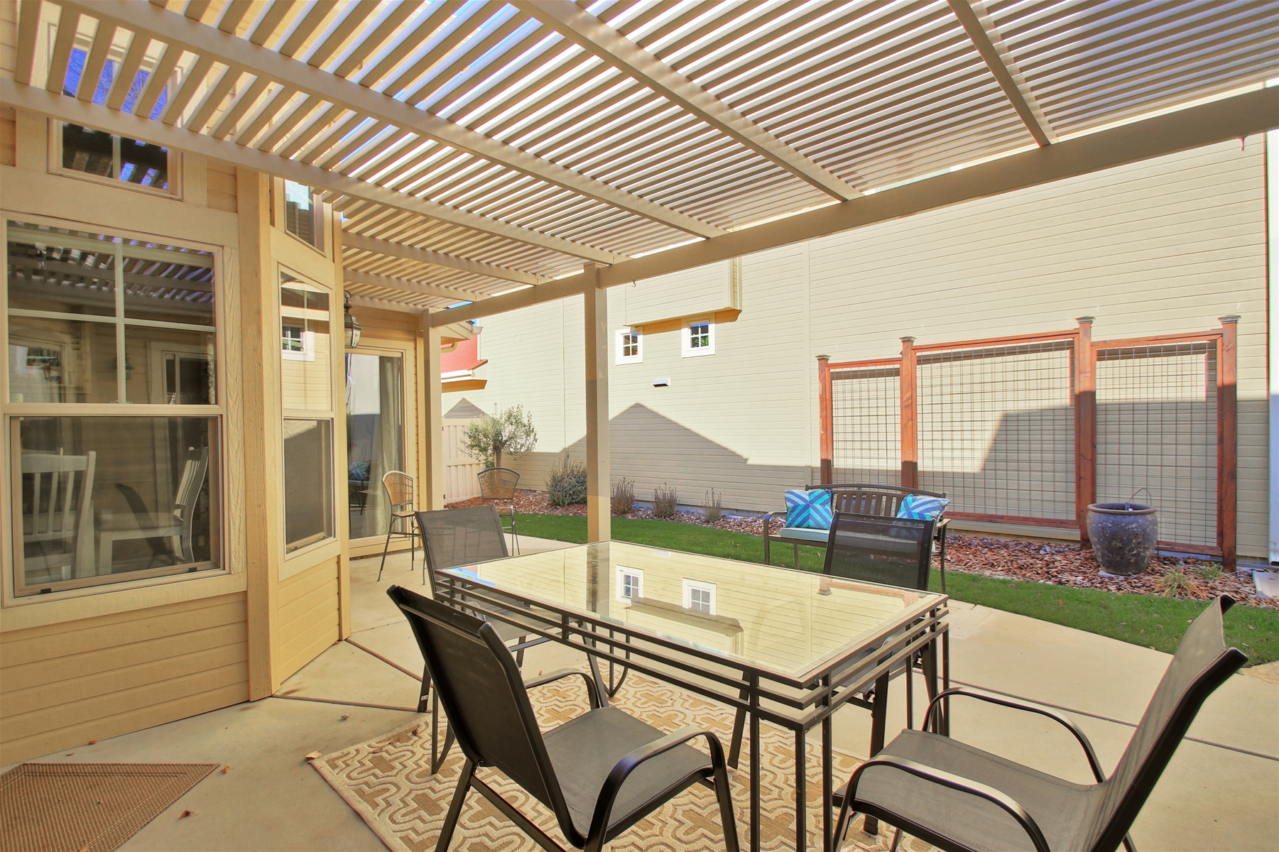 Indoor-Outdoor Living: Relax on the side patio, seamlessly blending indoor and outdoor spaces for your enjoyment.