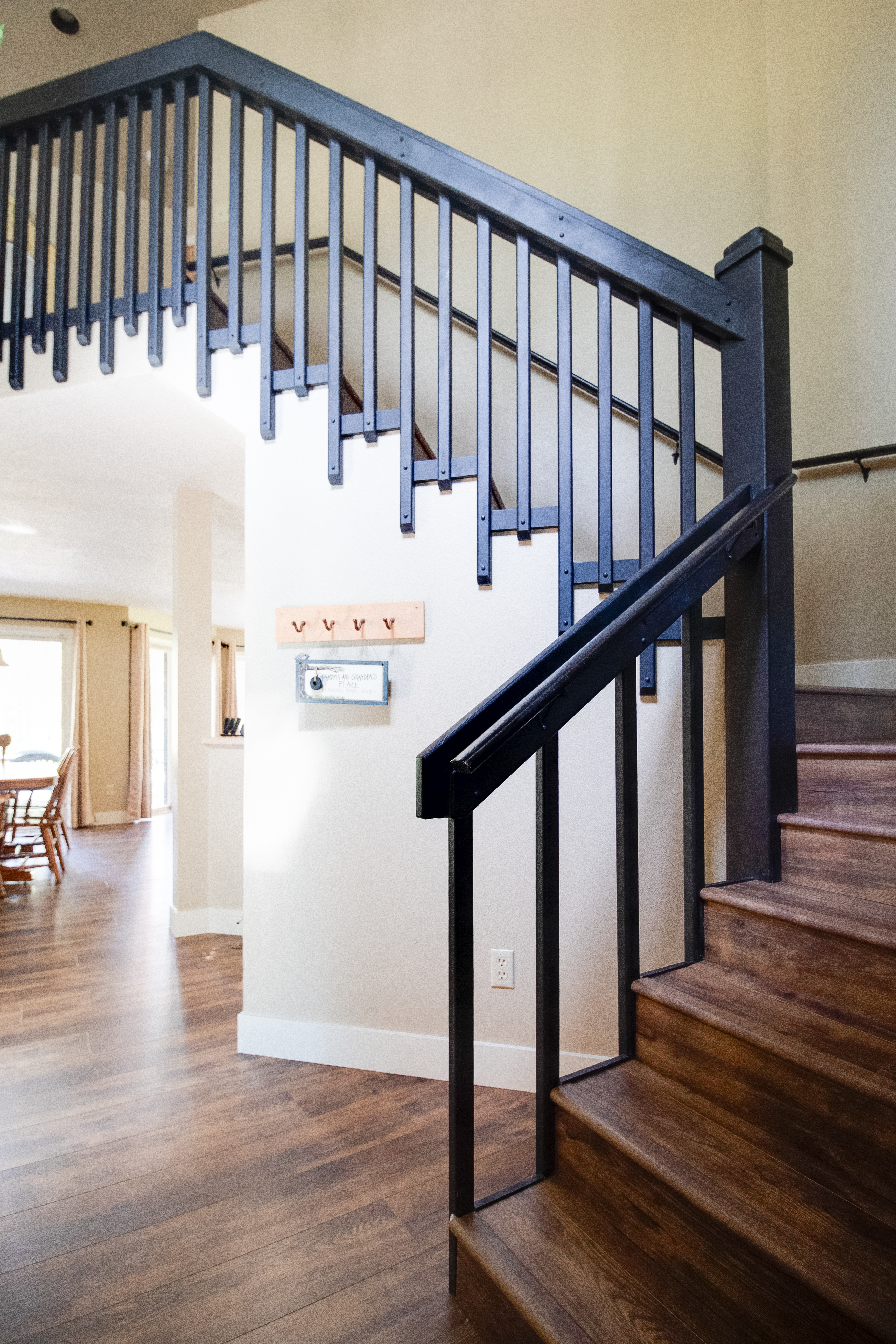 The main level features a fully equipped kitchen with bar seating that opens to the dining area—perfect for shared meals and game nights. Choose between two comfortable living spaces: