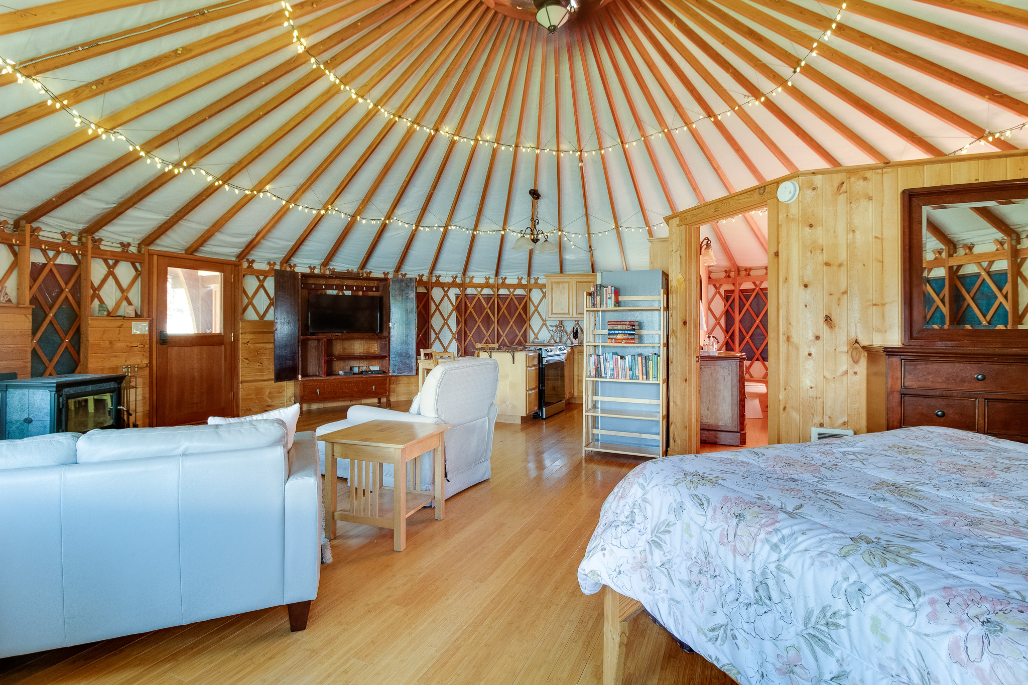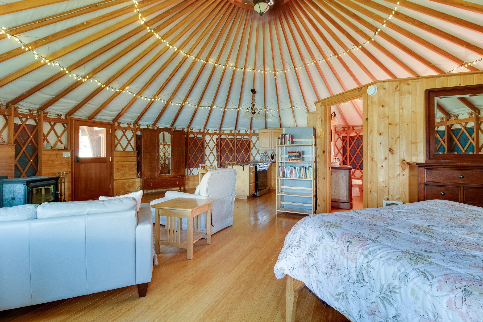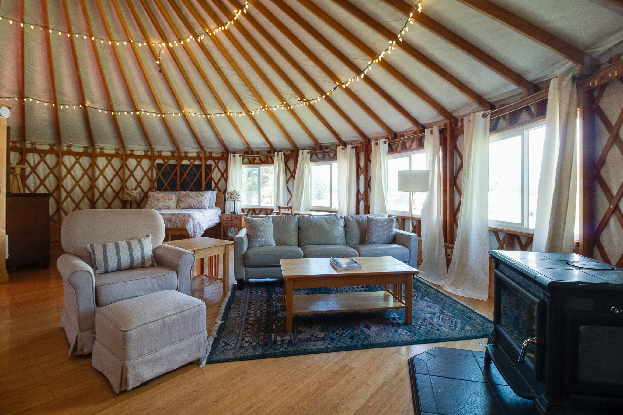 The kids will love the playground, and there's even a yurt on the property that offers a unique and cozy retreat. The yurt is equipped with its own wood-burning fireplace, as well as a soaking tub in the bathroom.