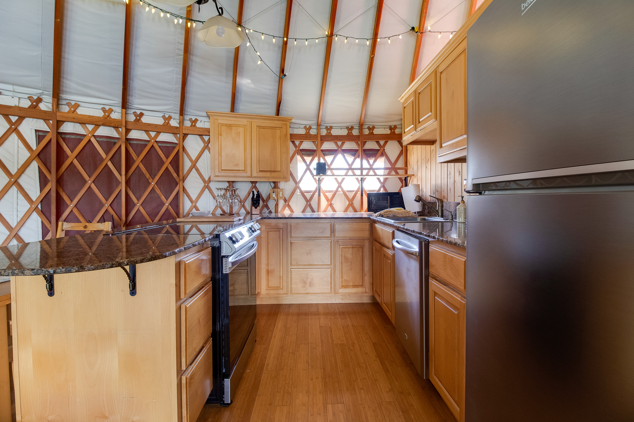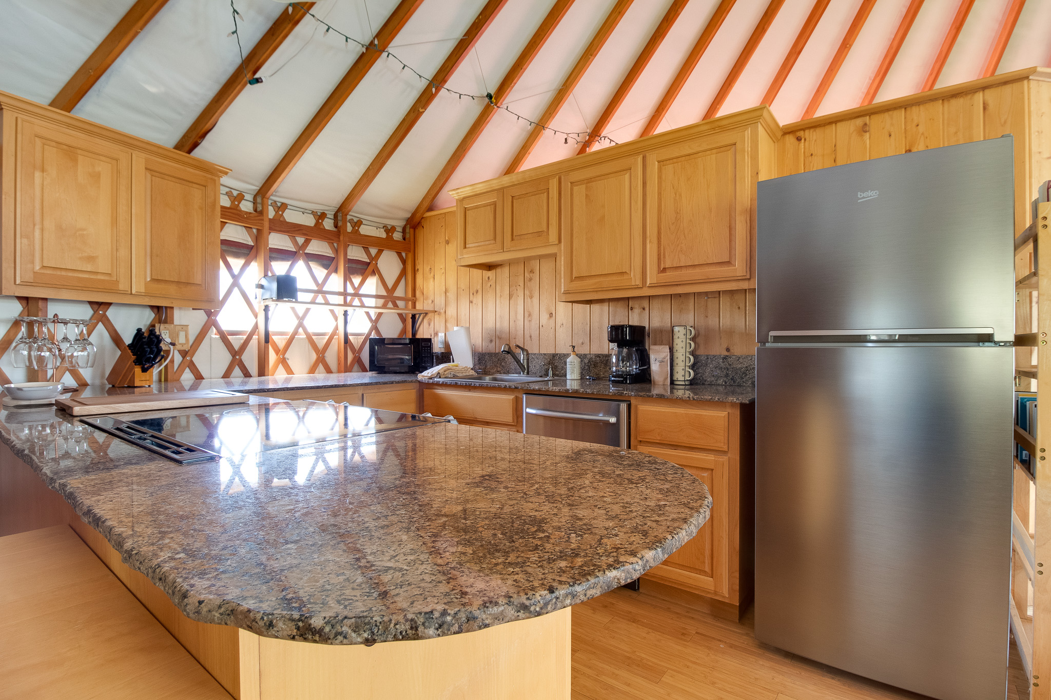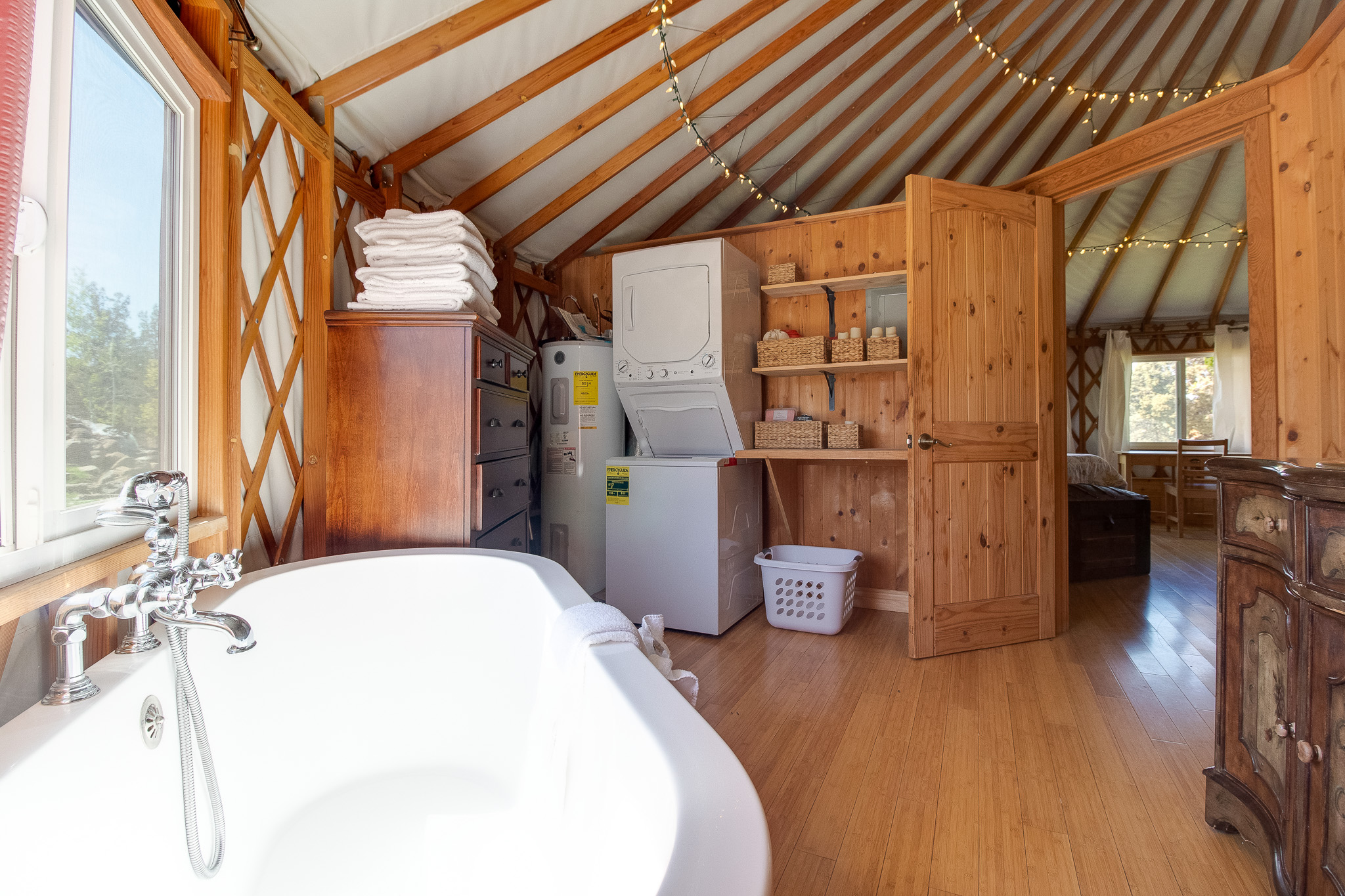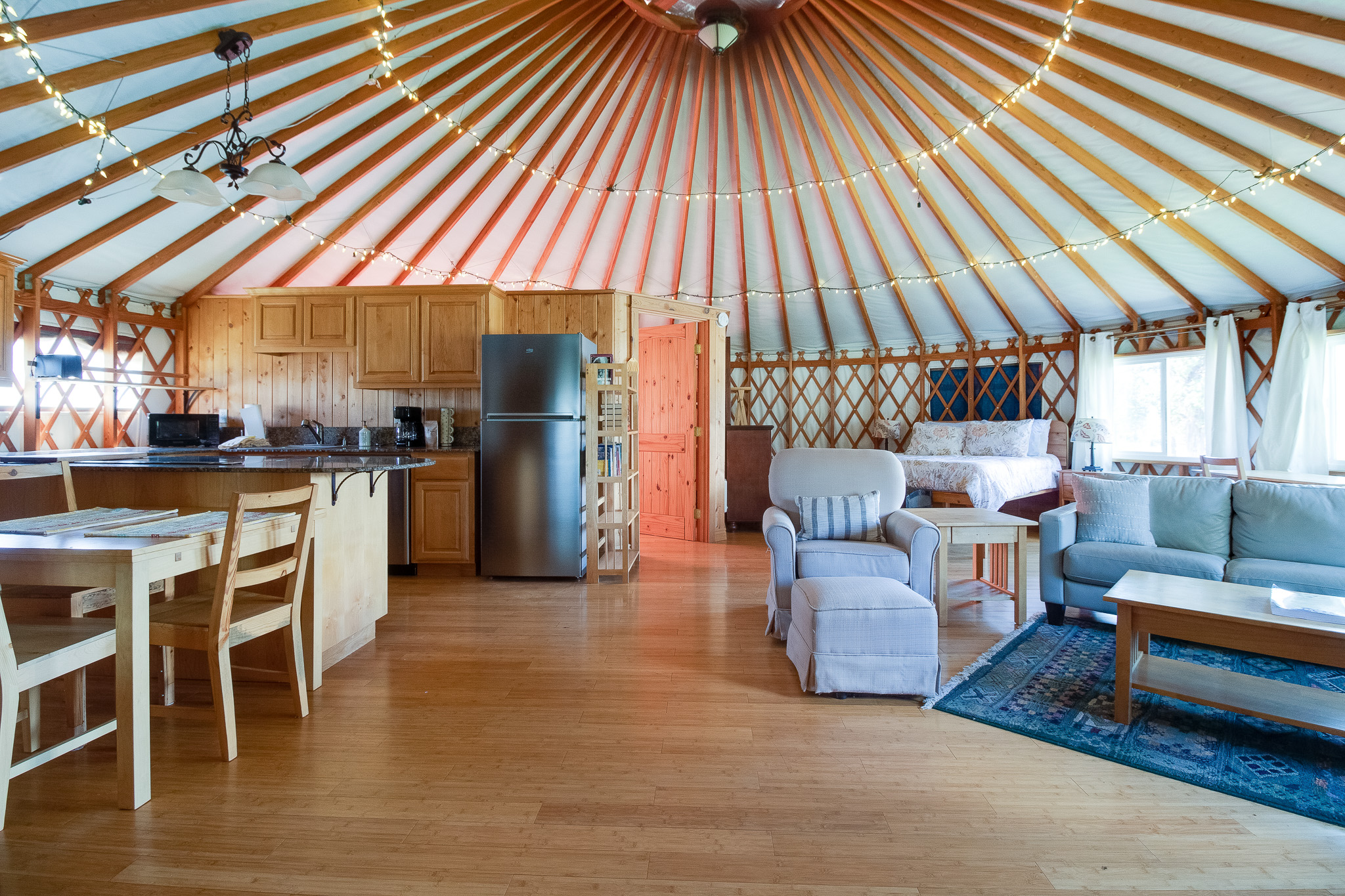 The kids will love the playground, and there's even a yurt on the property that offers a unique and cozy retreat. The yurt is equipped with its own wood-burning fireplace, as well as a soaking tub in the bathroom.