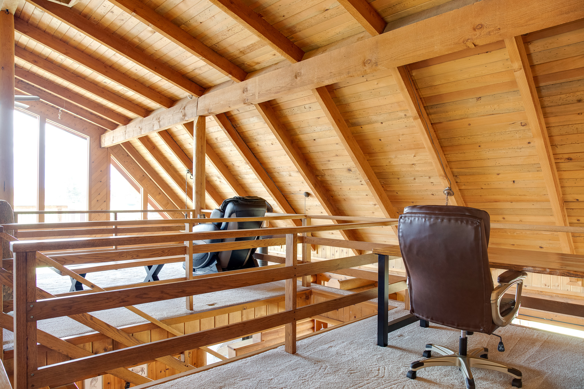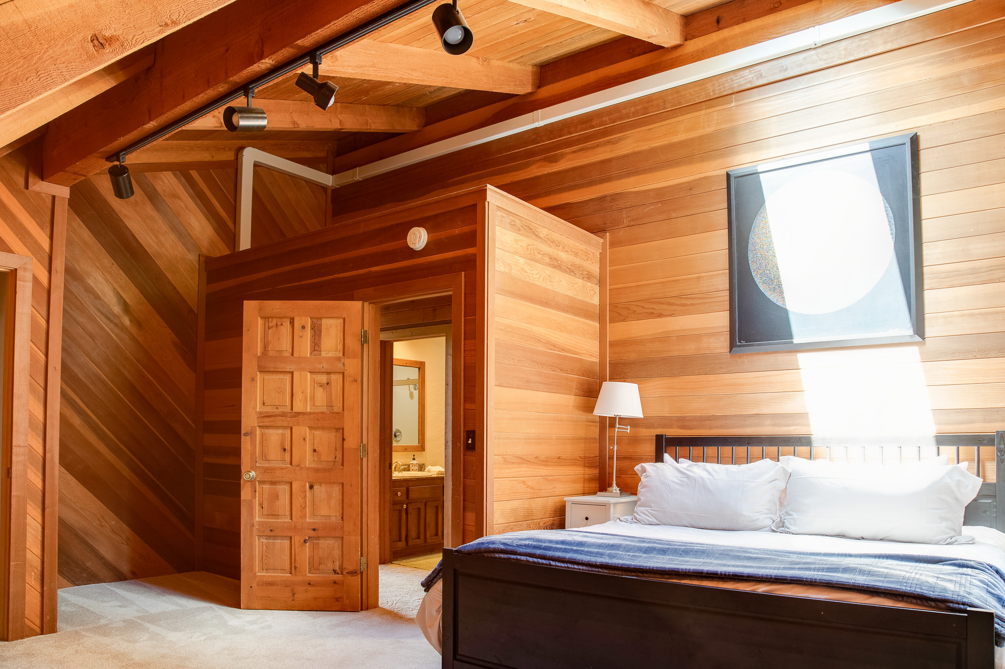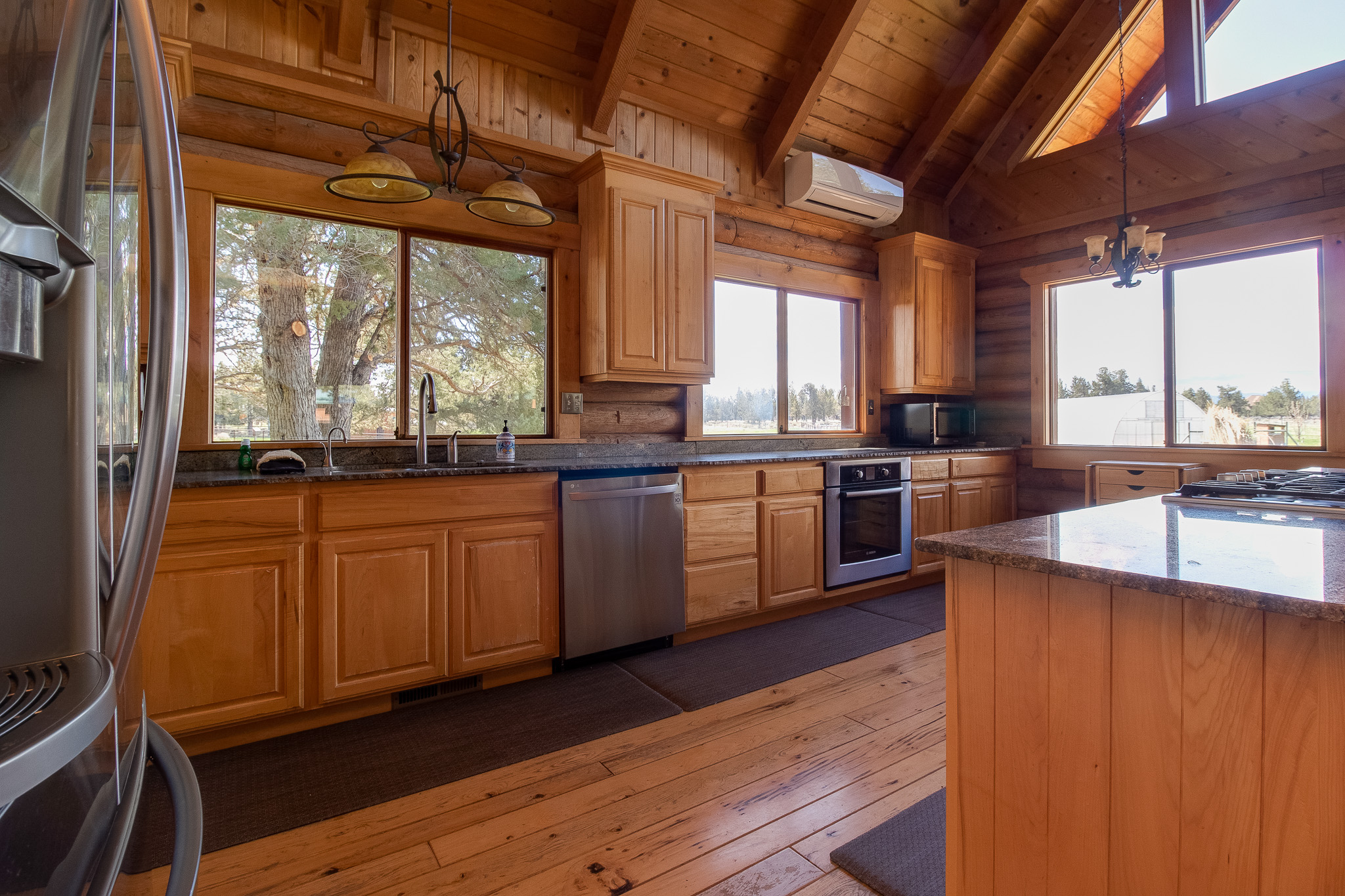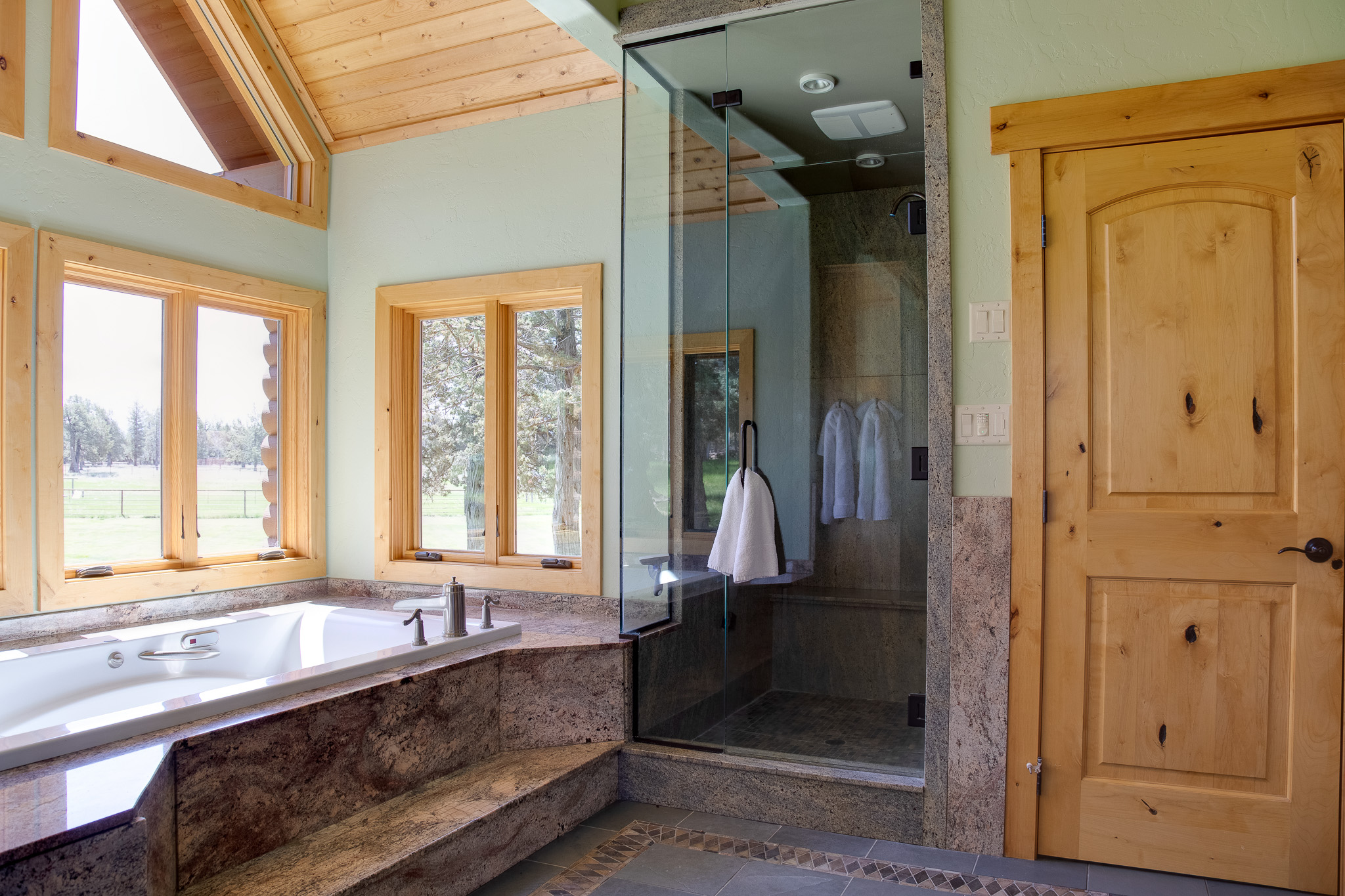 As you enter the main house, you'll be struck by the open and inviting atmosphere. The spacious living room features a cozy wood-burning fireplace, perfect for relaxing after a long day of outdoor activities. The master bedroom is equipped with a gas fireplace, providing a luxurious and romantic ambiance. The master bathroom boasts a walk-in shower and a soaking tub, allowing you to unwind and relax in total comfort.
