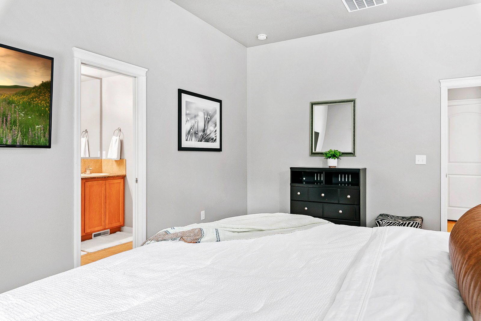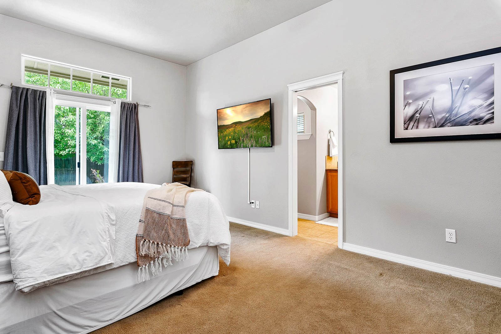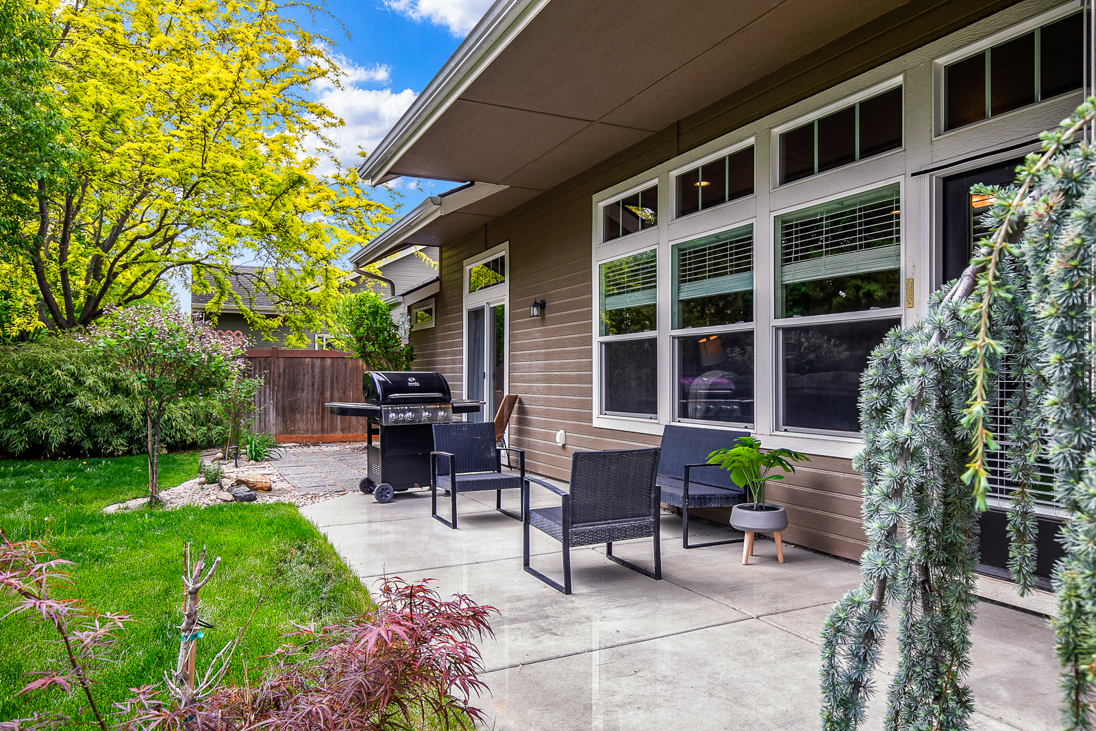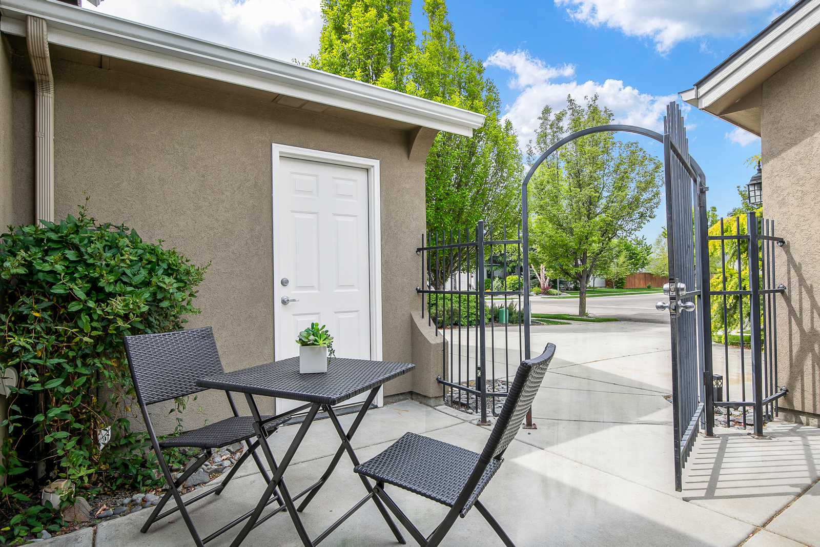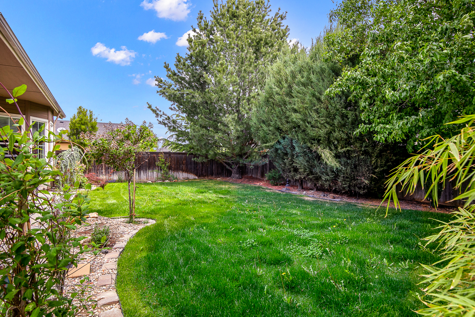 Looking for a single-story split-bedroom designed home in Meridian? You've found it! This home has plenty of room for a family and the backyard has a lot of room for kids to play! Inside, the main walkways are hardwood while the bedrooms and living room have carpeting. The kitchen has alder cabinets with earth-tone slab granite counters and stainless steel appliances. The stove and oven are gas and above is a built-in microwave. The spacious master bedroom has a sliding glass door leading out to the back patio. The bathroom has a double-sink vanity, and a step-in tiled shower. Crown molding throughout gives this home a stylish appearance. Outside, enjoy a gated front courtyard and meticulously maintained landscaping. Pets are allowed with a non refundable deposit for each animal. No smoking allowed anywhere inside the house or on the property. Ample parking on the driveway and in the garage. Short or long-term rental. The rental rate is dependant upon the length of stay.