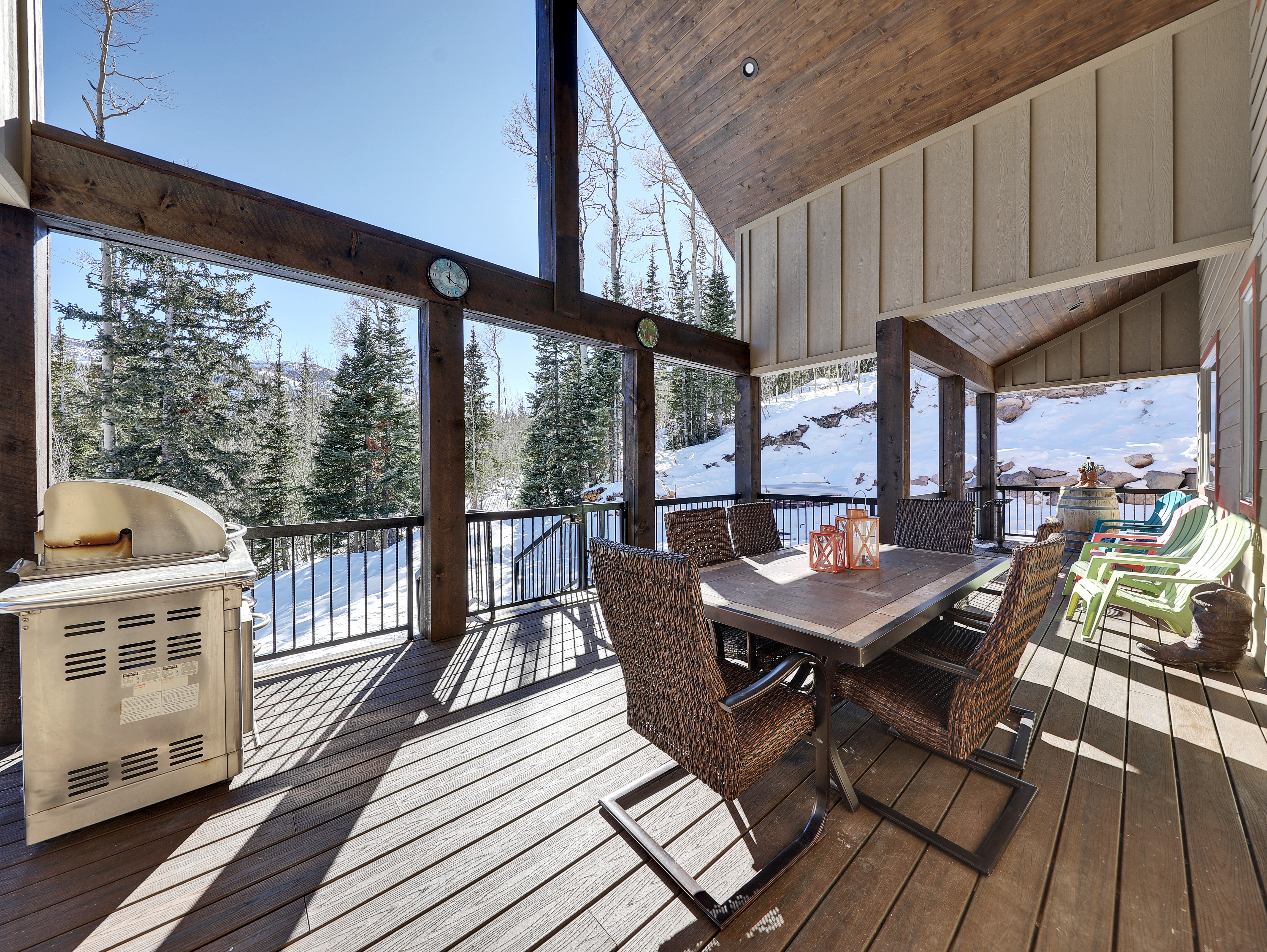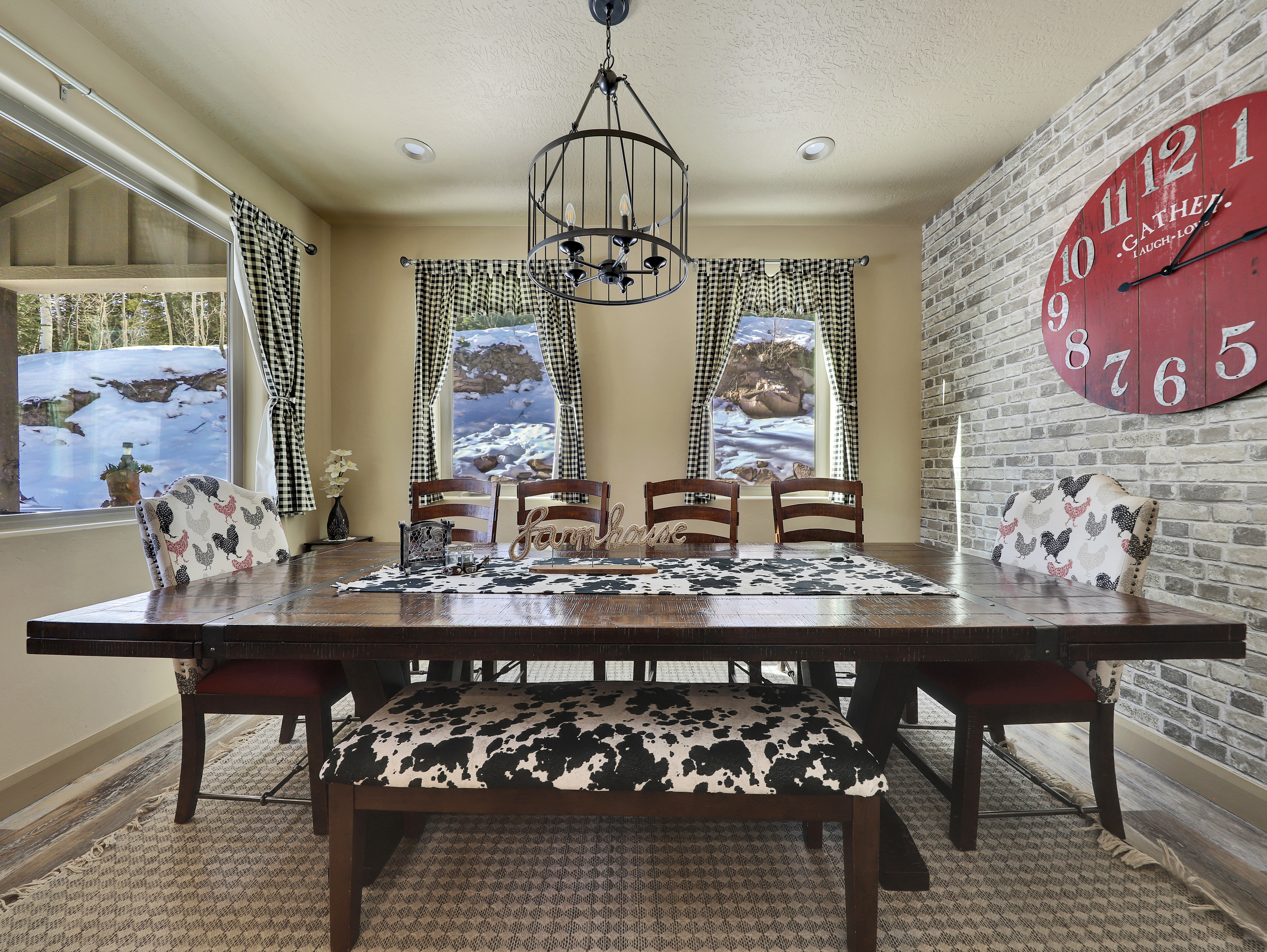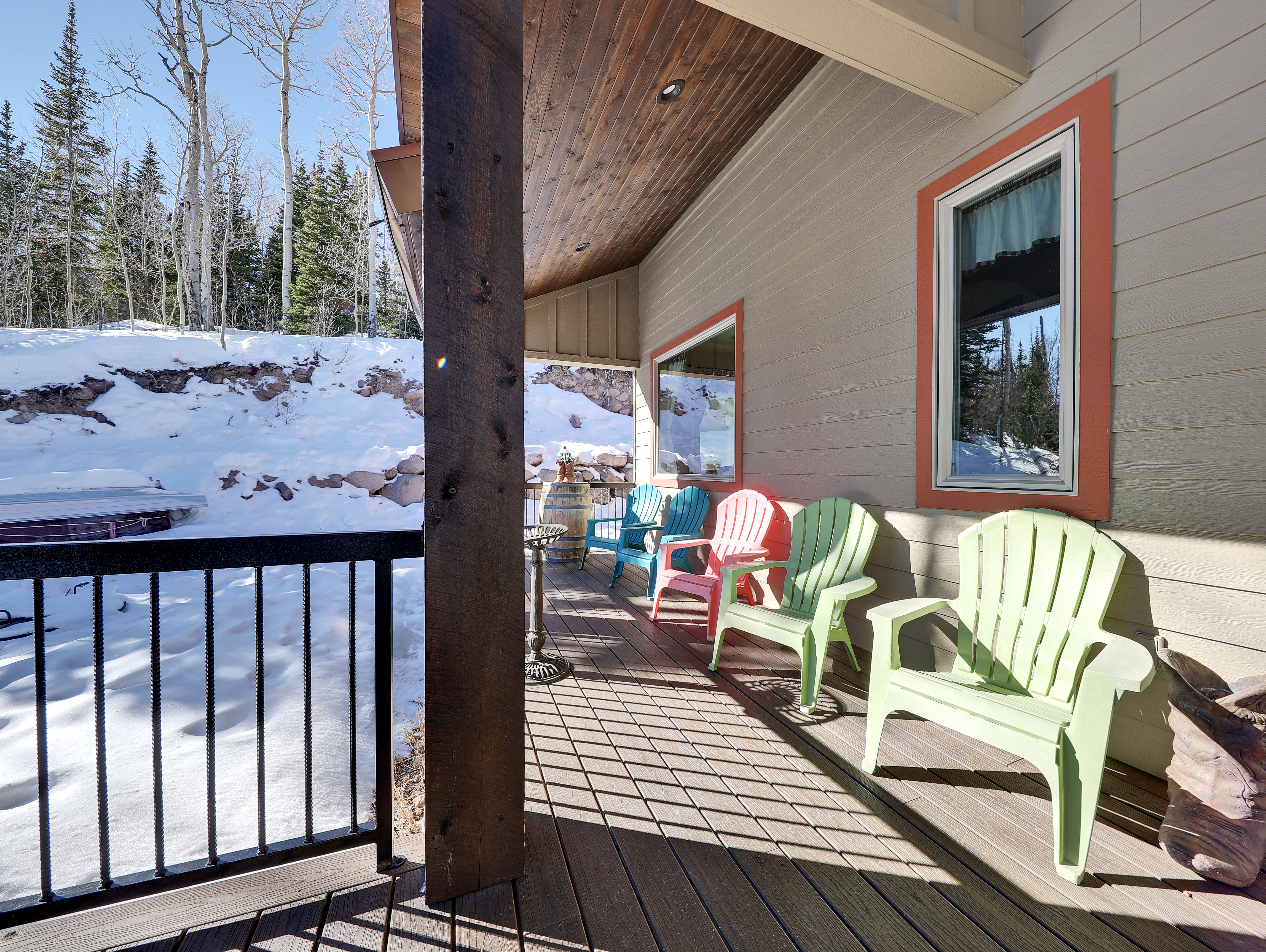 The fully equipped kitchen features modern appliances and a large dining area, perfect for group meals. Expansive living spaces provide cozy seating, ideal for movie nights or board games by the fire. The property includes high-speed Wi-Fi and streaming-enabled TVs for entertainment and private deck and patio areas with breathtaking views of Brian Head’s serene landscape.