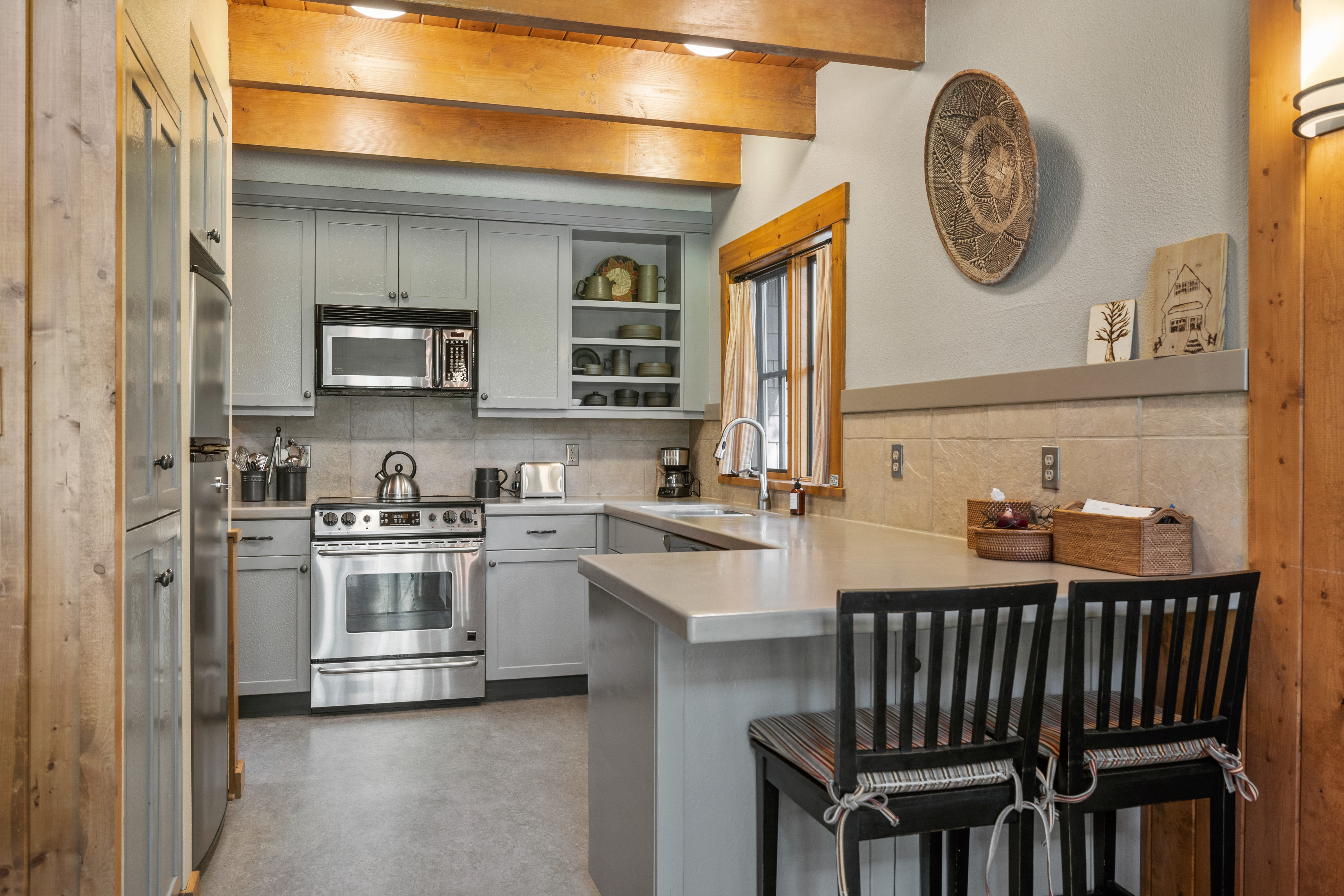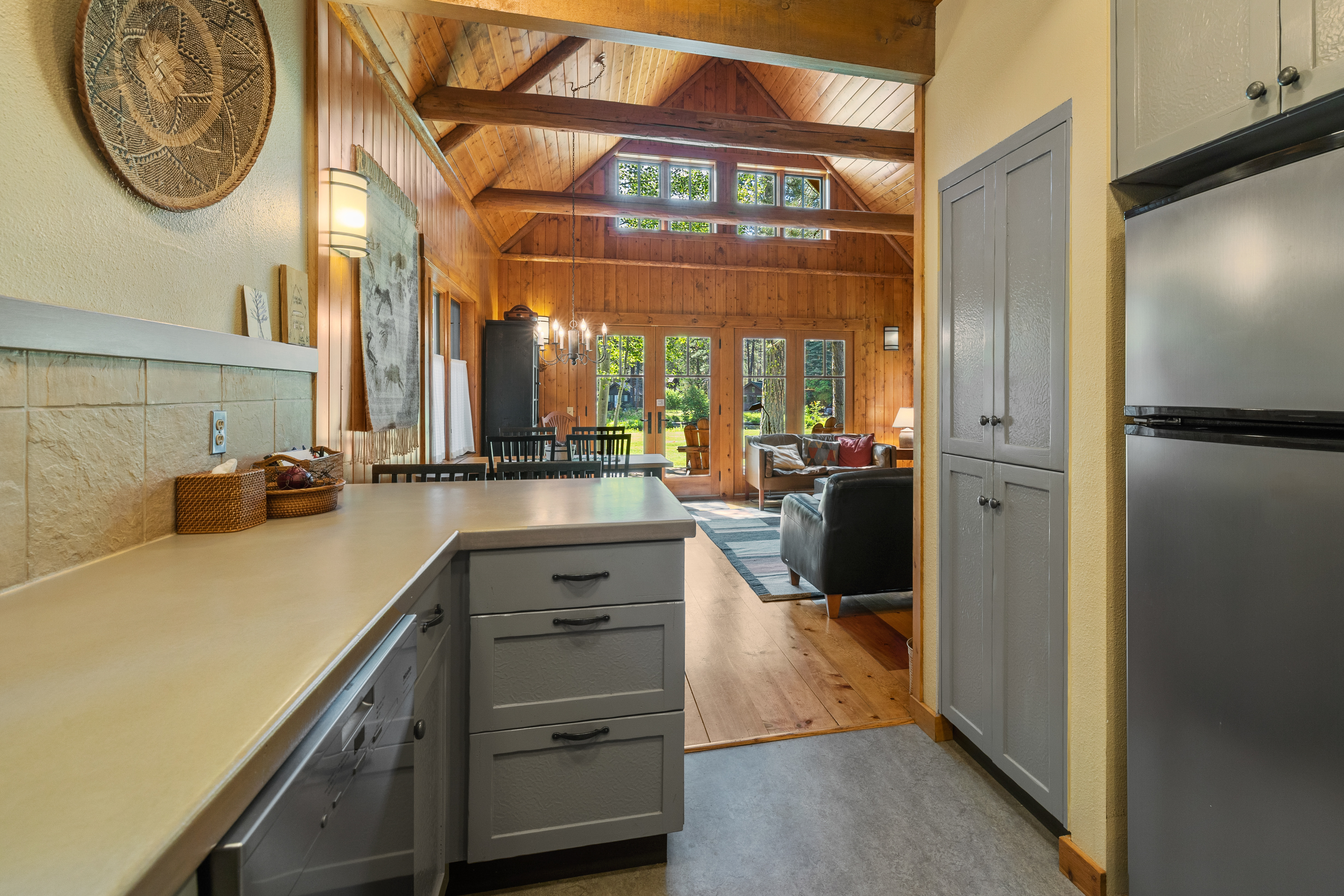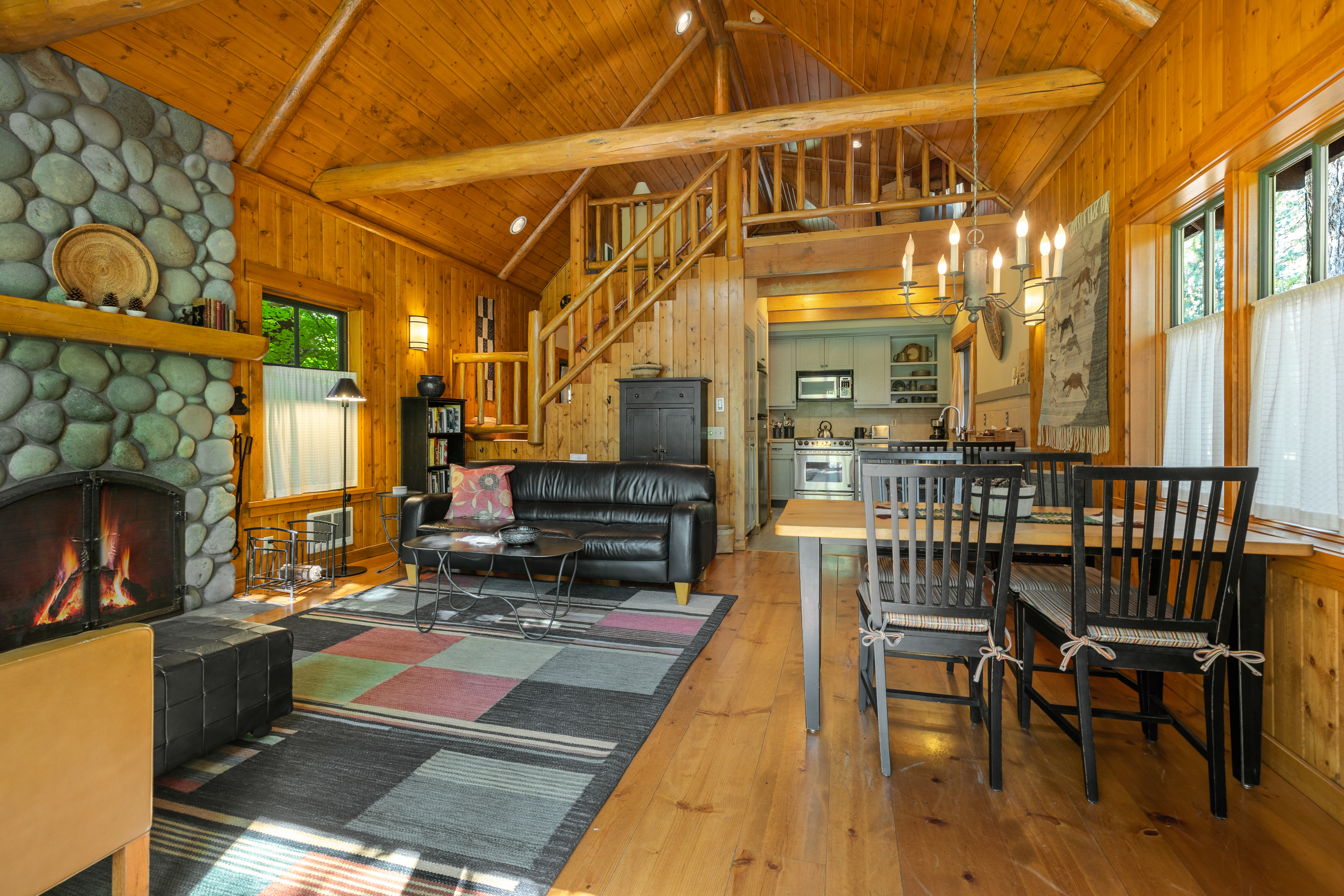 With views of the Metolius River from the living room, dining area, and loft, cabin six offers an unmatched sense of tranquility and relaxation only nature can provide.