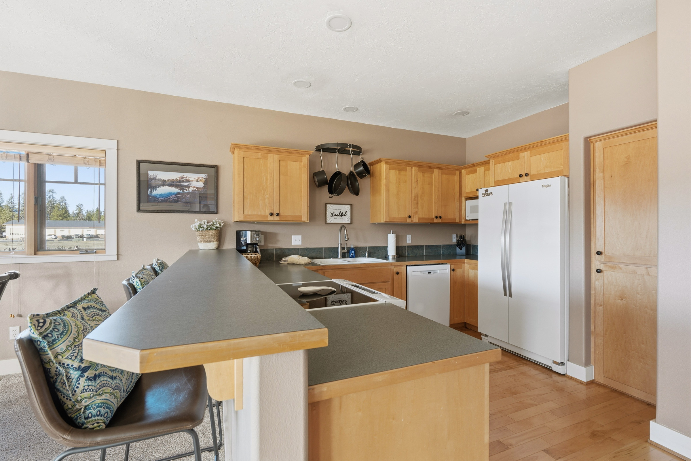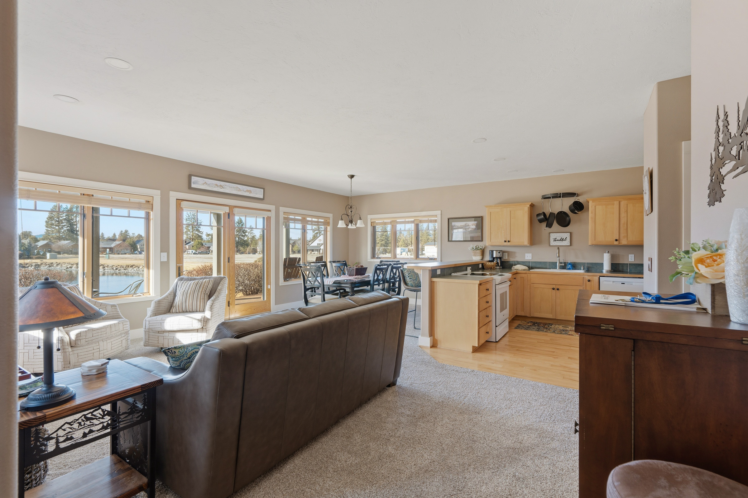 You'll feel right at home from the moment you walk in at the open-air feel of the home as natural light encompasses the open living and dining area from just about every angle of the room. Wind down after a day out in our cozy living space in front of our gas fireplace or enjoy the beautiful Central Oregon Sunsets from our patio.