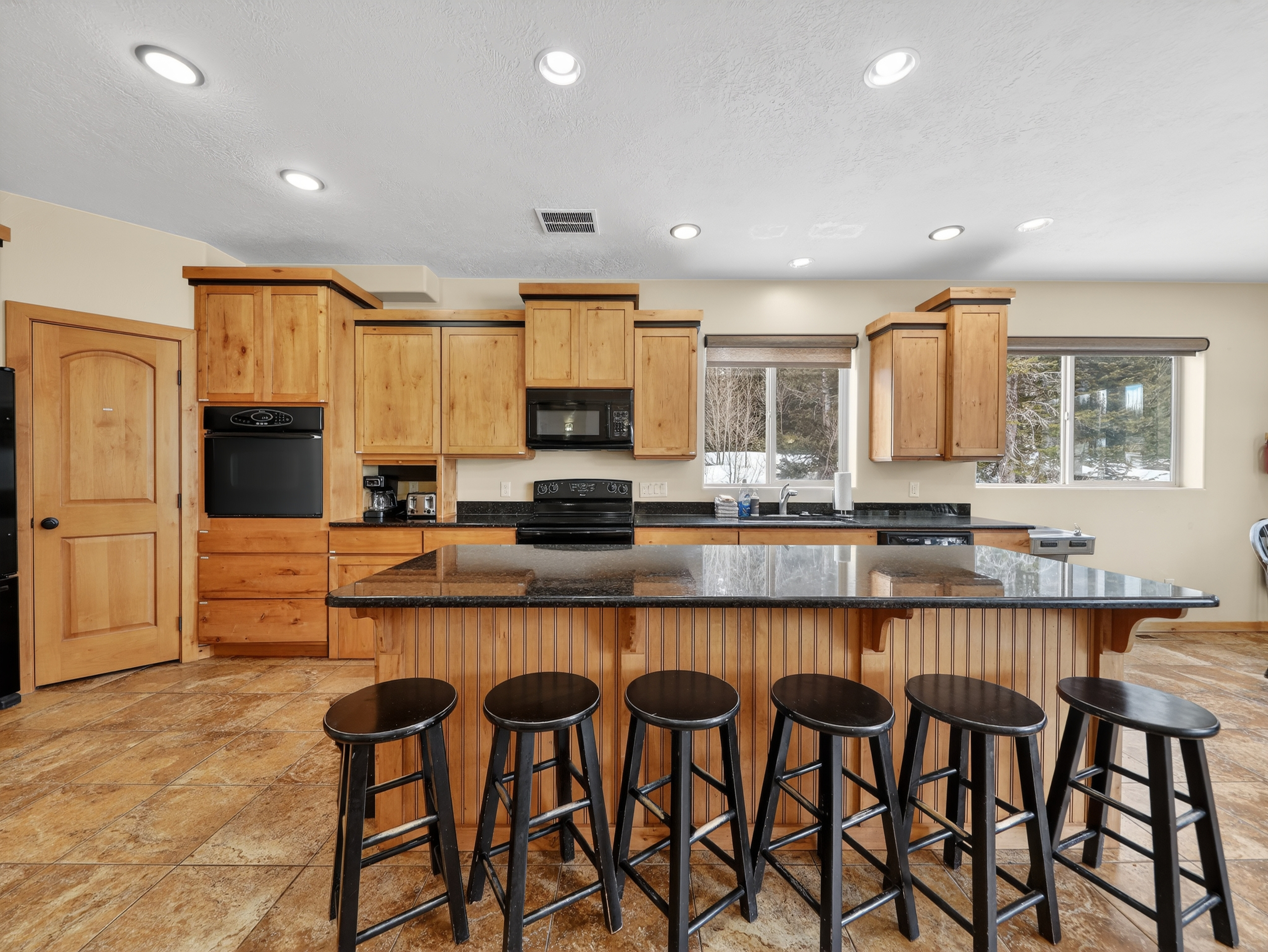 Fully equipped kitchen with double ovens, plenty of cookware, and seating for big group meals