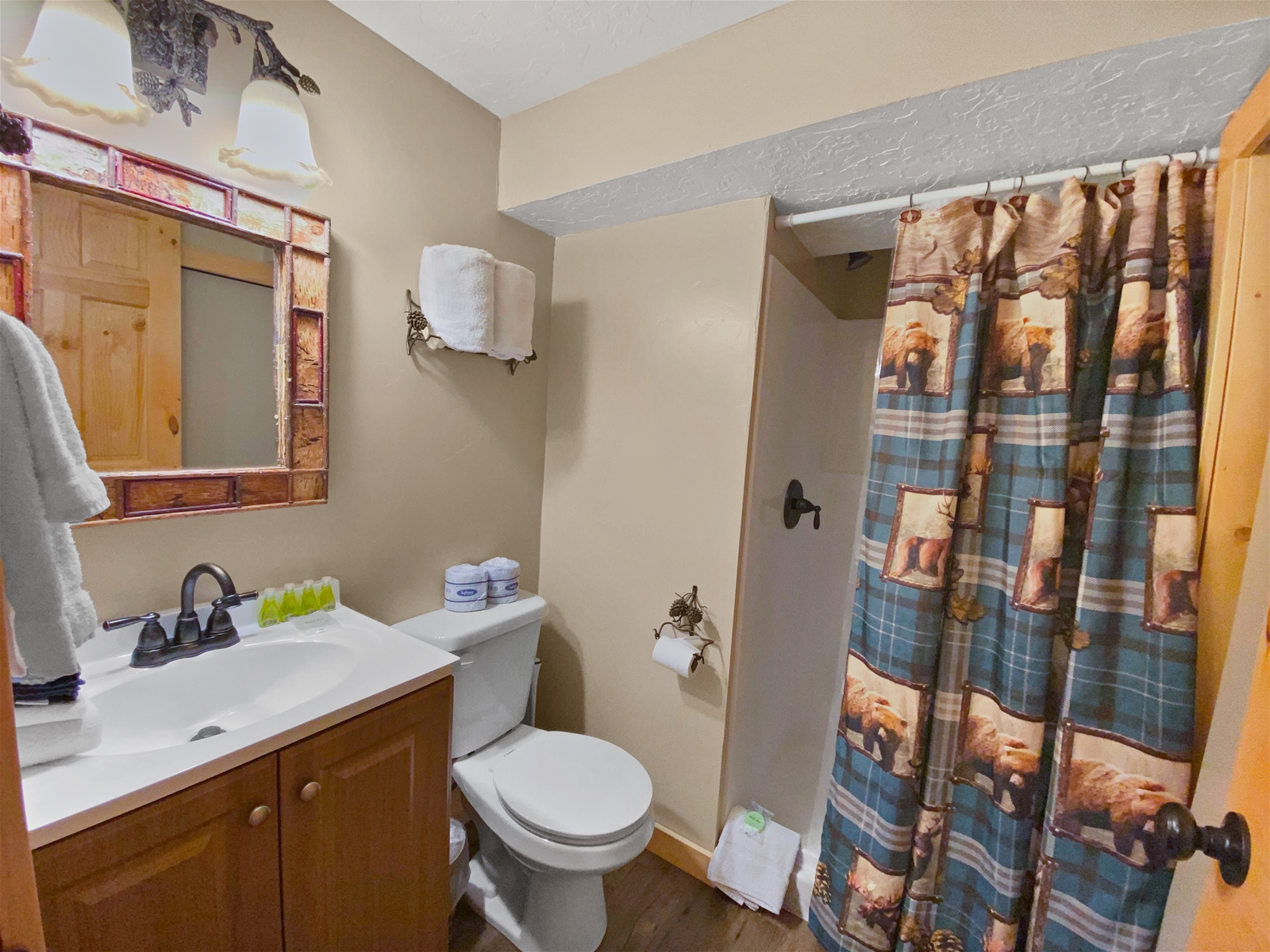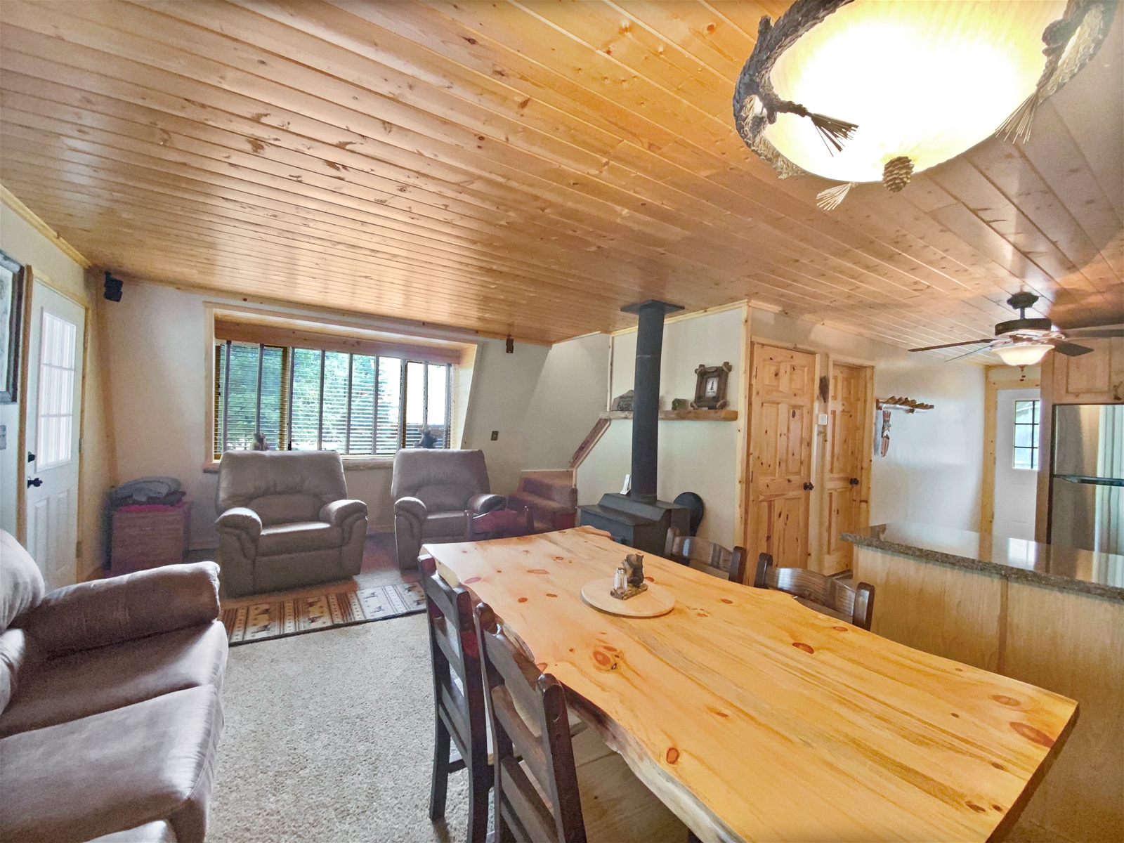 After a full day outdoors, relax by the fire or unwind on the deck while taking in peaceful forest views and colorful mountain sunsets. The cabin is well equipped with sleeping essentials, blankets, and pillows, making it a comfortable choice for larger groups and longer stays.