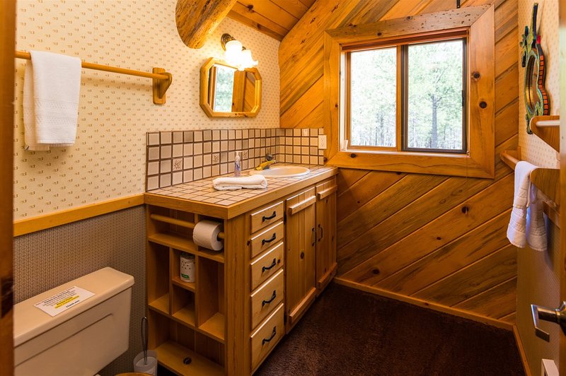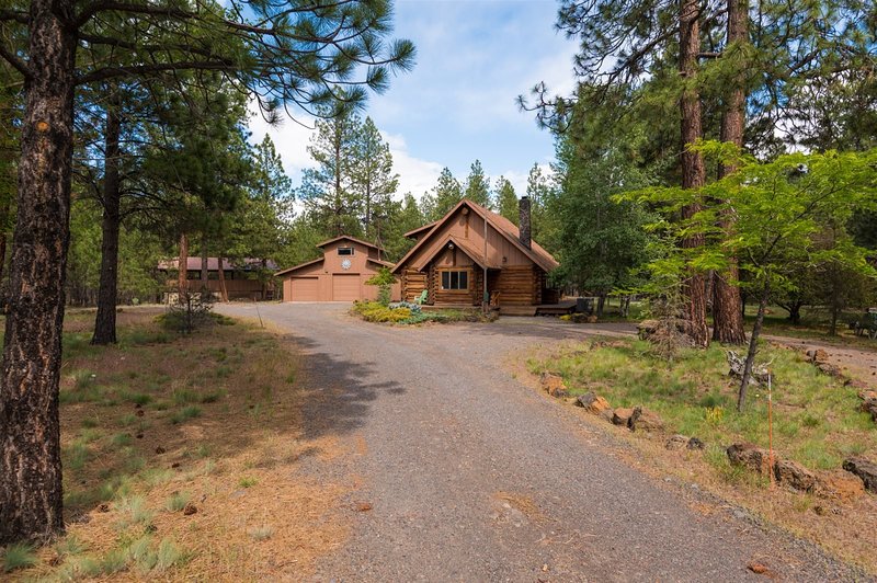 Sisters Dream Inn vacation rental is the quintessential retreat for your Central Oregon vacation. This beautiful, charming and authentic 2-story, 2 bedroom (one is in the upstairs loft) and 1.5 bath pine log cabin is situated on a two acre parcel of pine forest land in a very quiet neighborhood set into the Deschutes National Forest only a couple of miles west of the historic town of Sisters.