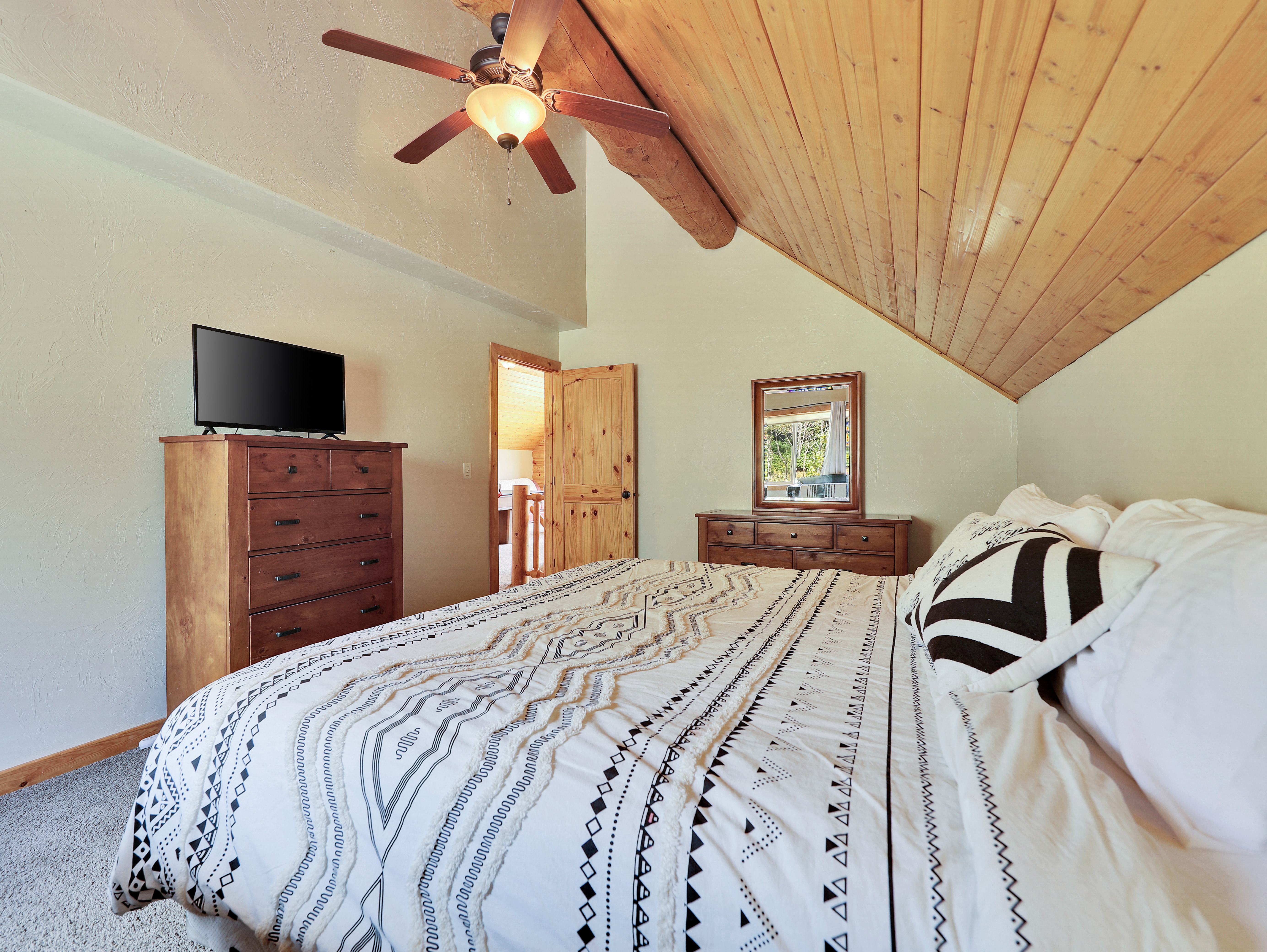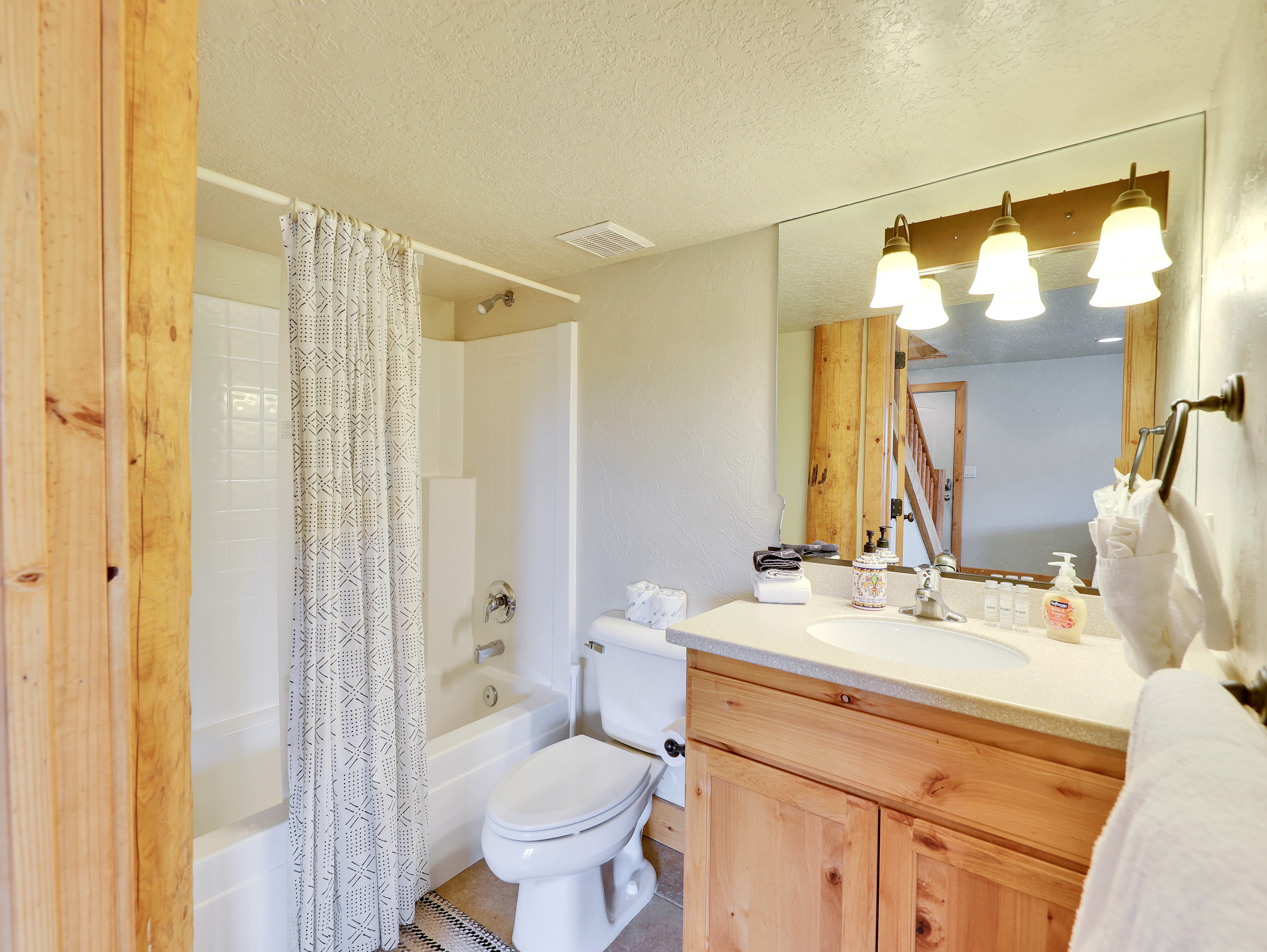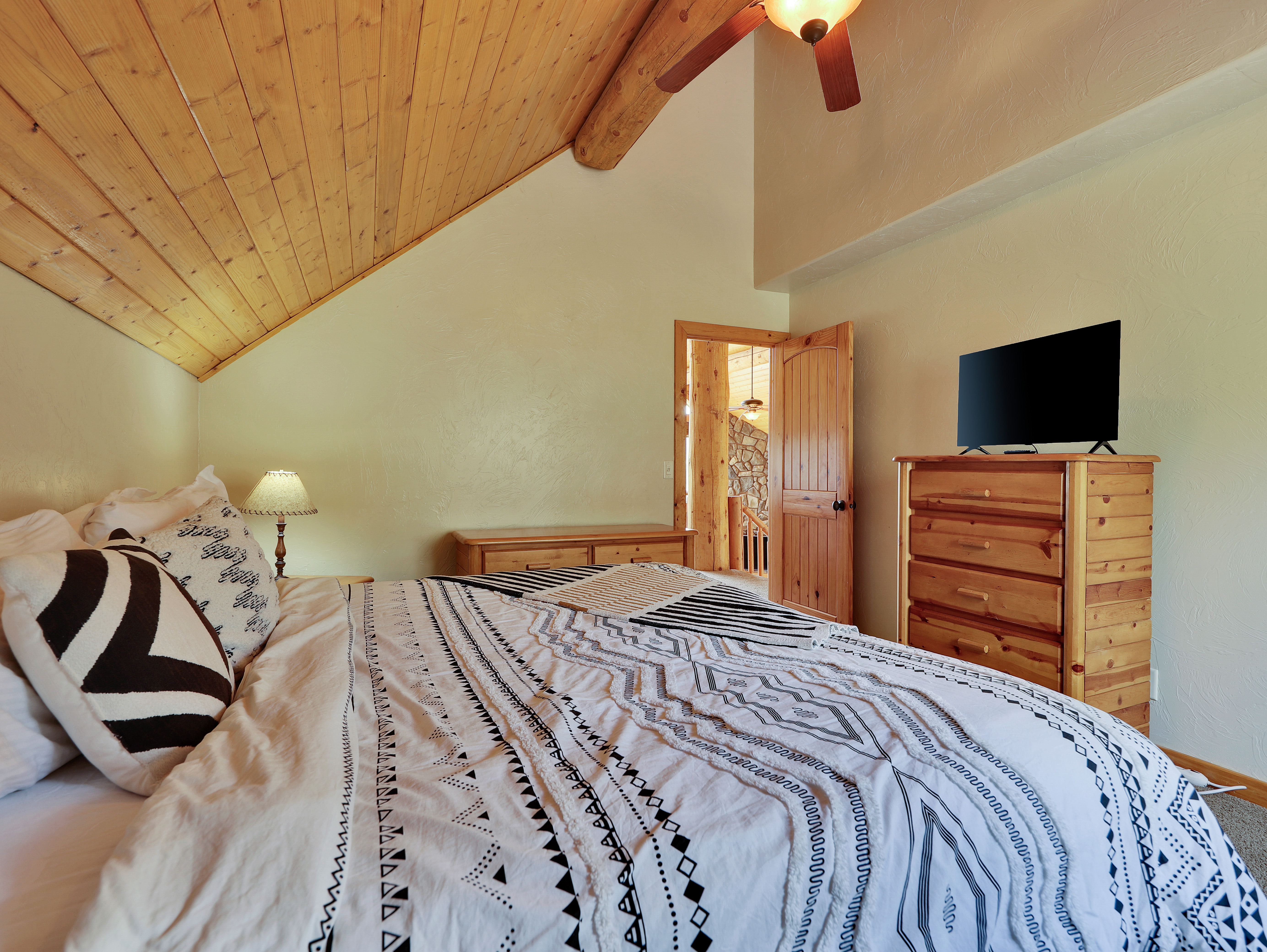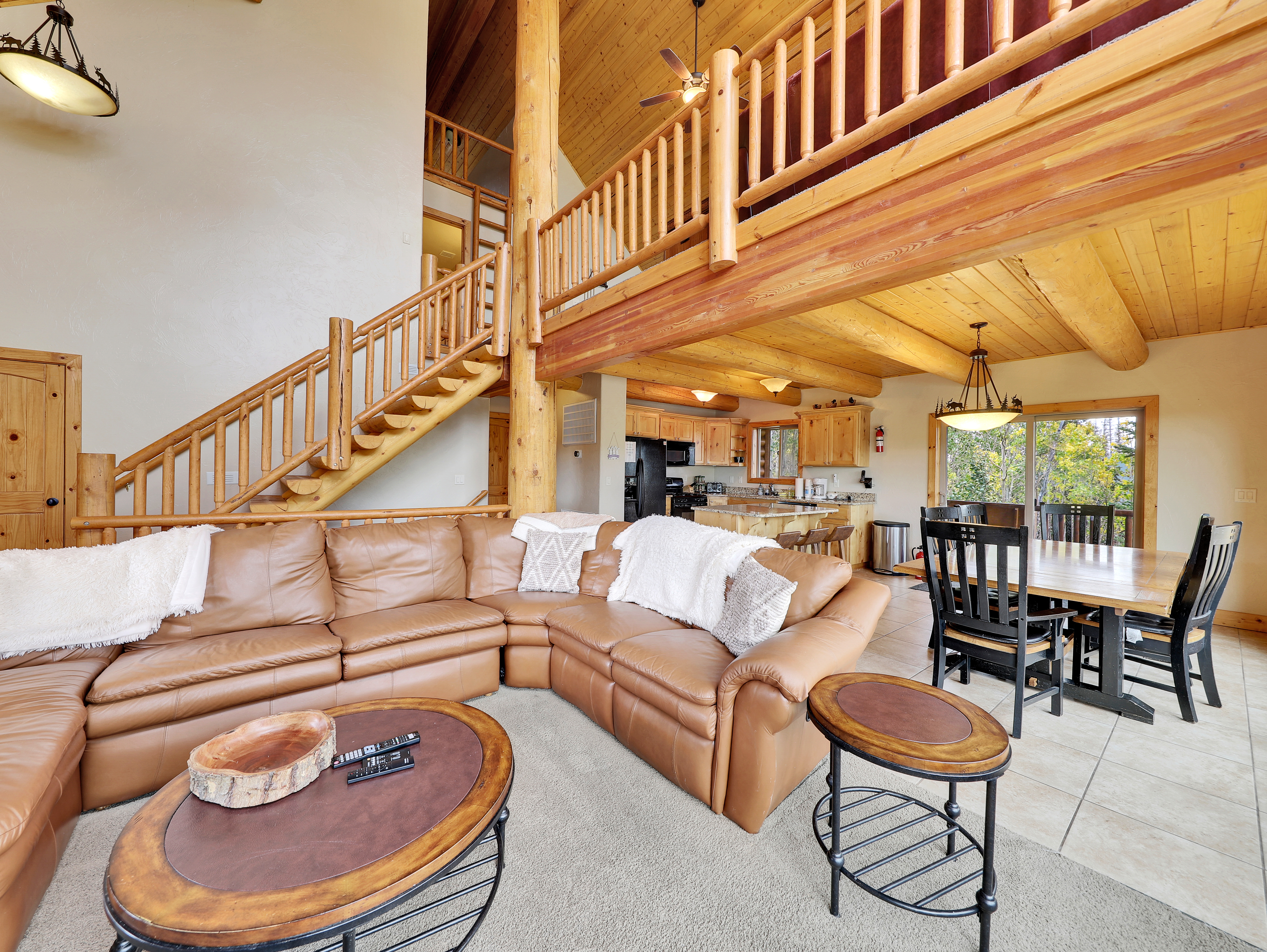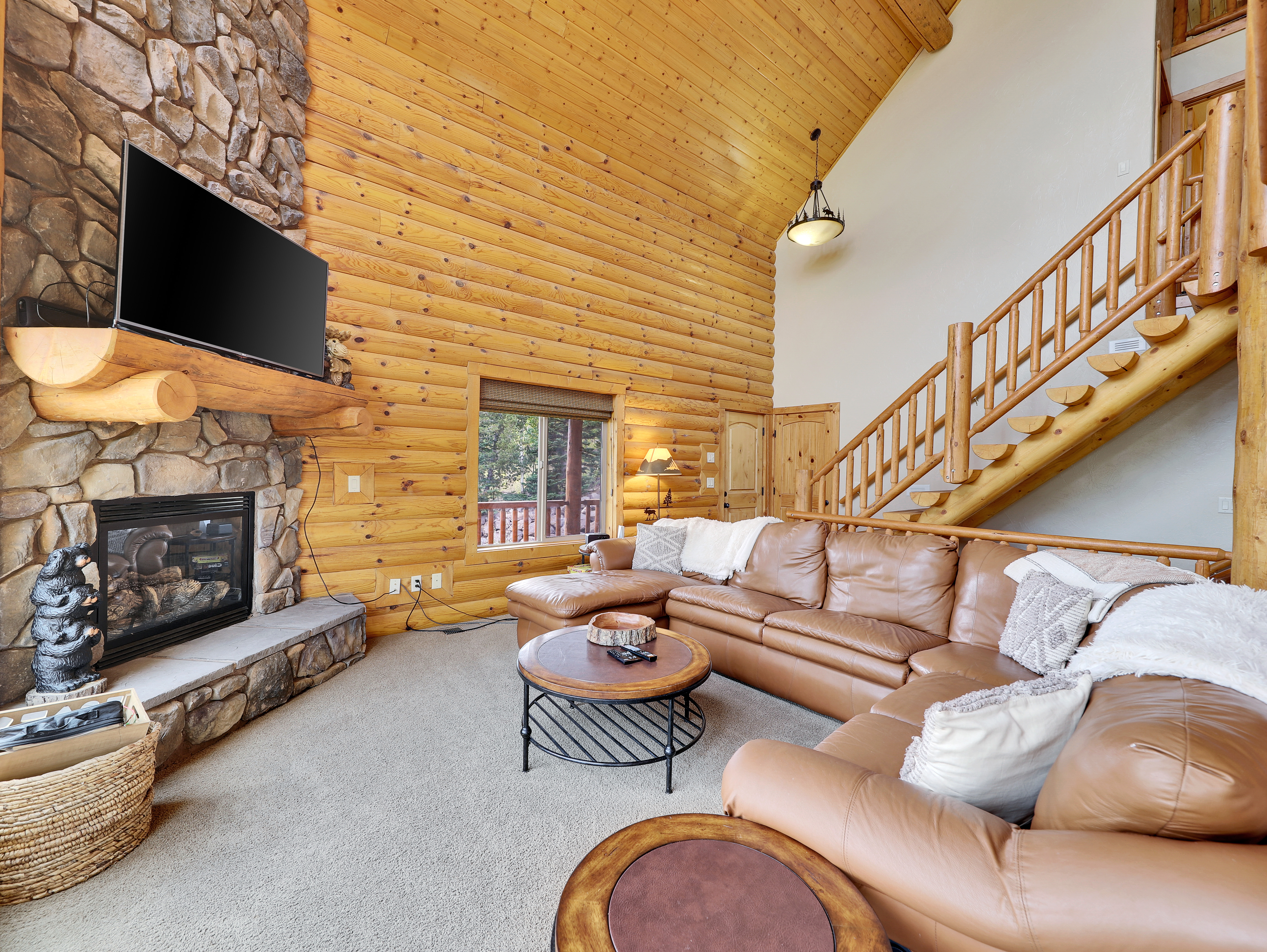 Enjoy stunning ski slope views and plenty of space in this 3-level, 4-bedroom, 3.5-bath retreat. Perfect for families and groups, the cabin offers cozy living areas, game spaces, and a wraparound deck to take in the mountain scenery.