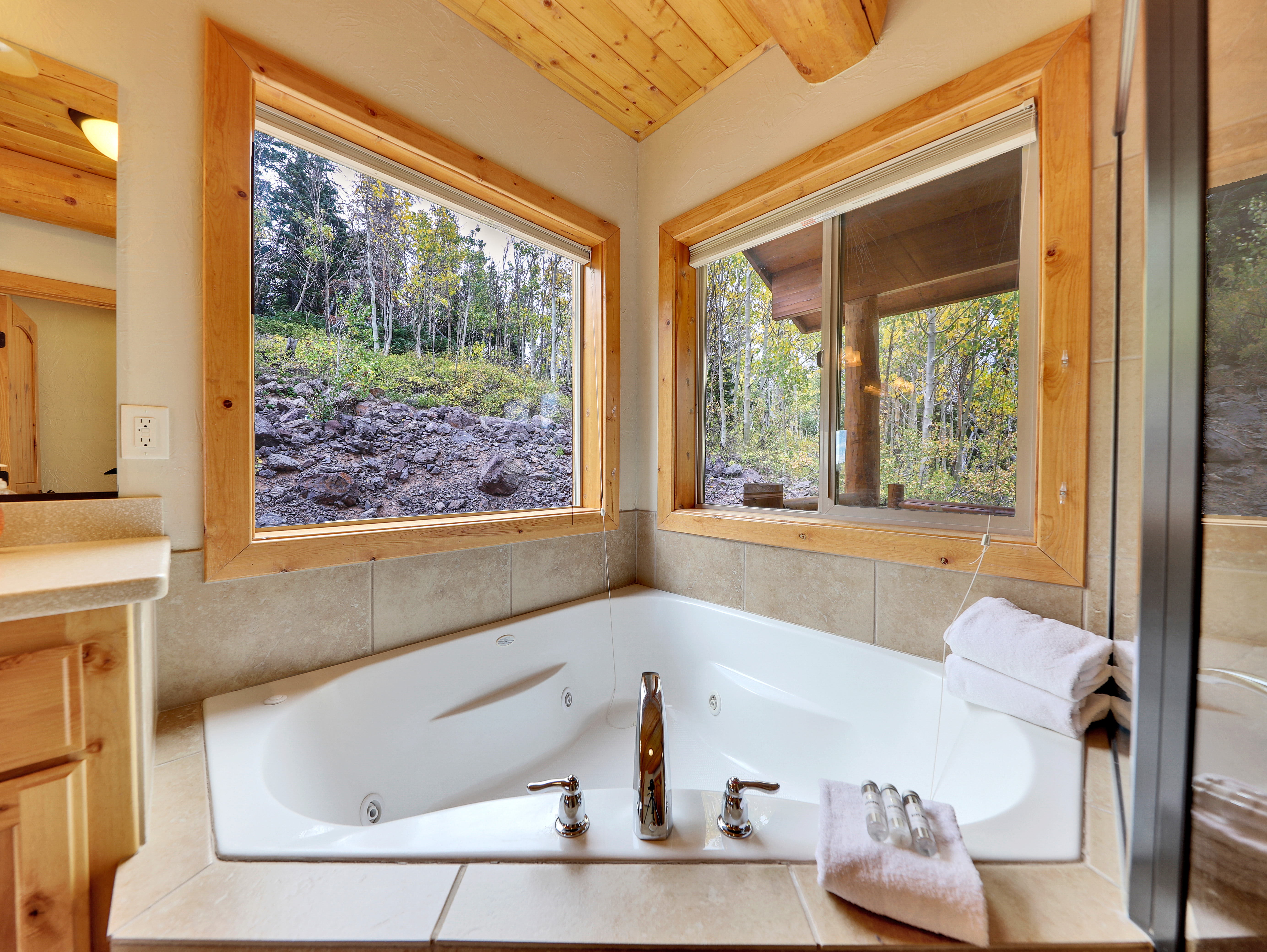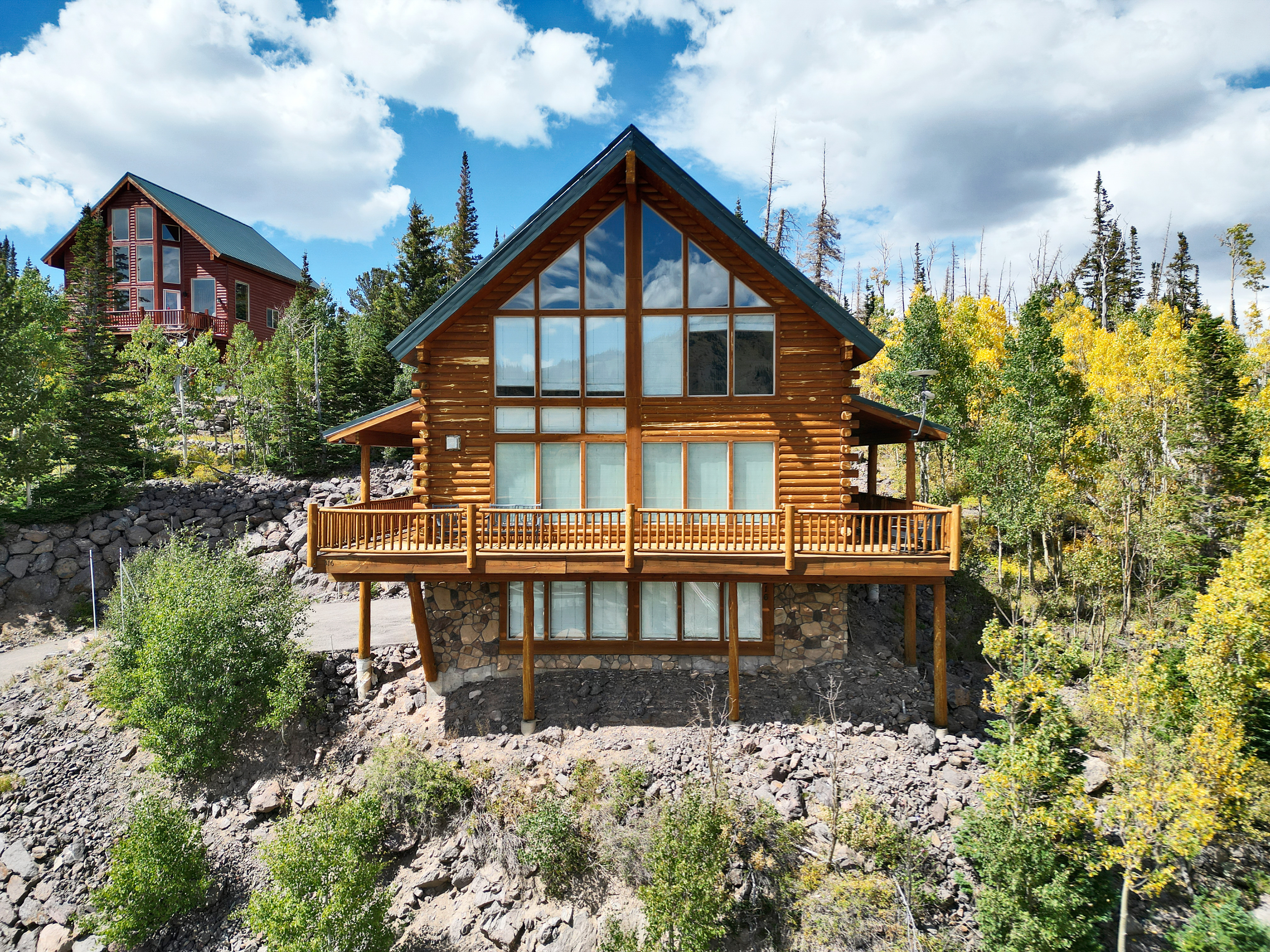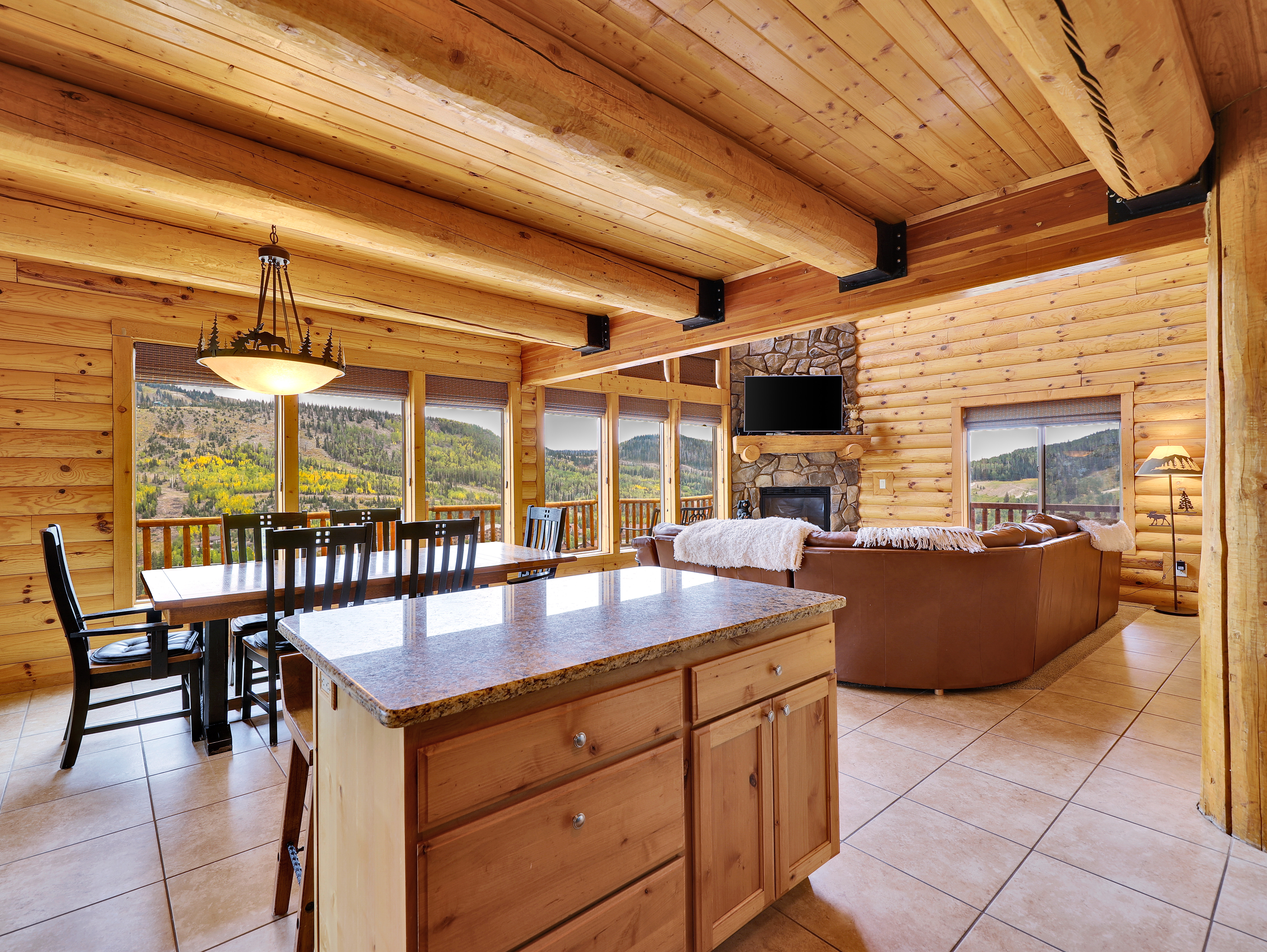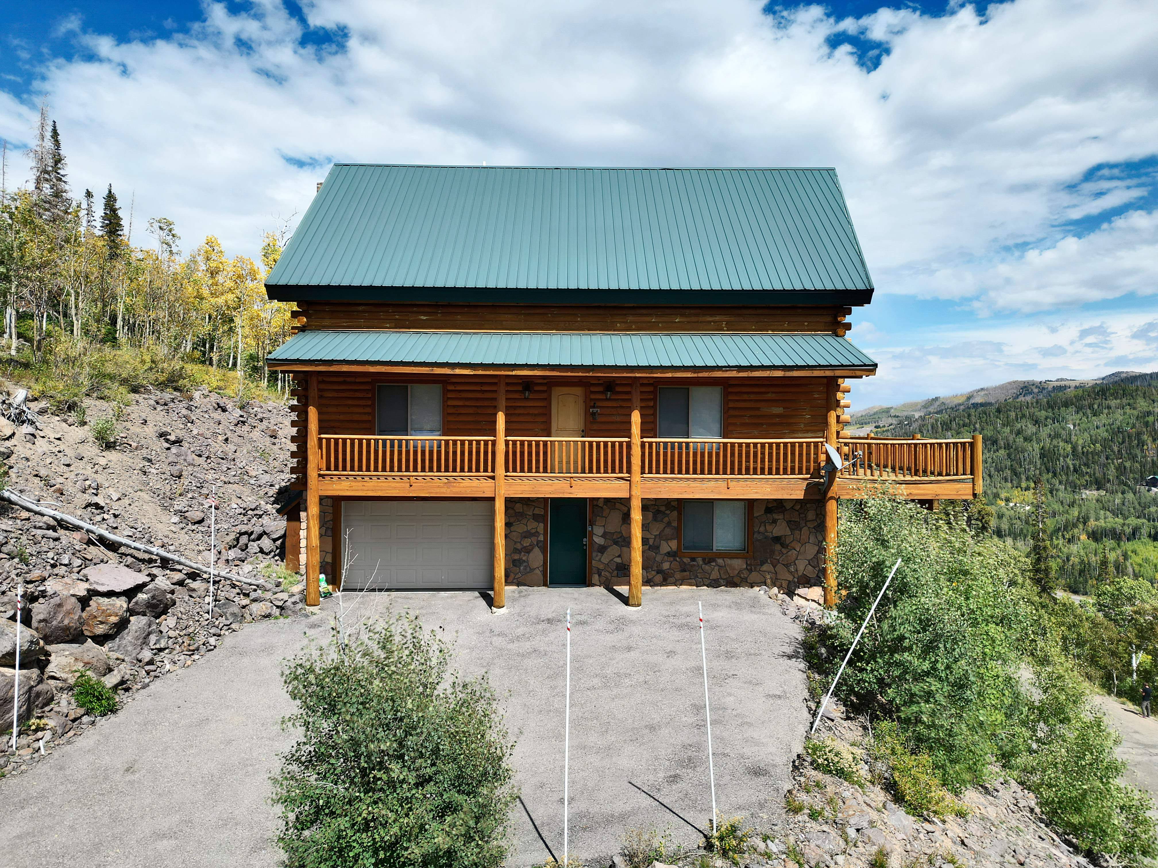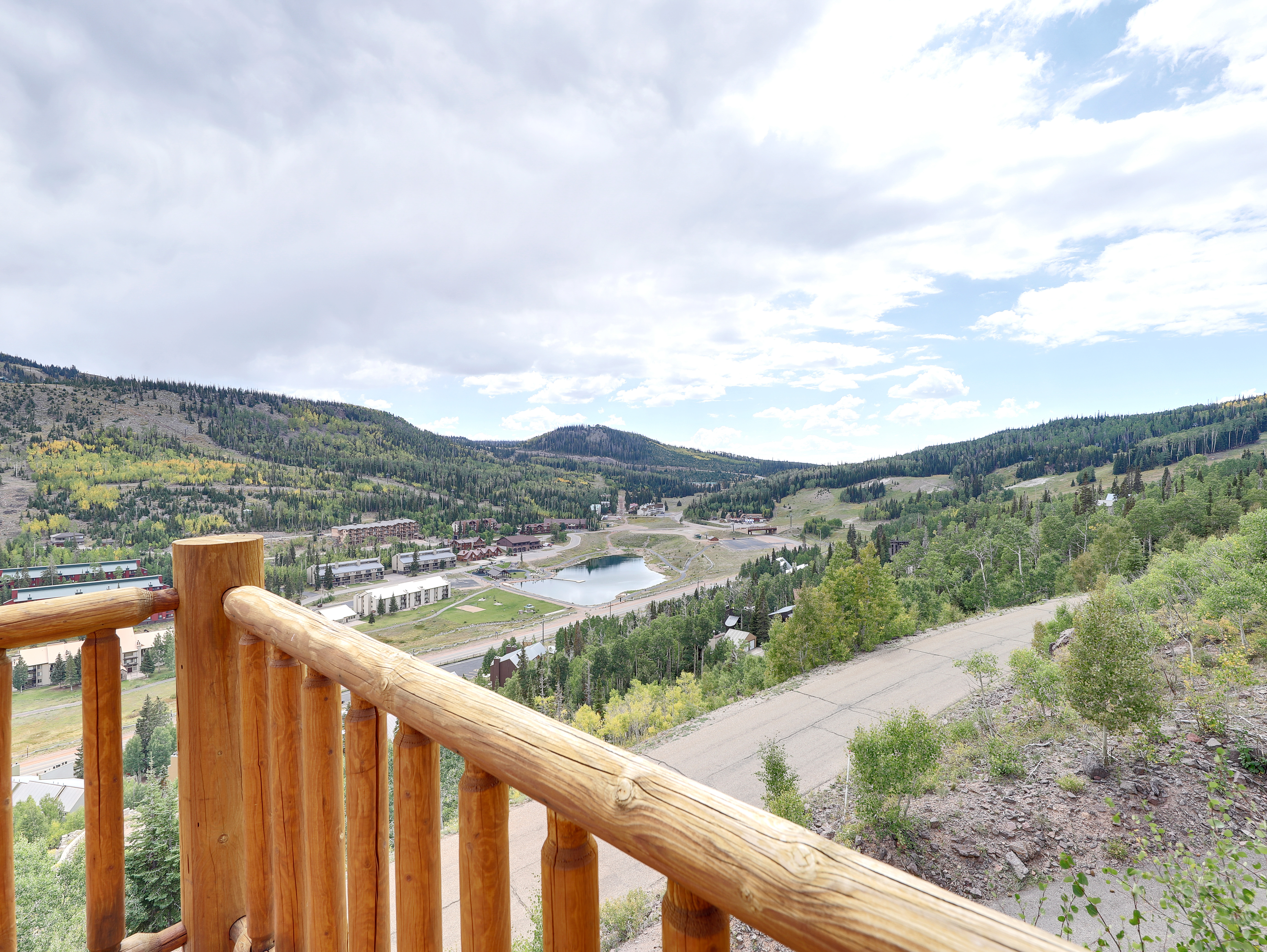 ¾ wraparound balcony with mountain views