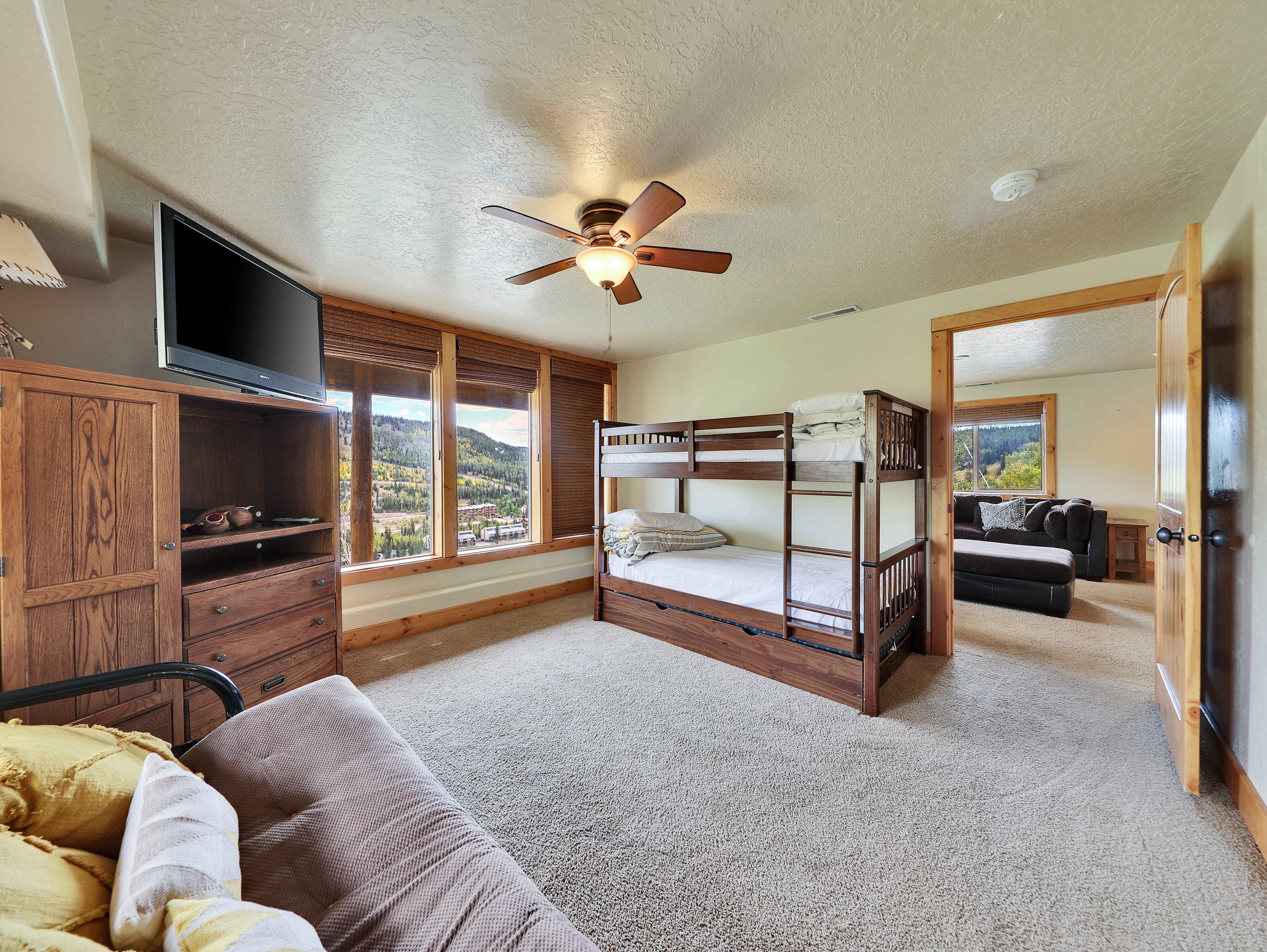 Bedroom with 3 Twin beds (bunk + trundle)