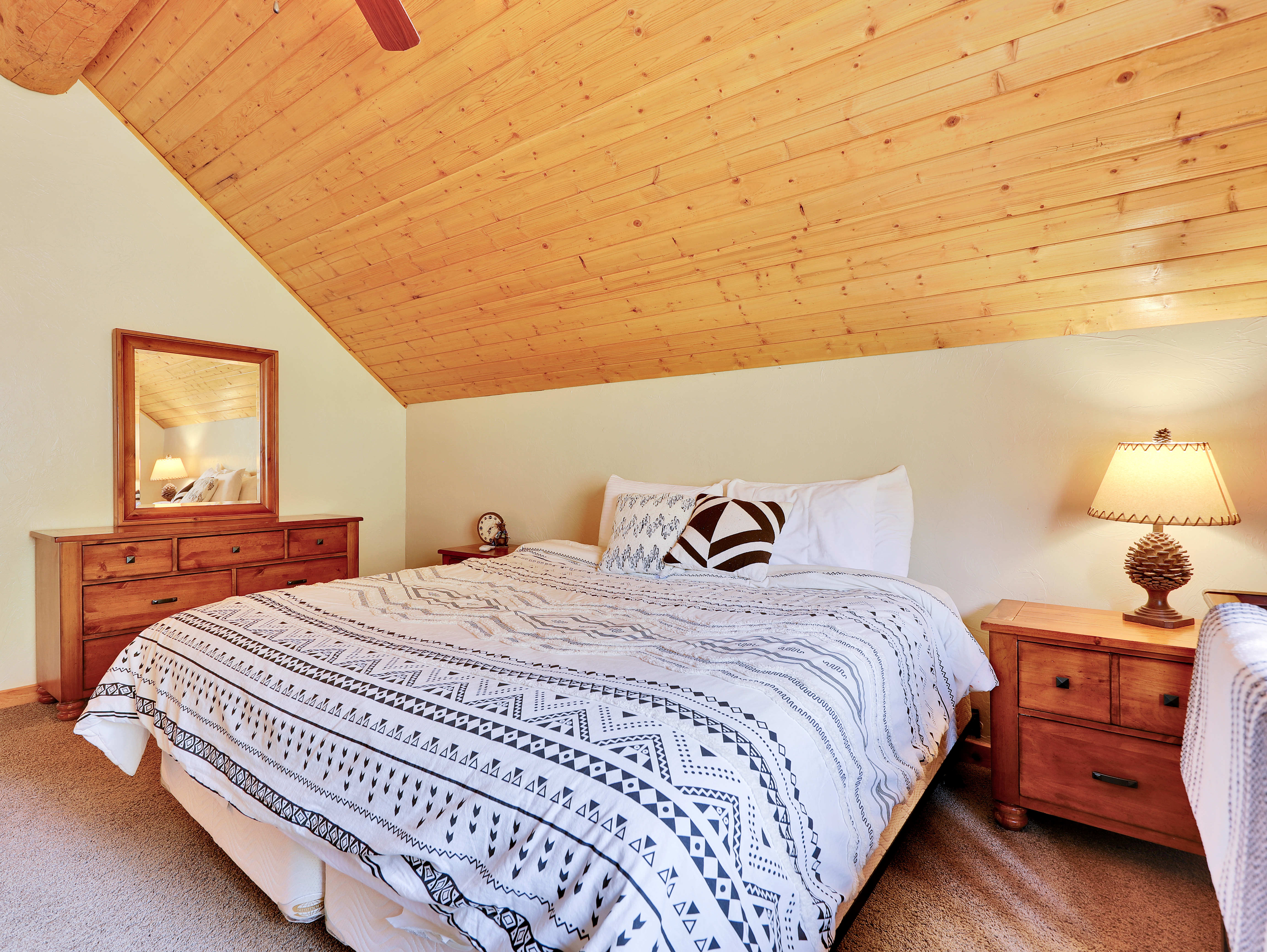 This is a multi-level cabin with stairs between floors.