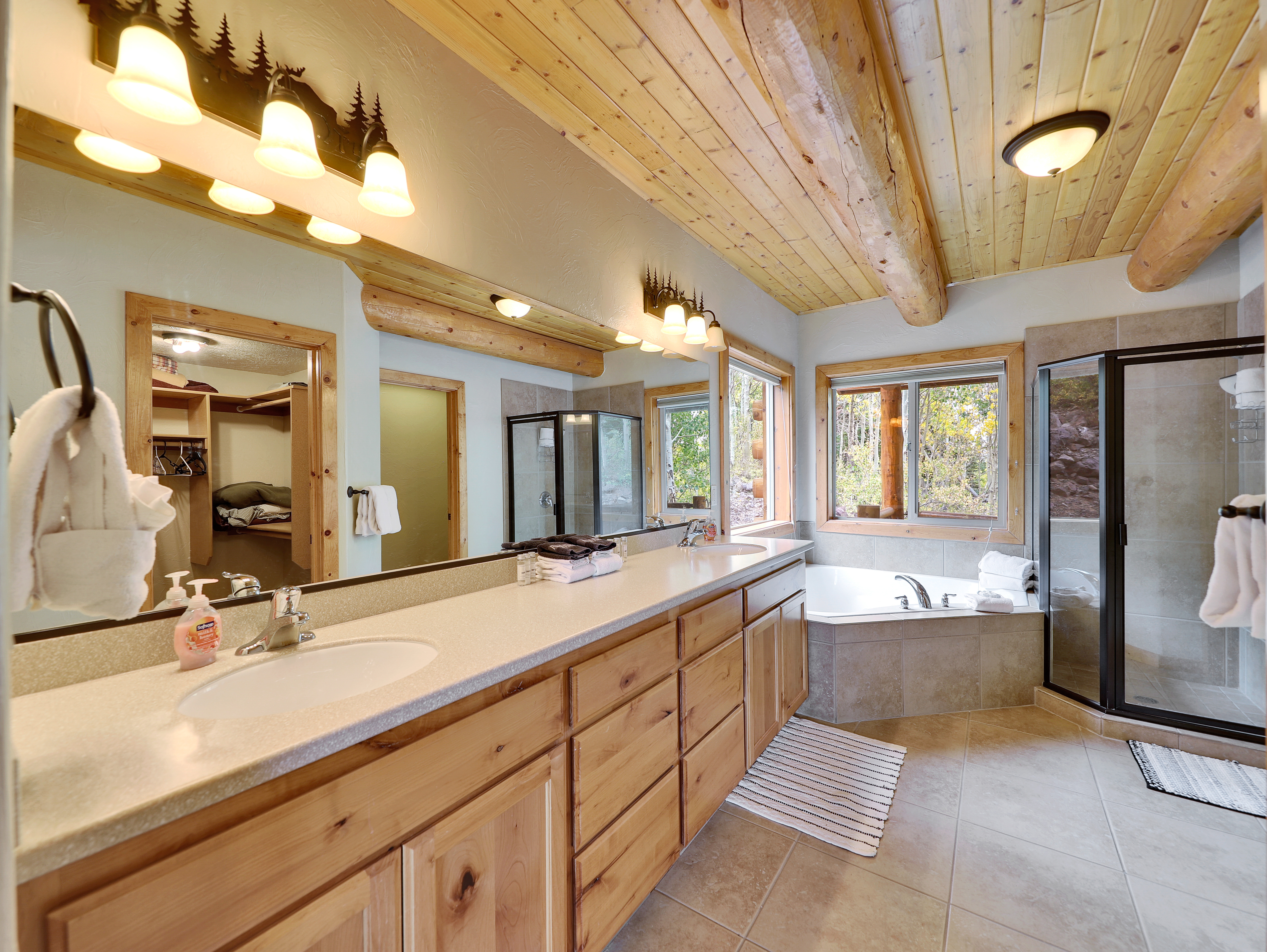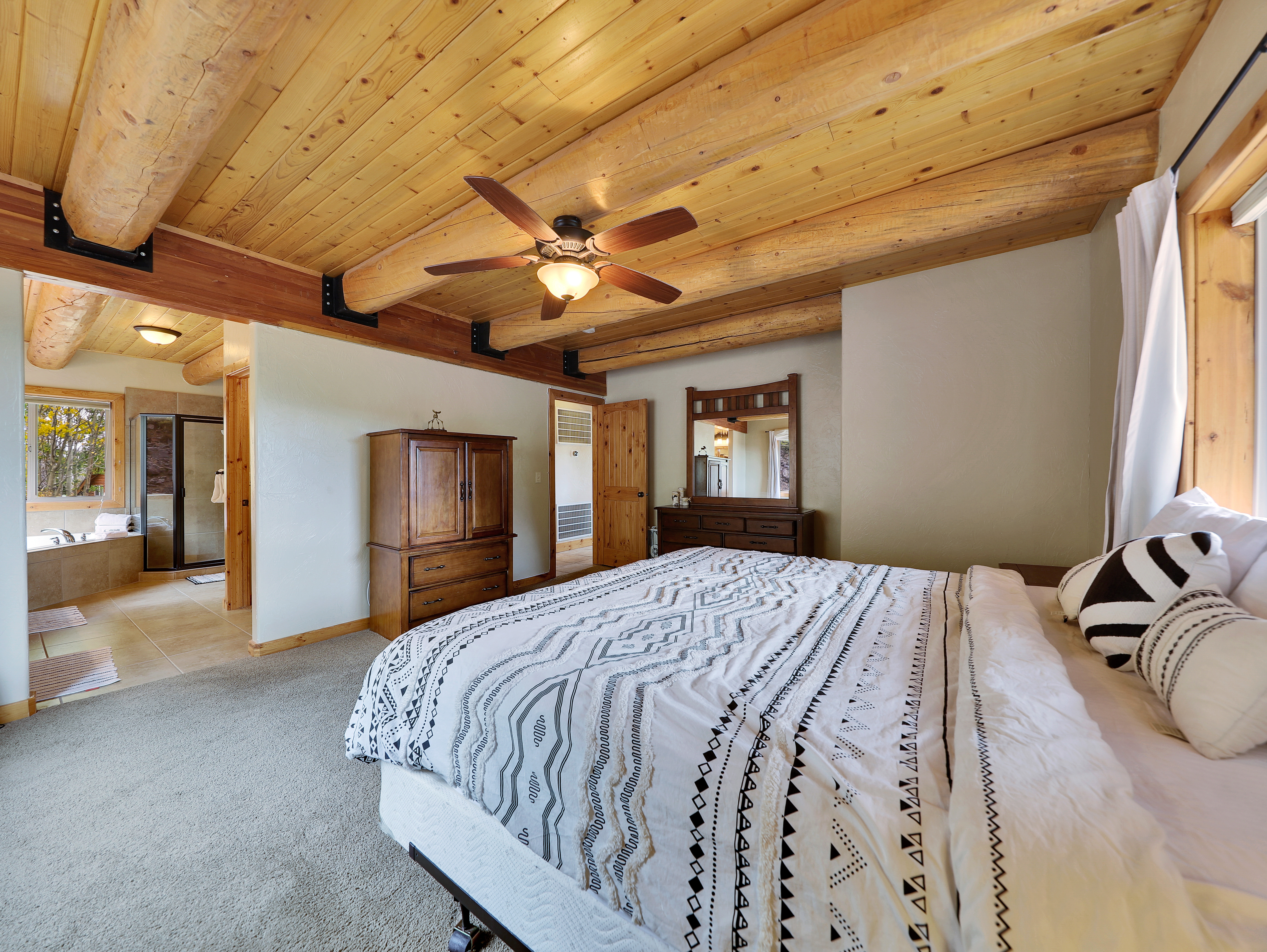 Primary Suite with King bed and ensuite bath featuring a jetted tub, walk-in shower, and dual sinks