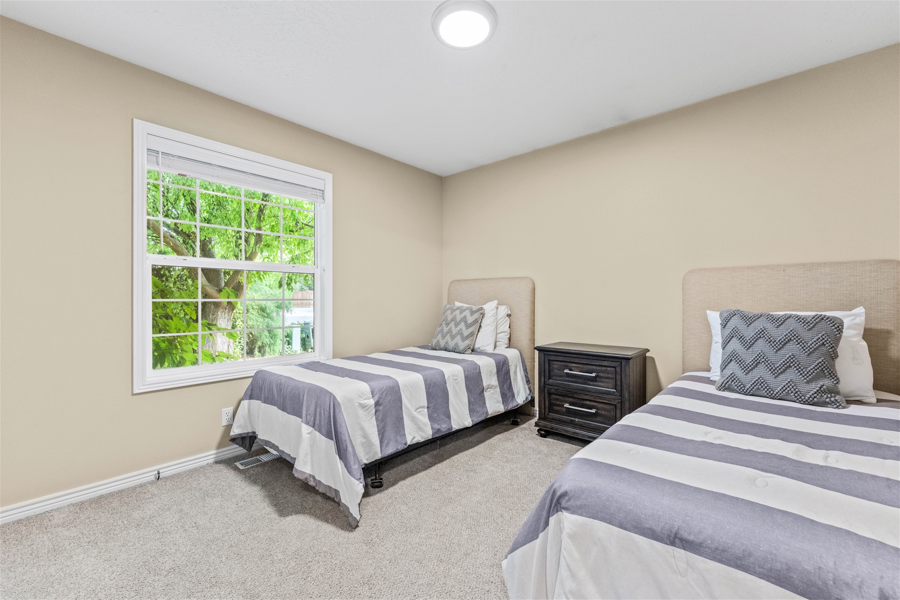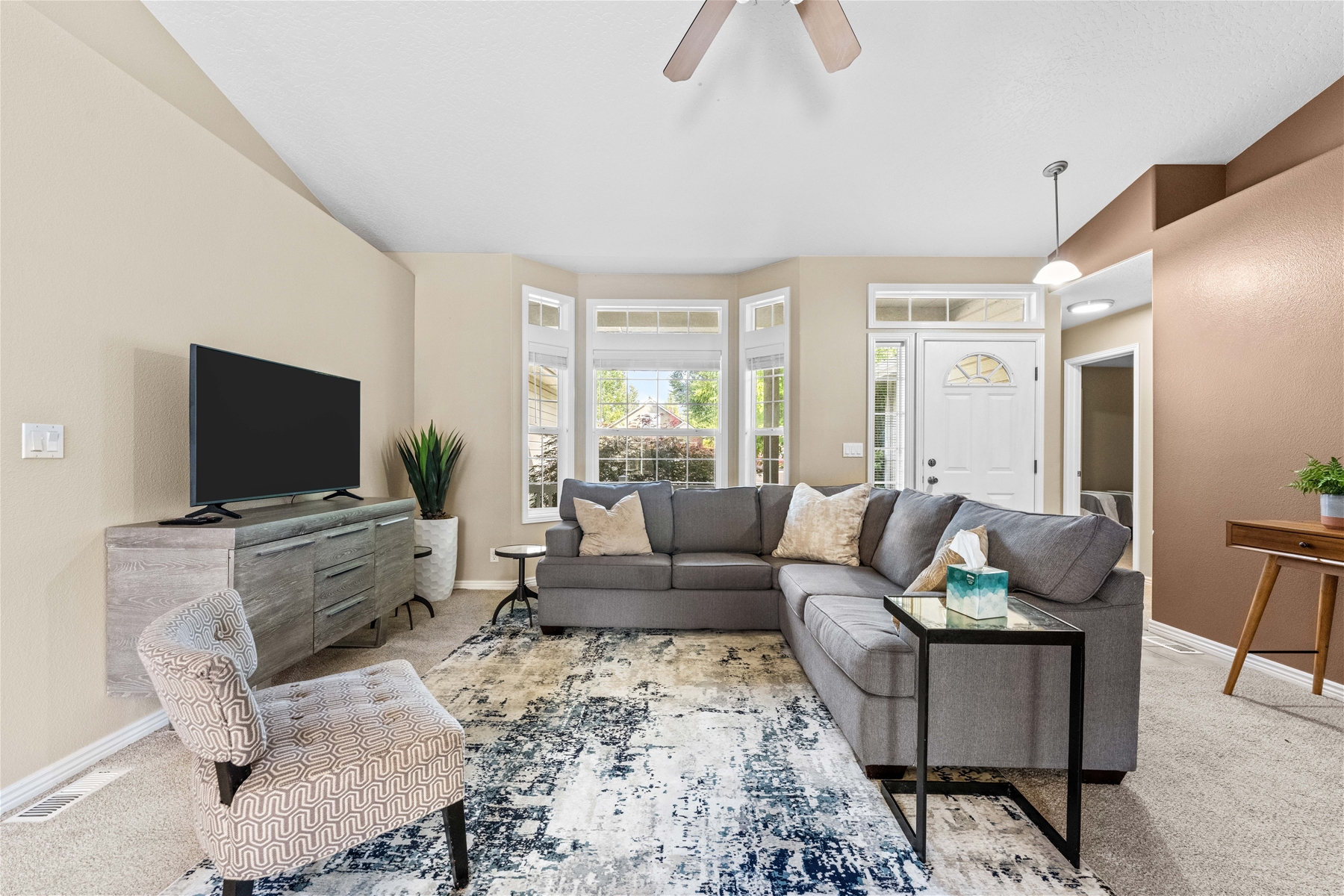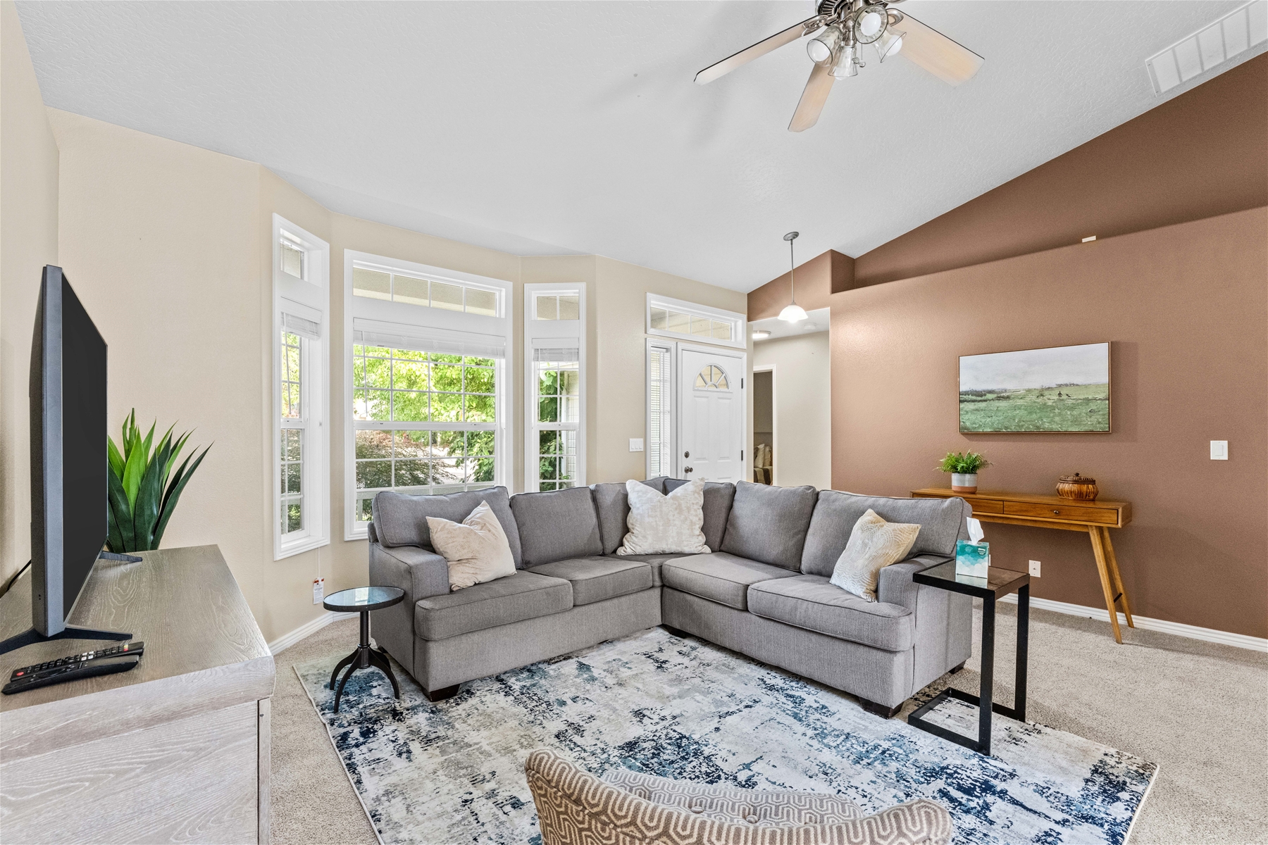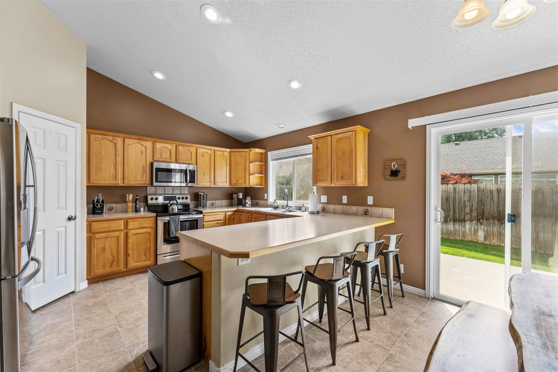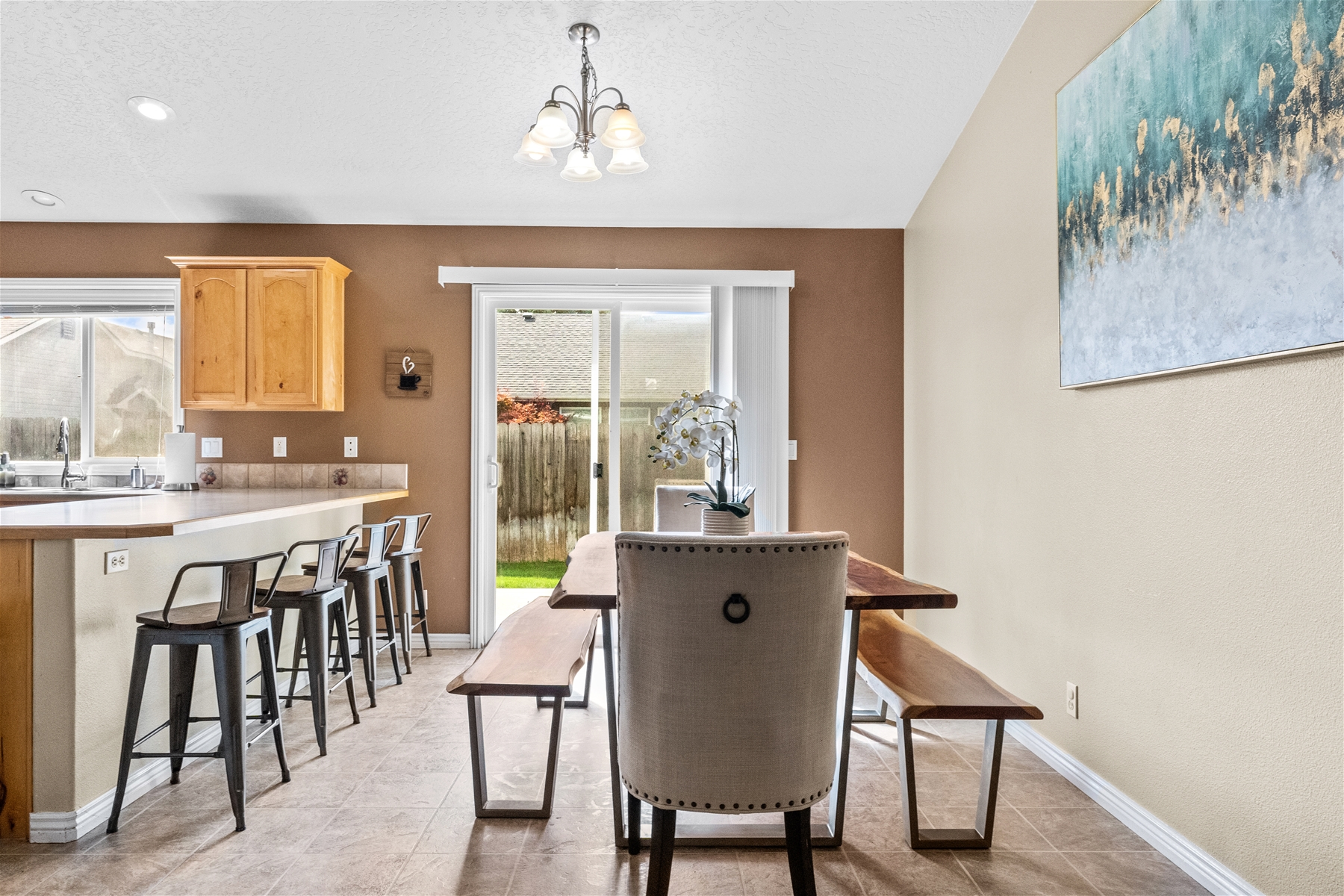 This charming 4-bedroom, 2-bathroom home is an ideal location for your next family getaway. Nestled in a peaceful neighborhood, this property offers comfort, convenience, and a fantastic location right at the end of a cul de sac. Step inside to discover a thoughtfully designed interior that boasts both functionality and style. The spacious living room welcomes you with abundant natural light, complementing the warm and inviting atmosphere. The kitchen is equipped with modern appliances, ample cabinet space, and a breakfast bar that connects seamlessly with the dining area. The master bedroom features an en-suite bathroom for added privacy, complete with dual sinks, a soaking tub, shower and walk in closet. The additional bedrooms are generously sized and share a well-appointed bathroom. The exterior of the property offers equally delightful features. Enjoy outdoor gatherings and relaxation in the fully fenced yard, perfect for barbecues, gardening, and enjoying the Idaho weather. The well-maintained landscaping adds to the curb appeal of the property. This home also offers an attached garage, which has two bays ready for your use, as well as several amenities, including a washer/dryer set, dishwasher, fireplace, and internet access, all which is ready for your enjoyment. Situated in a prime Meridian location, this home offers easy access to local parks, schools, shopping centers, and dining options. The neighborhood is known for its friendly atmosphere and proximity to the intersection of Ustick and Linder. Within 10 minutes, you have a place to get groceries, fast food, and your morning coffee. Not only are there well-known places including Walmart, WinCo, Starbucks, McDonald’s, and Olive Garden, but there are also local boutique vendors for you to explore. This residential neighborhood is next to Tully Park where you can enjoy the baseball diamond, a skatepark, work out equipment, basketball courts, picnic tables and playgrounds! In less than a mile of this home you can also easily walk to the neighborhood library and check out a book or two! Within a 15-minute drive is the Village at Meridian, where you can shop at places such as Sephora and Buckle, enjoy some food like Calle 75 Street Tacos and Chick-fil-a, do some bowling, check out a movie, or visit Julius M. Kleiner Memorial Park, which has a fun water pad for little ones. This home is less than 13 minutes from the Meridian Speedway where there are regular events happening during the summer months, for all who are interested. Tucked away in a serene neighborhood, this property offers a seamless blend of modern elegance and convenience, creating an ideal escape for your next vacation. We hope to host you soon!