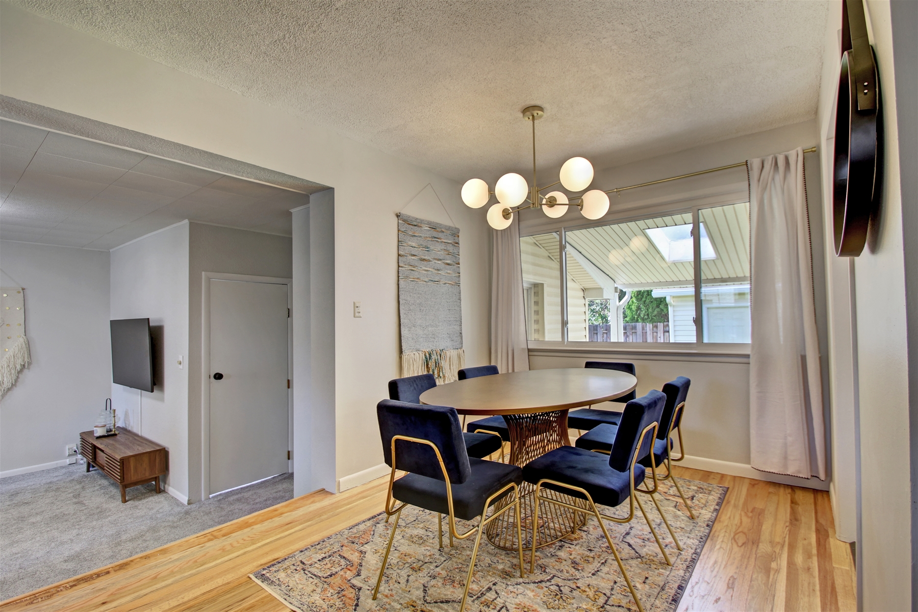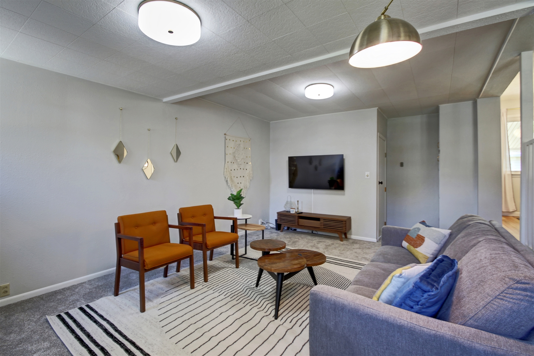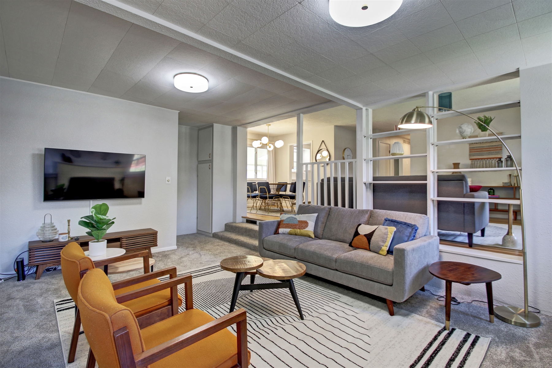 Living Spaces: Two inviting living rooms and a family room, providing plenty of space to relax. The family room, features a wall-mounted flat-screen smart TV.